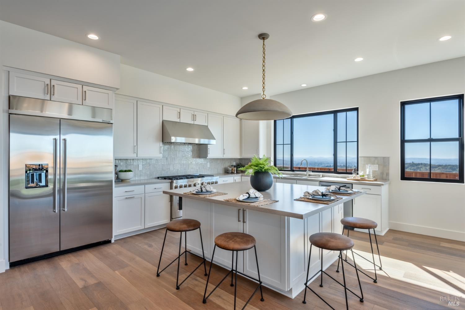 Modern luxury with panoramic views in the heart of Fountaingrove. This new construction 4BD, 5BA + Den residence offers over 4,300 SQFT of thoughtfully designed living space on more than half an acre, showcasing expansive westerly views of mountains, valleys, and shimmering city lights. A majestic oak tree welcomes you at the front, while adjacent open space enhances the home's sense of privacy and connection to nature. Inside, an expansive great room is filled with natural light and sweeping views. The open-concept layout seamlessly integrates the kitchen, dining, and family areas, perfect for relaxed gatherings or elegant entertaining. French sliding doors lead to a large, flat backyard, ideal for a pool, outdoor kitchen, garden retreat and more. The main-level primary suite offers direct outdoor access, creating a private sanctuary. Upstairs, a versatile loft and private en-suite bedroom provide flexible space for guests or multi-generational living. Set in the hills of Fountaingrove, this home offers more than exceptional design, it delivers an elevated lifestyle. With nearby access to the Fountaingrove Golf & Athletic Club, hiking trails, top-rated schools, and everyday amenities, this residence embodies a rare blend of sophistication, serenity, and convenience.Interested in this Listing?