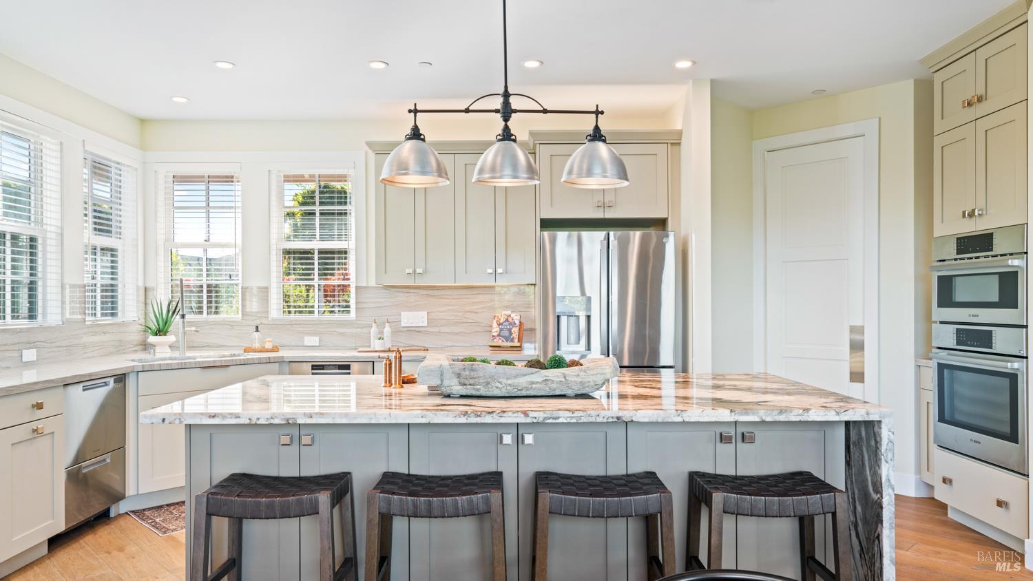 Welcome to this beautifully appointed single story residence in the highly sought-after Fountaingrove community. Set on a generous .50 acre lot, this 4 bedroom, 2.5 bathroom home combines luxury, functionality, and elegant design in a stunning Wine Country setting. A tranquil courtyard entry leads you into an airy, light-filled interior with high ceilings and hardwood flooring throughout. Many windows flood every room with natural light, creating a warm and inviting atmosphere. Ideal for both entertaining and everyday living, the home features formal living and dining rooms, as well as a spacious family room with a cozy fireplace. At the heart of the home is a chef's dream kitchen, complete with a striking granite waterfall island, and stainless steel appliances, perfect for entertaining in style. Retreat to the private primary suite where you'll find direct access to an outdoor hot tub and open-air shower - your personal spa oasis under the stars. This home also includes a 3-car garage, a beautiful mature landscaped yard with mountain views and multiple outdoor areas for relaxing or hosting guests. This Fountaingrove gem offers the perfect blend of comfort, sophistication, and Wine Country charm-all on a peaceful, half acre setting.Interested in this Listing?