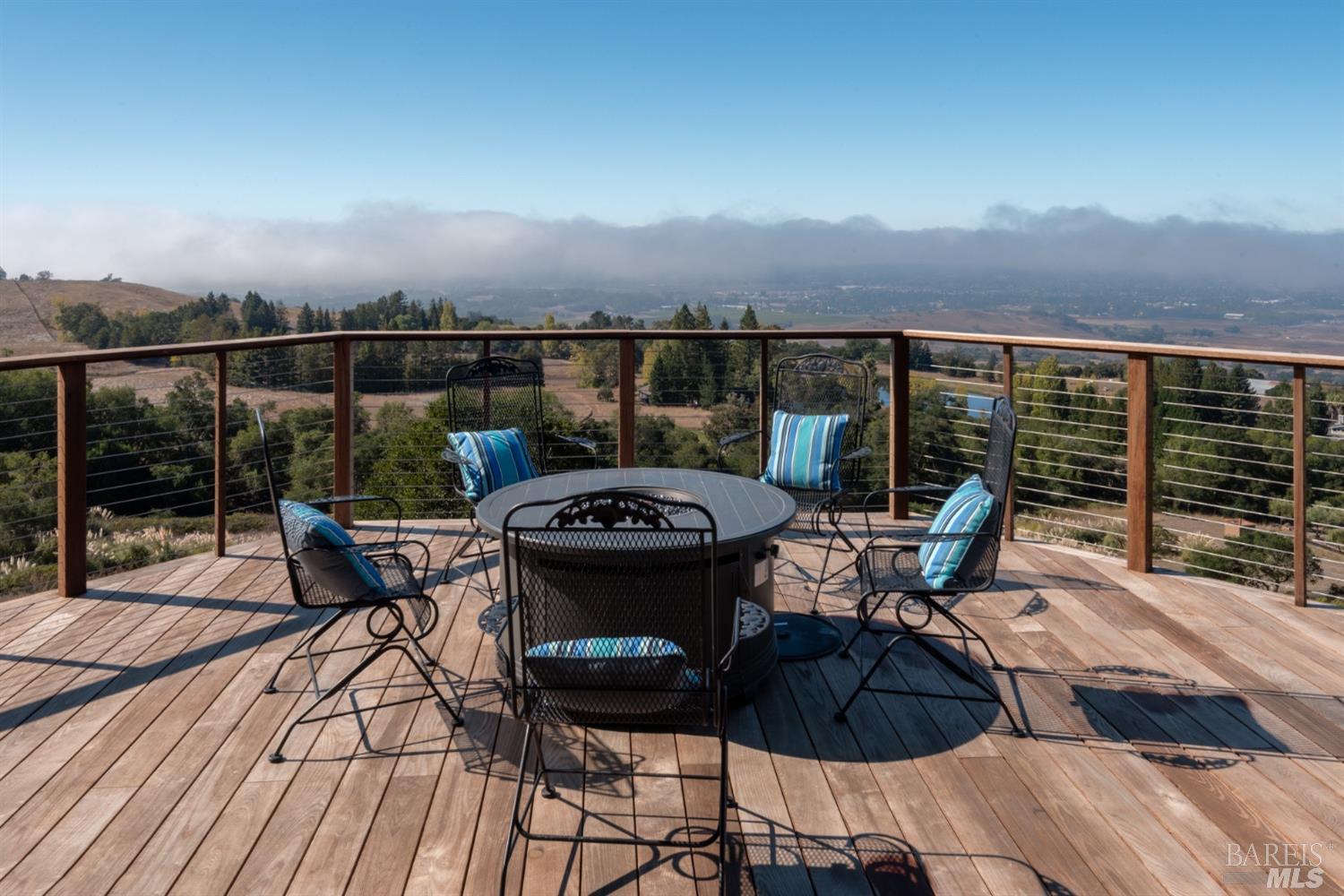 Perched on a quiet ridge line with panoramic views stretching from Petaluma to Santa Rosa, this gated hilltop estate offers 4.5 acres of privacy, scale, and possibility. The main, single-level, residence spans nearly 5,000 sq ft with a timeless floor plan, generous proportions, and the opportunity to create a truly remarkable modern retreat. Designed for both entertaining and everyday living, the home features formal living and dining rooms, a central kitchen with custom cabinetry and stone countertops, and a relaxed family room that opens to the deck and pool. The spacious primary suite anchors its own wing with private deck access, while two additional bedrooms offer separation and comfort for family or guests. Outdoor amenities include multiple patios, a sparkling pool overlooking the valley, and a thoughtfully designed garden area with raised beds and a charming potting shed. A detached 1,200 sq ft guest house features a full kitchen, bedroom, bath, and equally stunning views, ideal for guests or extended family. Quiet, private, and filled with opportunity, this is a rare chance to reimagine a legacy property in one of Sonoma County's most inspiring view locations.Interested in this Listing?