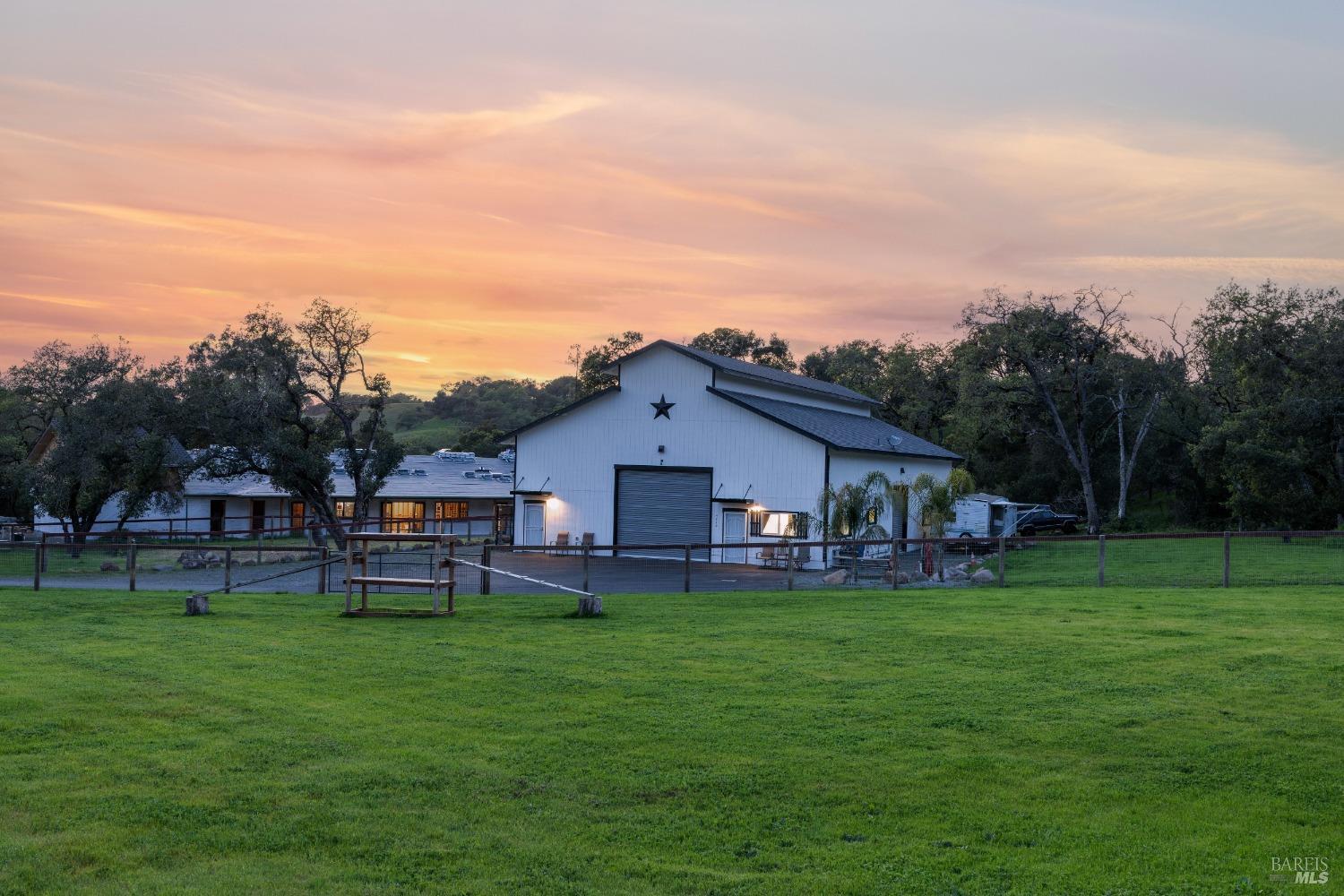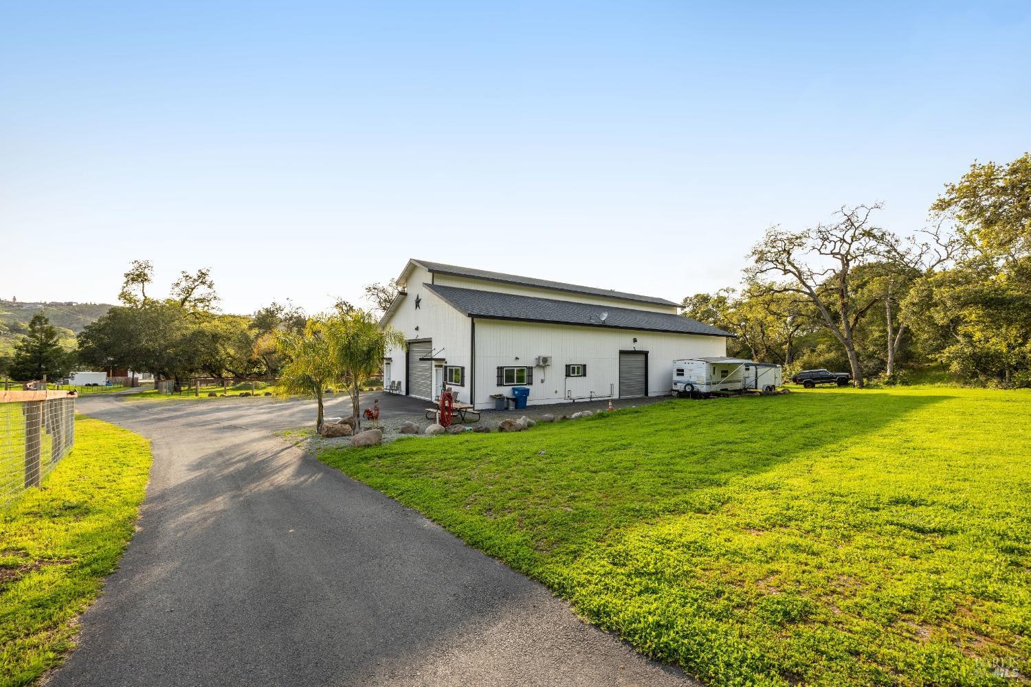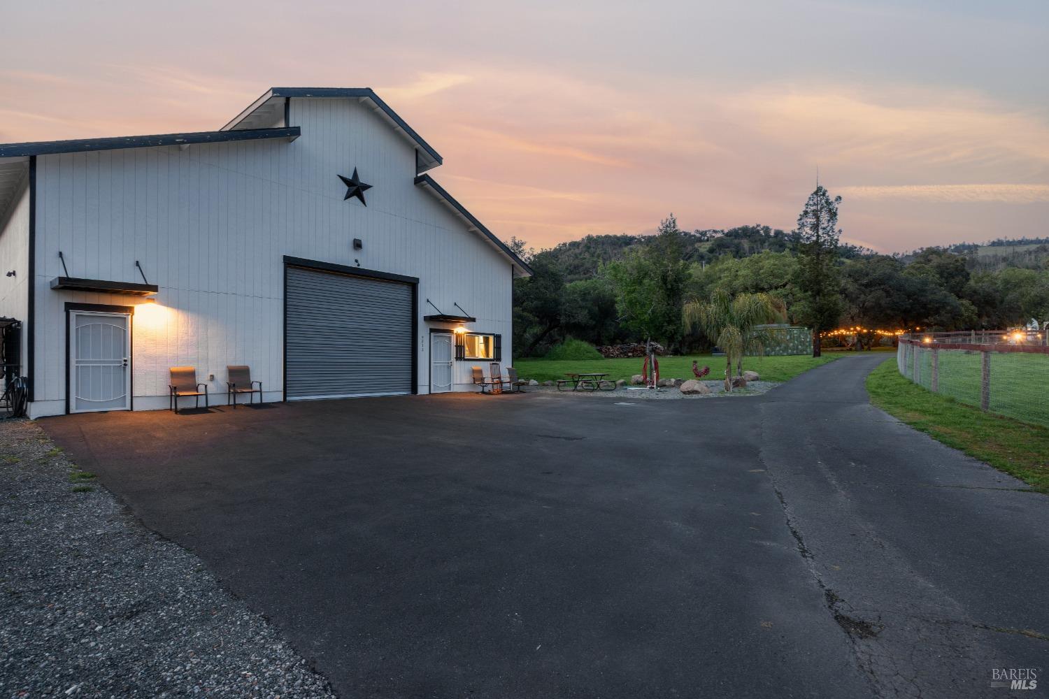 Stunning, 5.05 acre with HUGE 3,910 SQ.FT SHOP on property within an exclusive gated community surrounded by larger homes providing a unique canvas to build your future dream home, farming or potential for future horse/equestrian property. Enjoy the tranquil sounds from the seasonal creek and lush landscaping.The impressive Ag/Barn is 3,910 Sq. ft. 46' x 85' structure featuring three convenient roll-up garage doors and a grand RV-sized electric roll-up door, ensuring effortless space for vehicles & storage. Inside, explore expansive flex space on both levels, adaptable to your needs, and a huge attic, measuring approx. 8' x 85', perfect for all your storage needs. Several fenced areas are thoughtfully prepped for future growth. An orchard paradise awaits with an array of fruit trees with purple figs, plums, pears, citrus fruits, and edible grapevine varieties. Raised garden beds invite you to cultivate fresh vegetables and live an organic lifestyle. Happy chickens occupy an adorable chicken house. Stroll beneath the shade of a magnificent oak tree, where where a swing awaits to capture joyful moments, amidst garden lighting that transforms outdoor spaces into serene evening retreats. Scenic, rare property with an opportunity to create your dream home/lifestyle.Interested in this Listing?