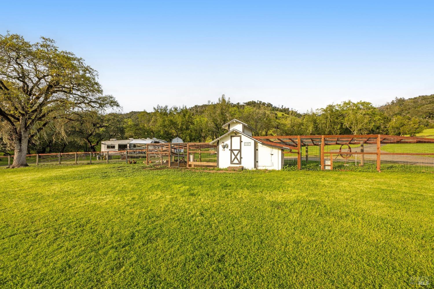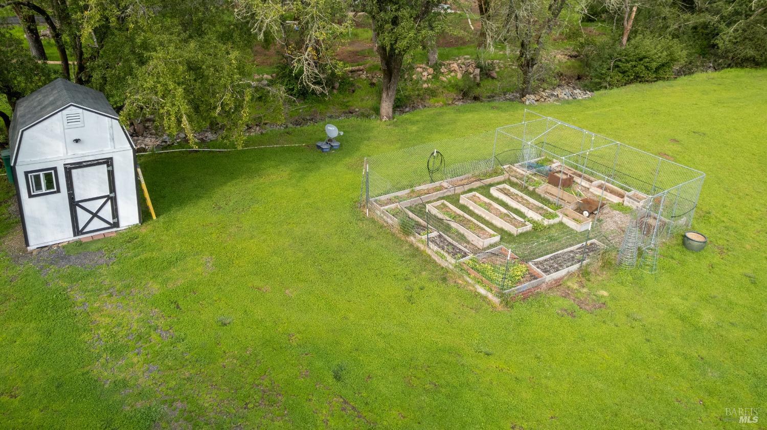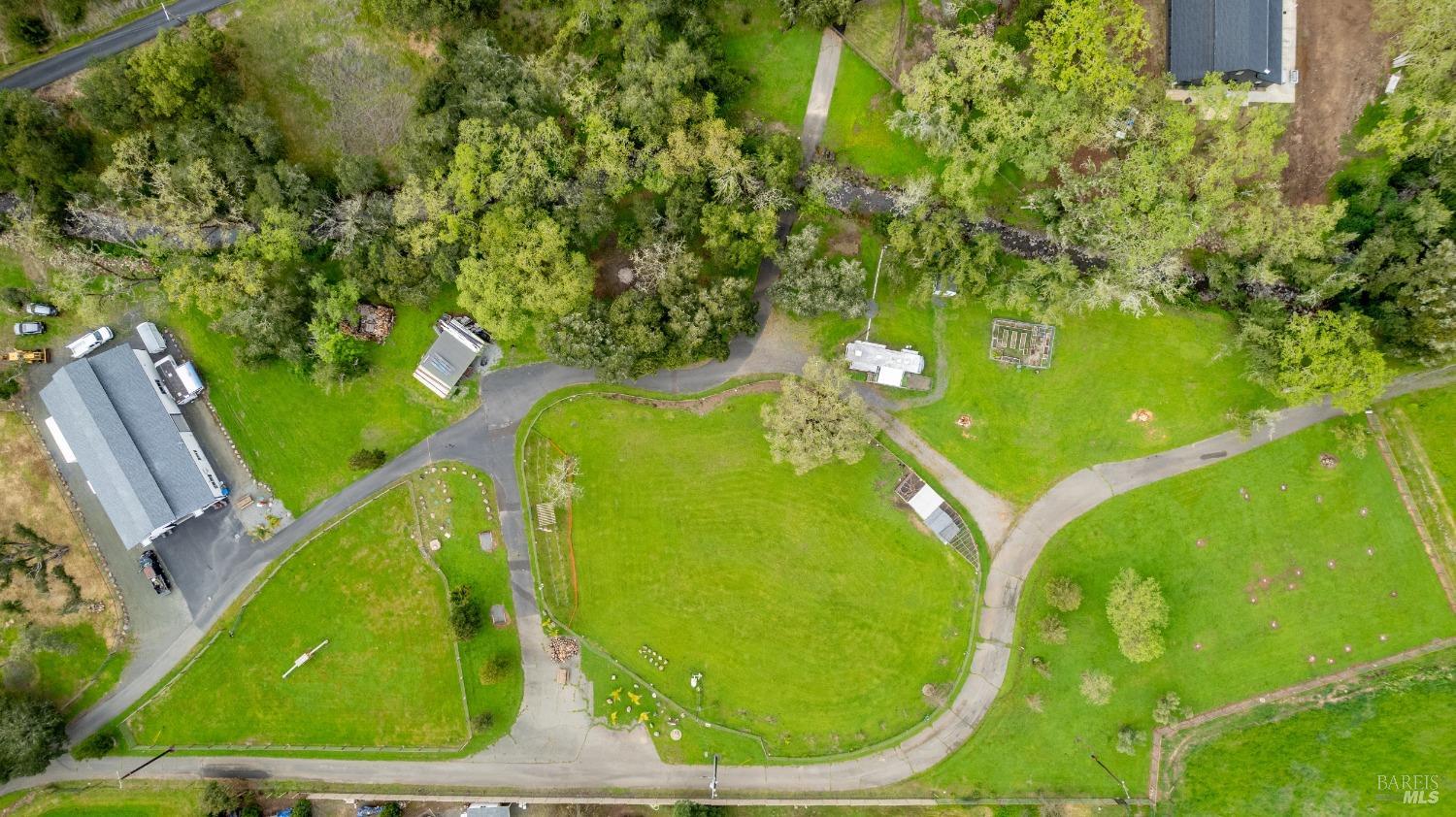 Stunning, 5.05 acre with HUGE 3,910 SQ.FT SHOP on property within an exclusive gated community surrounded by larger homes providing a unique canvas to build your future dream home, farming or potential for future horse/equestrian property. Enjoy the tranquil sounds from the seasonal creek and lush landscaping.The impressive Ag/Barn is 3,910 Sq. ft. 46' x 85' structure featuring three convenient roll-up garage doors and a grand RV-sized electric roll-up door, ensuring effortless space for vehicles & storage. Inside, explore expansive flex space on both levels, adaptable to your needs, and a huge attic, measuring approx. 8' x 85', perfect for all your storage needs. Several fenced areas are thoughtfully prepped for future growth. An orchard paradise awaits with an array of fruit trees with purple figs, plums, pears, citrus fruits, and edible grapevine varieties. Raised garden beds invite you to cultivate fresh vegetables and live an organic lifestyle. Happy chickens occupy an adorable chicken house. Stroll beneath the shade of a magnificent oak tree, where where a swing awaits to capture joyful moments, amidst garden lighting that transforms outdoor spaces into serene evening retreats. Scenic, rare property with an opportunity to create your dream home/lifestyle.Interested in this Listing?