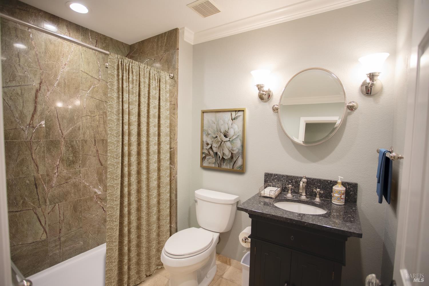 This Christopherson home is where every space tells a story. Sparkling marble floors beneath an Italian chandelier upon entry. Custom Crown Molding throughout the home. In the heart of the home, Crema Bordeaux granite countertops, Viking gas range, and double ovens. Refrigerator included. Under-cabinet lighting, recessed lighting, and hard wood floors in kitchen and downstairs bedroom. The walk-in pantry and extra storage under the stairwell keep life organized while a custom cabinet anchors the family room with Plantation shutters. Living room with upgraded fireplace glowing beside a formal dining room chandelier. Custom bamboo blinds in upstairs bedrooms. The primary suite feels boutique-perfect: gas fireplace, Crystal ceiling fan, and chandeliers in the bathroom and closet. Primary bathroom features an Italian porcelain tile floor, jetted tub, and a mural once featured in a Sonoma business magazine (2000). Downstairs, shower with rainforest granite, and bedroom which could have a private entrance for guests. Fully landscaped front and back yard with drip system. Rock waterfall with koi pond, Hot Springs spa, and flagstone patio for entertaining. A portable generator stands ready. Solar is owned. 50 year roof. Close to Annandale for hiking. Luxury living at best.Interested in this Listing?