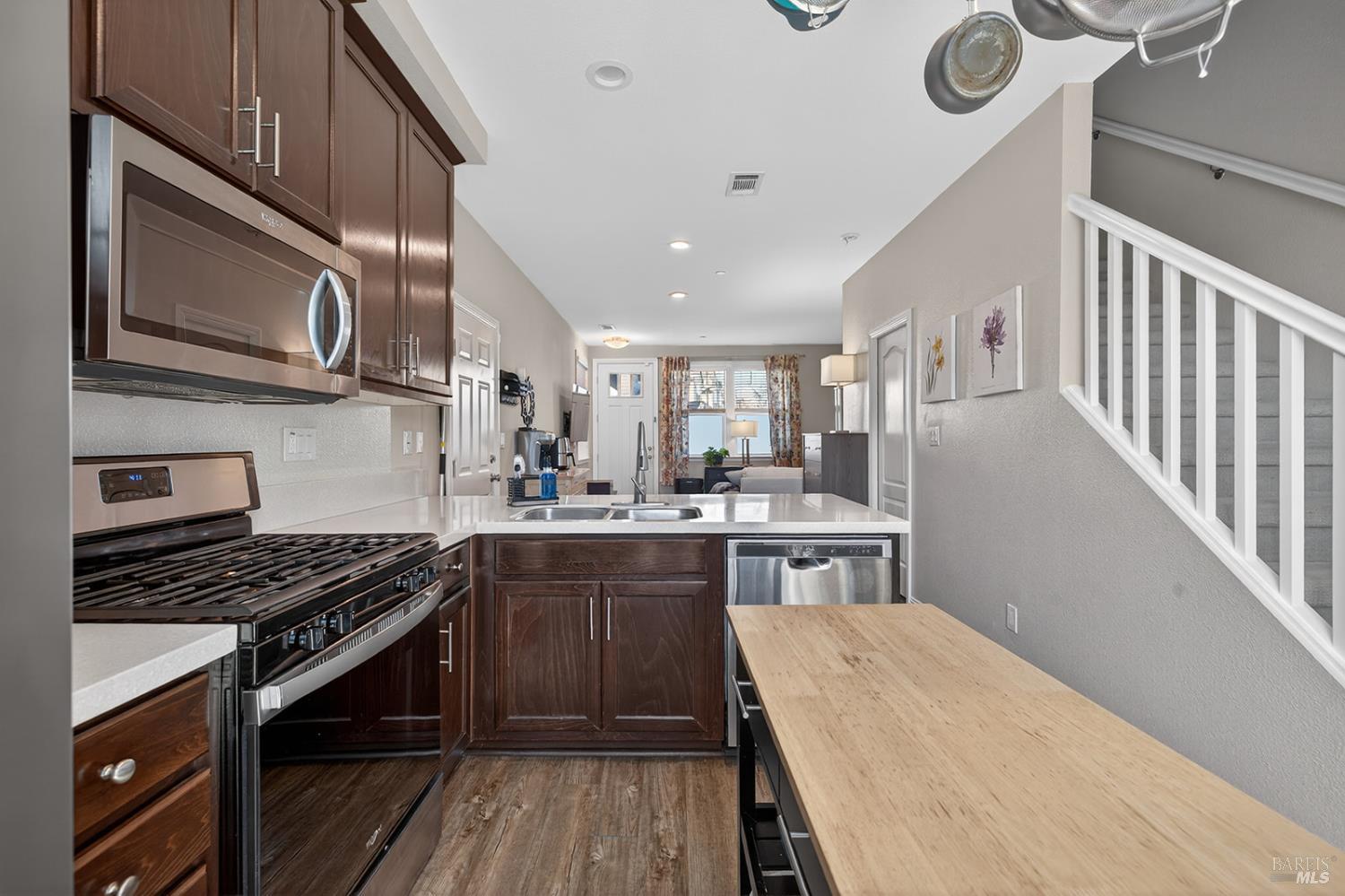 Step inside to this and thoughtfully designed two-story floor plan. Enjoy a seamless blend of living and dining spaces, complemented by three bedrooms and two and a half bathrooms. Timeless accents, recessed lighting, and an abundance of natural light create an ambiance of comfort and style. The kitchen is a dream for any home chef, featuring clean design with dark wood cabinetry, sleek white countertops, a convenient breakfast bar, and a timeless layout that maximizes both function and beauty. Sliding doors lead to a private patio, ideal for intimate outdoor dining, entertaining, or simply relaxing in your own peaceful retreat. Additional highlights include a spacious one-car garage with storage, offering the perfect combination of convenience and practicality. This home is conveniently located, close to everything Sonoma County including nearby shopping, parks, schools, and more. Whether you're lounging on your private backyard patio or enjoying a serene cup of your favorite beverage at the breakfast bar, there's so much to love about this hidden treasure. Don't miss the opportunity to make this home yours!Interested in this Listing?