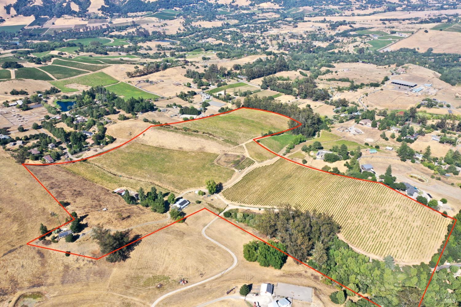 Explore an incredible opportunity with this 56+/- acre vineyard and winery estate situated within the prestigious Sonoma Mountain, Sonoma Valley, and Bennett Valley wine appellations. Now available as a prime redevelopment project, this expansive property offers a rare foundation for a world-class wine program in a coveted Santa Rosa location. The estate features 32+/- acres of historical vineyard land previously planted to Chardonnay and Pinot Noir that is now poised for a full modern replant, allowing a new owner to select clones and rootstocks tailored to the site's unique microclimates. Significant infrastructure provides a massive head start for the serious vintner, including an established 6,000-case winery permit, a large barn for operations, and a dedicated rock wine storage building. While the 2,250 square foot main home and 1,480 square foot guest house require extensive renovation and TLC, the site's elevation and natural beauty offer a premier building envelope for a custom luxury compound. Located just minutes from the amenities of Santa Rosa, Rohnert Park, and Glen Ellen, this estate offers the perfect balance of absolute seclusion and regional accessibility. This is a rare blank slate chance to acquire significant acreage and established permits at a value-driven price point in one of California's most renowned growing regions. Sold as-is.Interested in this Listing?