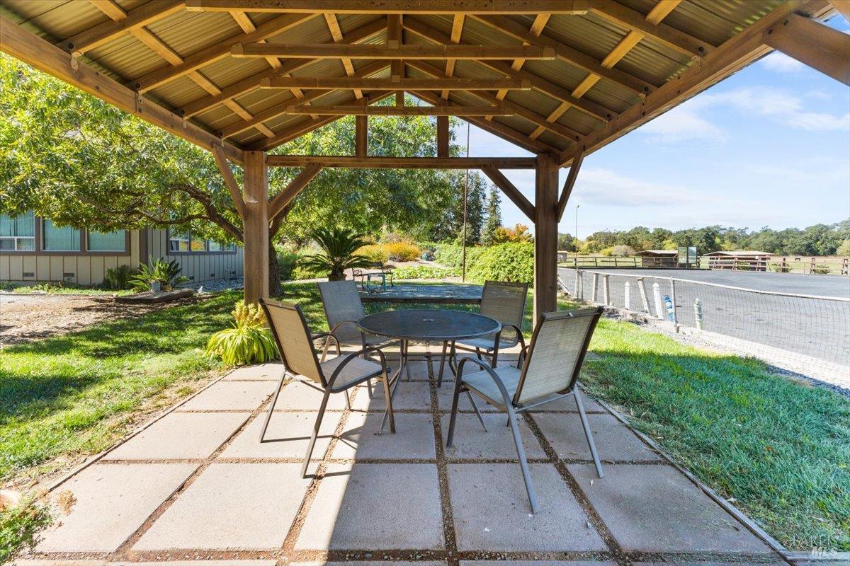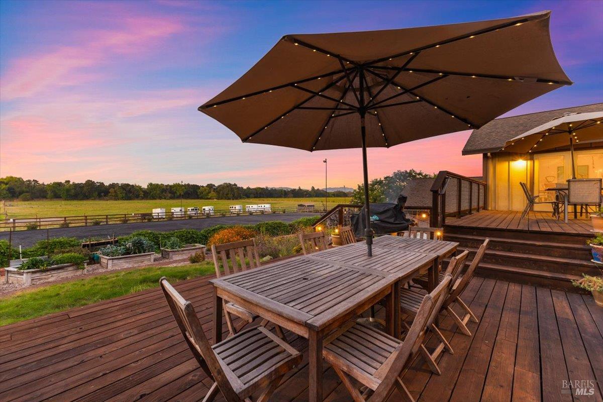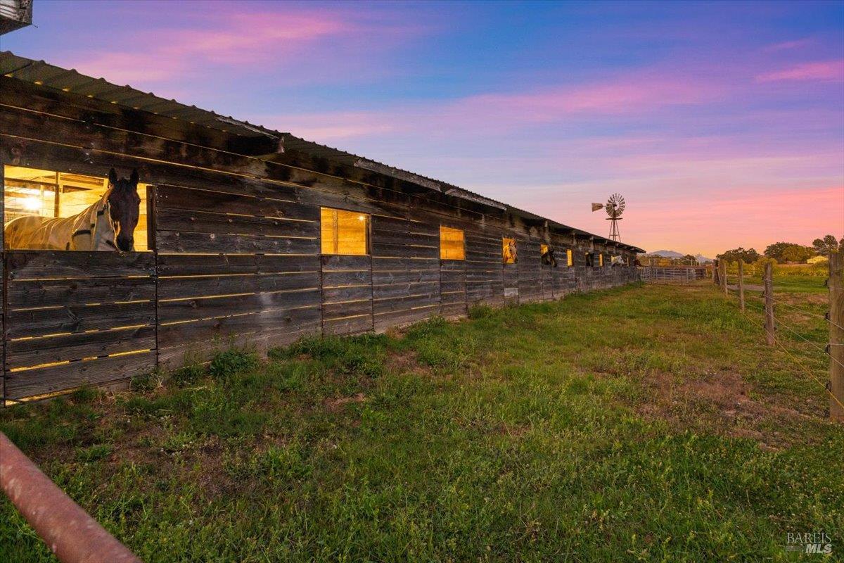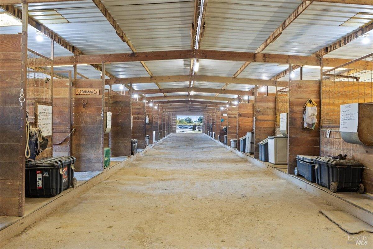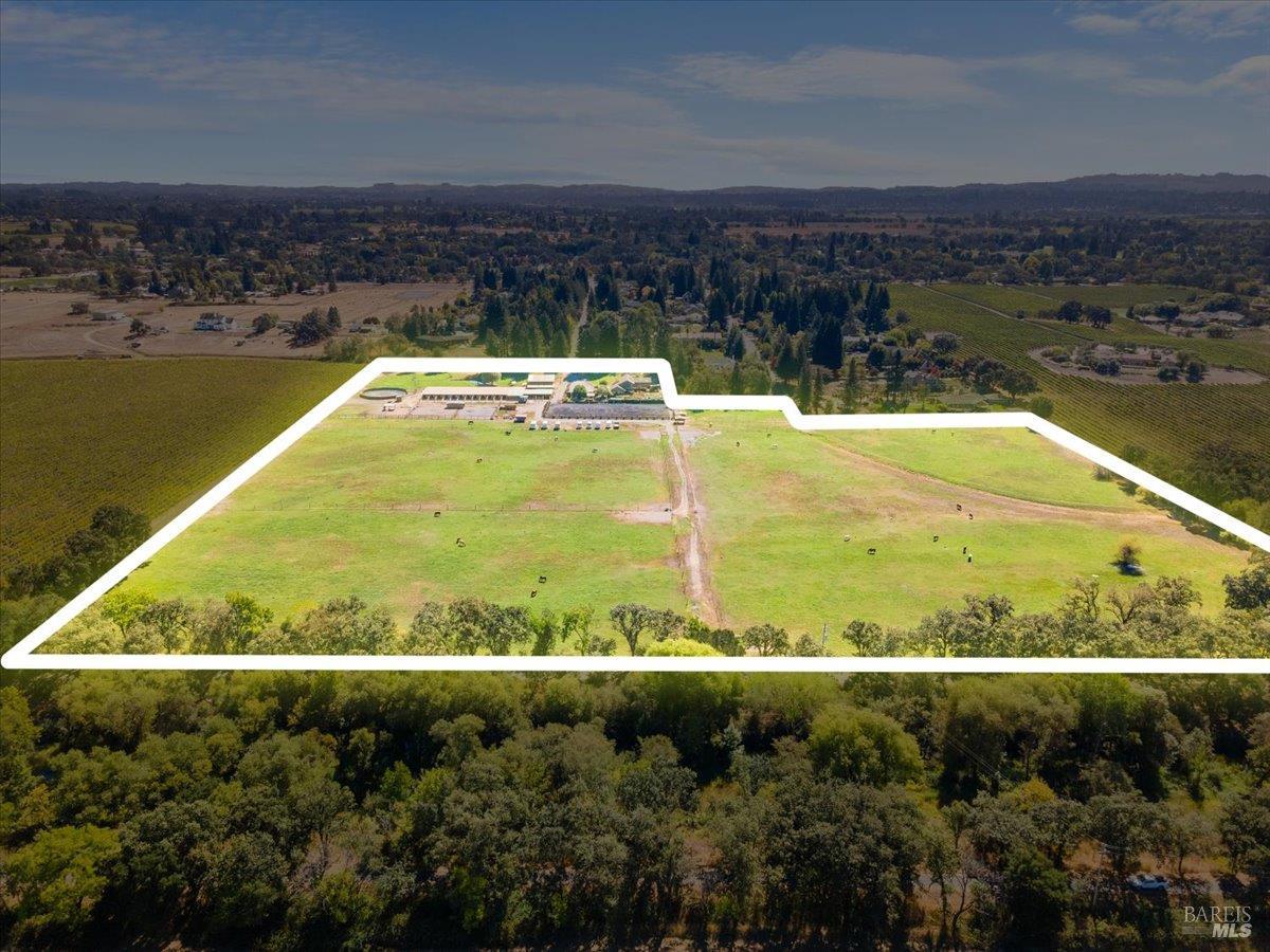 Hidden at the end of a private road in West Santa Rosa wine country lies a beautiful 23.89 acre (2 parcels) equestrian paradise with direct access to Santa Rosa Creek Trail. Permitted income producing equestrian boarding facility includes a 100'x190' lighted arena & 72' round pen, both with all weather shredded rubber/sand footing, redwood barn with 24 12'x18' rubber-matted stalls, 12 with attached 12'x24' runs, tack & grain storage, covered tack up area and vet/farrier paddock. Second barn for hay/shavings/equipment, 9 paddocks with shelters, 5 irrigated pastures, turnouts, hot water wash rack, automatic waterers & chicken area. Access to reclaimed water to irrigate pastures reduces hay costs & allows lush year-round grazing. The private sunny home features tall beamed ceilings, expansive views of mountains, pastures, vineyards, sunrises & sunsets. Updated roof, siding, windows, kitchen, decks and primary suite along with generator hook up, well and septic upgrades. A lower-level studio with kitchenette, separate entry, and patio offers flexibility for family or staff. Enjoy decks, views, wrap around water-wise veggie/flower gardens, and nearby access to Sonoma wine country, farm-to-table lifestyle, coastal beaches, park trails, airport, and country club.Interested in this Listing?