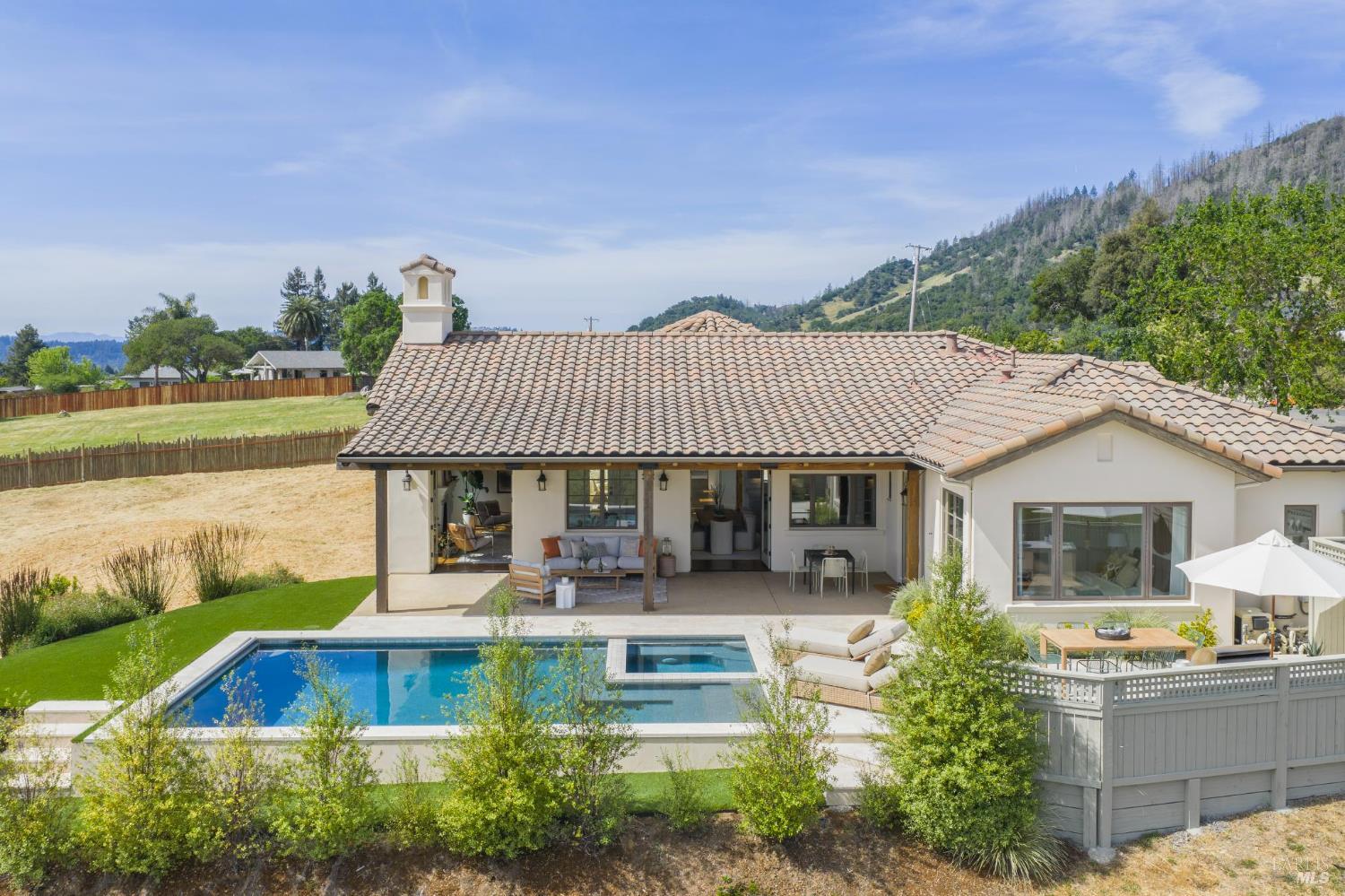 With views to the Valley of the Moon and zoning that may allow a vacation rental, this single-level Spanish-style estate seamlessly blends Old-World charm with modern luxury. Set on a private 1-acre lot, the 3,045 sq ft home captures breathtaking 360-degree views of the Valley of the Moon vineyards, horse pastures, and rolling hills an unforgettable backdrop for everyday living. The impressive Great Room showcases soaring 16-foot trestle ceilings, a grand fireplace, and two sets of French doors that open to a newly completed outdoor retreat featuring a pool, spa, and outdoor kitchen perfect for entertaining or relaxing under Wine Country skies. The chef's kitchen is designed for both function and style, offering high-end appliances, a spacious center island, custom cabinetry, and a walk-in pantry. Two expansive primary suites include luxurious en-suite baths, while two additional rooms provide flexible space for bedrooms, an office, or a media room. The largest suite serves as a private sanctuary with three walk-in closets, a spa-inspired bath complete with a soaking tub, walk-in shower, heated towel rack, and its own cozy fireplace. Located just moments from world-renowned wineries, acclaimed restaurants, parks, and scenic trails this exceptional property offers a rare opportunity to own a true Wine Country retreat.Interested in this Listing?