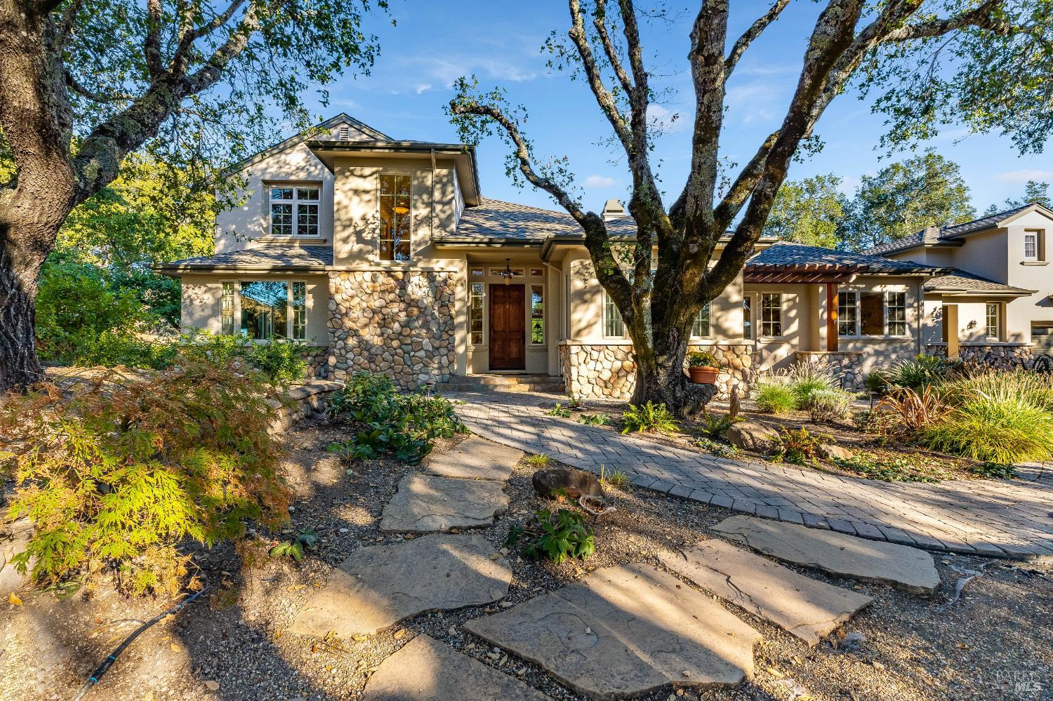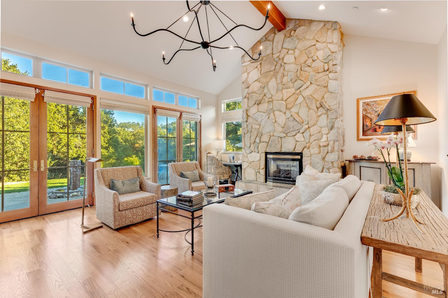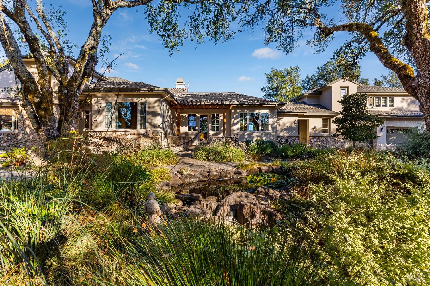 Poised on prime Sonoma County countryside 8373 Singing Hills Trl is the pinnacle of serenity and elegance. Originally part of Otto and Hansel (Mieth) Hagel's historic ranch, this estate offers panoramic views, walking trails, a tranquil pond stocked with fish, and a versatile two story barn perfect for creative pursuits or a possible event venue.The custom 4200 sqft residence exudes warmth and sophistication with oak floors, vaulted ceiling light filled interiors and grand stone fireplaces- all creating a timeless welcoming ambiance. Custom French doors in the living room open to a flagstone patio with a built-in wet bar and soothing fountain. A chic library/study with custom built-ins and woodland views provides a quiet retreat.Designed for entertaining, the chef's kitchen includes double ovens, a gas island cooktop, dual pantries and a charming breakfast nook. The main level primary suite is a true retreat, featuring a grand stone fireplace, sitting area, spa inspired bath, walk-in closet and private patio access. A breezeway leads to a three car garage and ADU/studio above-ideal for guests or a personal sanctuary. Located minutes from vibrant towns, this estate offers a rare combination of serene privacy and effortless daily living.Interested in this Listing?