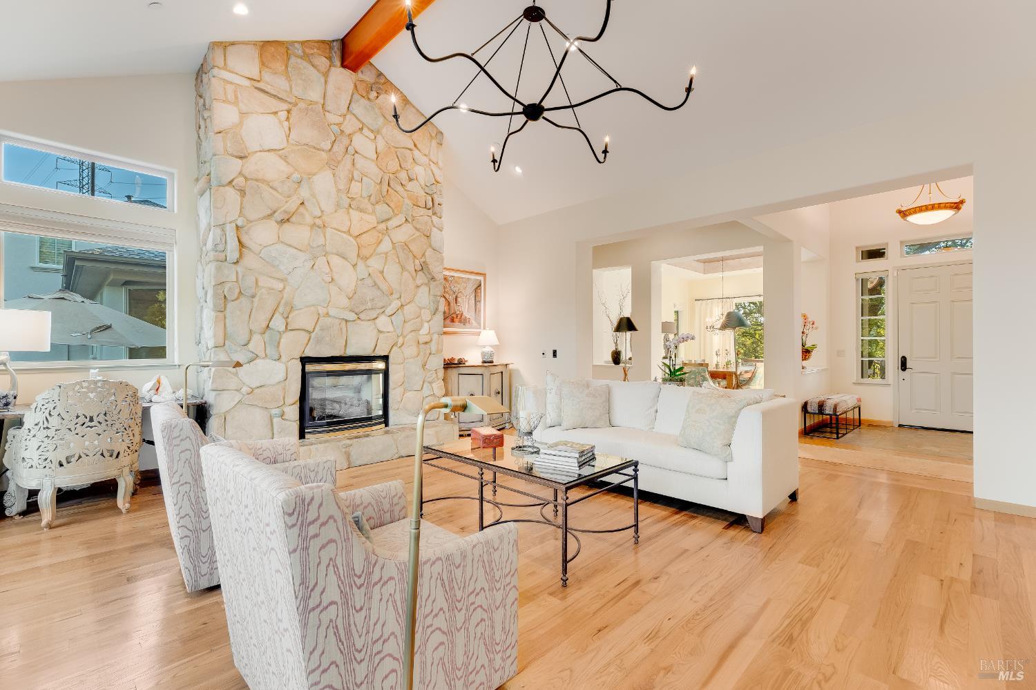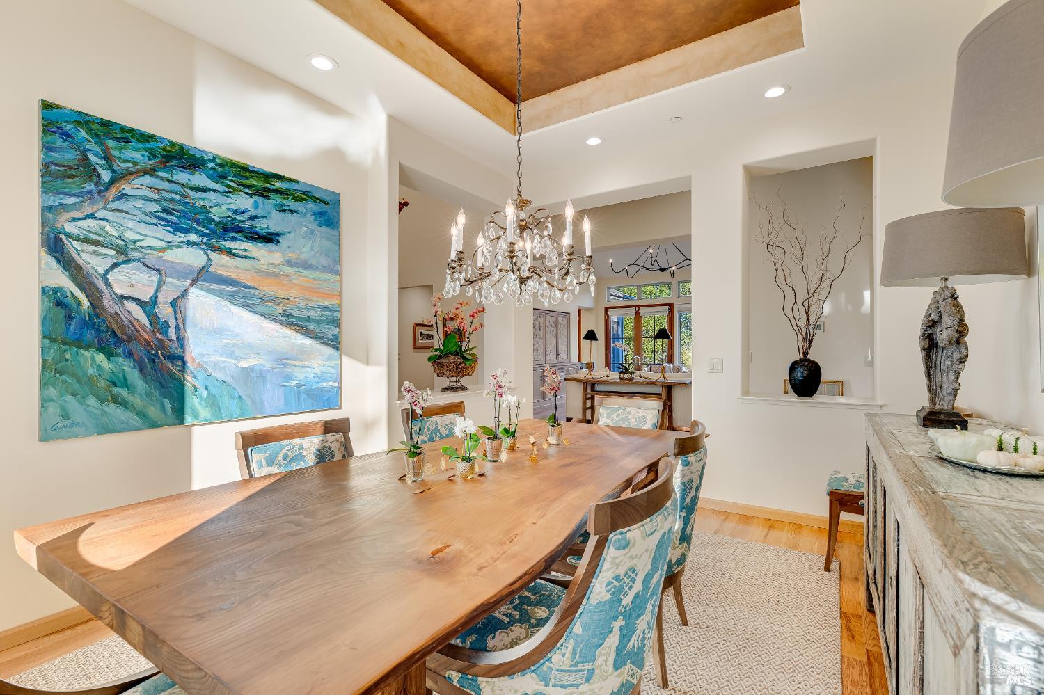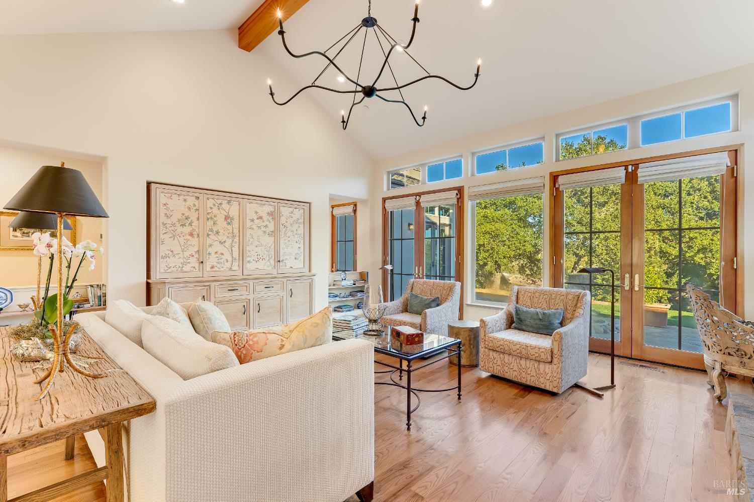 Poised on prime Sonoma County countryside 8373 Singing Hills Trl is the pinnacle of serenity and elegance. Originally part of Otto and Hansel (Mieth) Hagel's historic ranch, this estate offers panoramic views, walking trails, a tranquil pond stocked with fish, and a versatile two story barn perfect for creative pursuits or a possible event venue.The custom 4200 sqft residence exudes warmth and sophistication with oak floors, vaulted ceiling light filled interiors and grand stone fireplaces- all creating a timeless welcoming ambiance. Custom French doors in the living room open to a flagstone patio with a built-in wet bar and soothing fountain. A chic library/study with custom built-ins and woodland views provides a quiet retreat.Designed for entertaining, the chef's kitchen includes double ovens, a gas island cooktop, dual pantries and a charming breakfast nook. The main level primary suite is a true retreat, featuring a grand stone fireplace, sitting area, spa inspired bath, walk-in closet and private patio access. A breezeway leads to a three car garage and ADU/studio above-ideal for guests or a personal sanctuary. Located minutes from vibrant towns, this estate offers a rare combination of serene privacy and effortless daily living.Interested in this Listing?