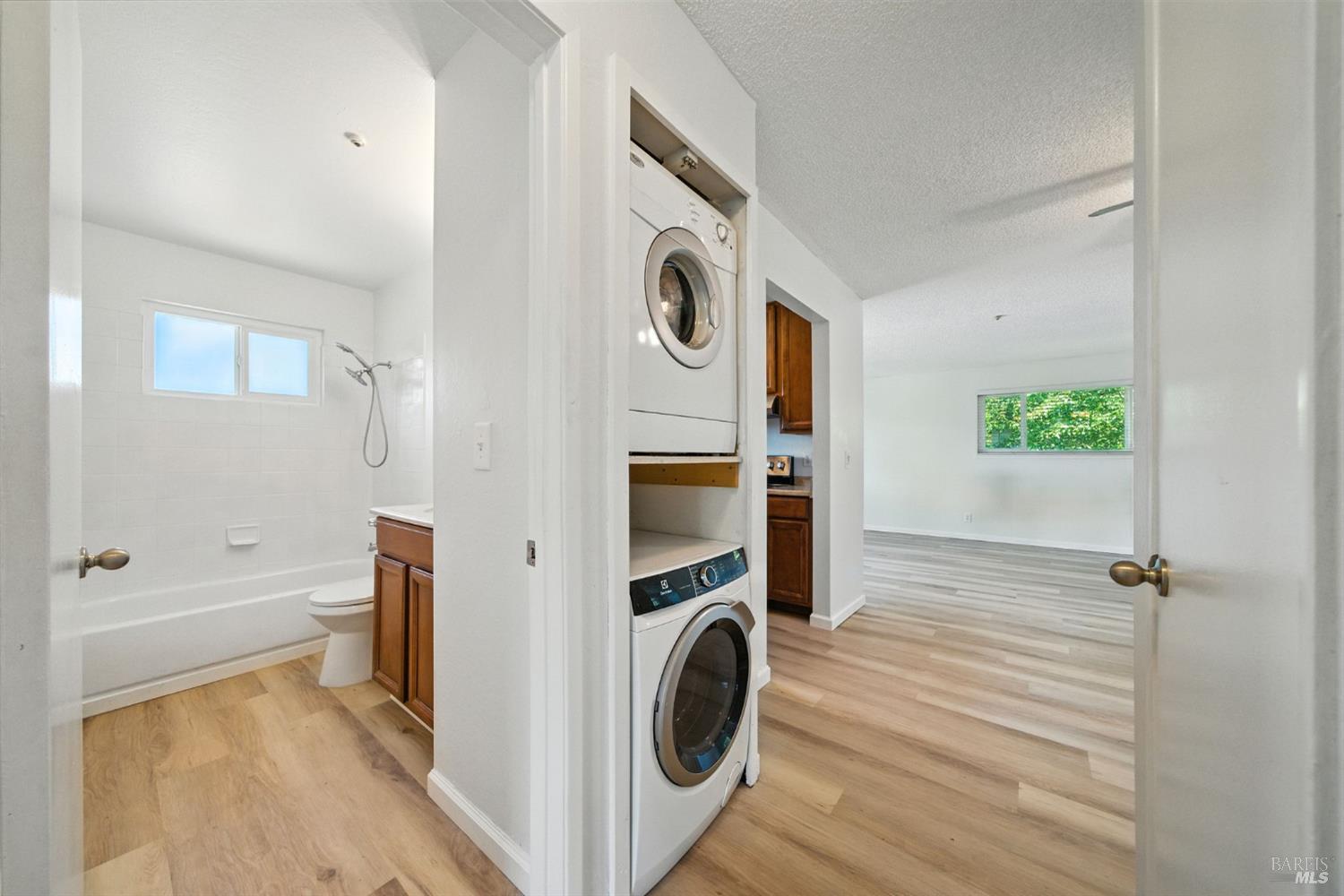 Don't miss this light-filled, top-corner unit, an exceptional opportunity in one of Santa Rosa's central communities! Featuring your own washer and dryer inside, sleek laminate floors throughout, updated windows, and freshly painted, offering a fresh, modern look that complements today's lifestyle. Newer heater and air conditioner. The elevated unit sits above the semi-open garage, offering covered parking and a storage closet. Enjoy your personal balcony, ideal for morning coffee or relaxing in the evening. The beautifully maintained grounds include manicured lawns, majestic redwoods, a sparkling pool, and a welcoming clubhouse. Enjoy unbeatable convenience with the Children's Museum, bus stops, restaurants, Whole Foods, and Coddingtown Mall all less than a mile away. Whether you're commuting, dining out, or exploring local attractions, everything you need is right at your doorstep. This is more than a home, it's a lifestyle. Schedule your showing today and discover why this is the perfect place to call home!Interested in this Listing?