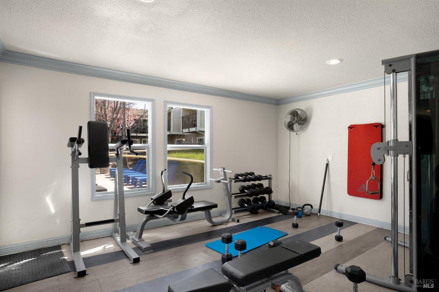 Tucked within a quaint complex in Southeast Santa Rosa, this refreshed and beautifully reimagined 2-bedroom, 2-bath condo offers comfort, style, and exceptional convenience in one irresistible package. Perfectly positioned as a lower-level, single-story corner unit, it combines privacy with easy accessibility just steps from its dedicated parking space and garage. Inside, approximately 900 square feet unfolds in an open, airy floor plan designed for effortless living. The living and dining areas flow seamlessly into the updated kitchen, creating a warm and welcoming space ideal for everyday living and easy entertaining. Manufactured wood flooring runs throughout the main living areas, complemented by a fresh coat of interior paint providing a crisp, modern feel. The thoughtfully updated kitchen features granite countertops, stainless steel appliances including a microwave over the electric range, a brand new dishwasher, modern cabinetry with updated hardware, and a large single-basin stainless steel sink. Venetian blinds throughout the home add a clean, polished touch. Both bedrooms are generously sized, with the primary suite offering a spa-inspired ensuite complete with a beautifully tiled shower with glass enclosure and updated fixtures. The second full bath has also been tastefully refreshed and includes a dedicated space for the included stackable washer and dryer, adding everyday convenience without sacrificing style. Step outside to the darling enclosed patio just off the living area an ideal spot for morning coffee, container gardening, or simply unwinding in your own private retreat. Just steps away in the adjacent complex, enjoy access to a generously sized community pool and spa, a fully equipped gym, showers and restrooms, plus an outdoor kitchen area surrounded by chaise lounges and gathering spaces just perfect for summer entertaining and relaxing weekends. All of these resort-style amenities are included within the HOA, offering an elevated lifestyle with low-maintenance ease. Close to shopping, restaurants, and transportation, this stunning Southeast Santa Rosa condo blends modern updates, warm character, and exceptional amenities in a smaller, intimate community. A rare opportunity that truly feels like home.