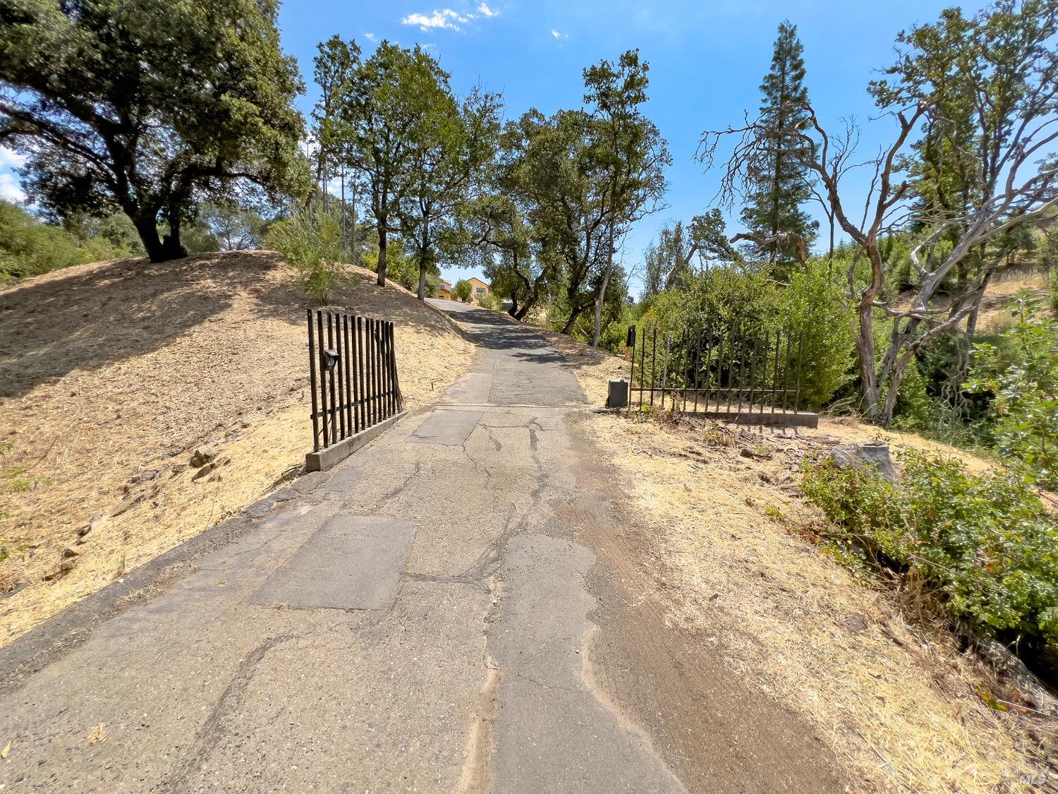 Mark West Springs Road to Cross Creek, to Reibli Rd to Linda Lane on the left. Go to base of driveway at arrow and turn right to first driveway at gates. BE CAREFUL, LOT IS EXCAVATED. |