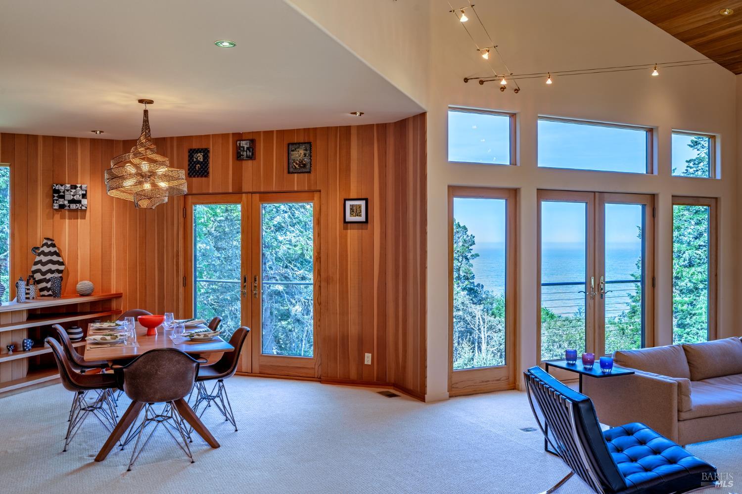 This unique property offers an extraordinary balance: the comfort and elegance of a modern home, nestled right in the heart of California's wild beauty. It sits quietly on 1.6 acres amid redwoods and open coastal meadows, with sweeping views of the Pacific Ocean that change with the light and the seasons. The home was designed by Sea Ranch Architect Lisa Dundee and built by renowned contractor Helmuth Emke. You enter through the gate into a beautifully landscaped private garden connecting the home, cottage and two car garage. Inside, the main house is spacious and refined - everything you'd expect from a thoughtfully designed modern retreat. The great room features a stunning dining and living area with fireplace and amazing views all around as well as a cozy corner for reading. The state-of-the-art kitchen leads to the spacious outdoor entertainment area with BBQ and fire pit. It's the perfect place to gather with friends in a magical setting overlooking the ocean. Upstairs is the luxurious primary suite with two bathrooms and walk-in closets. There's an office space off the foyer, a powder room down the hallway and an exercise room with ocean views on the lower level. One of the features the owners love most is the detached cottage. It's a retreat to play guitar or just be quiet with your thoughts, but it also doubles as a cozy space for visiting friends. Everyone who stays says the same thing: I didn't realize how much I needed this.'' Whether it's the fog rolling in through the trees or the sight of deer grazing just outside the window, nature has a way of humbling and healing you here. Sea Ranch amenities are endless incl. 50+ miles of scenic trails and recreation centers with tennis, pickle ball, pools and sauna. The nearby town adds just the right touch - casual, low-key, and welcoming, with enough essentials to keep things easy, but never noisy or crowded. You can stroll along the bluff trail in the morning, read by the fireplace in the afternoon, and cook dinner while watching the sun dip into the ocean. For the owners, Sea Ranch has become more than a getaway - it's a way of living. One that feels especially precious after years of busy city life. It's where they come to reconnect, to exhale, to remember what matters. If you've been craving a place that honors both your need for beauty and your need for peace, this home may be exactly what you're looking for.Interested in this Listing?