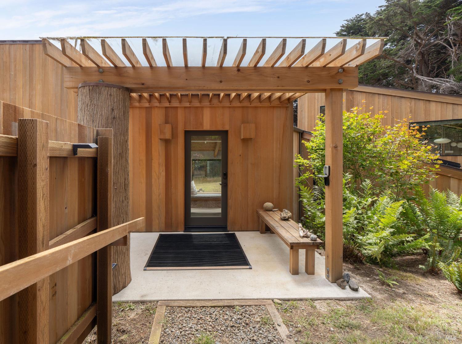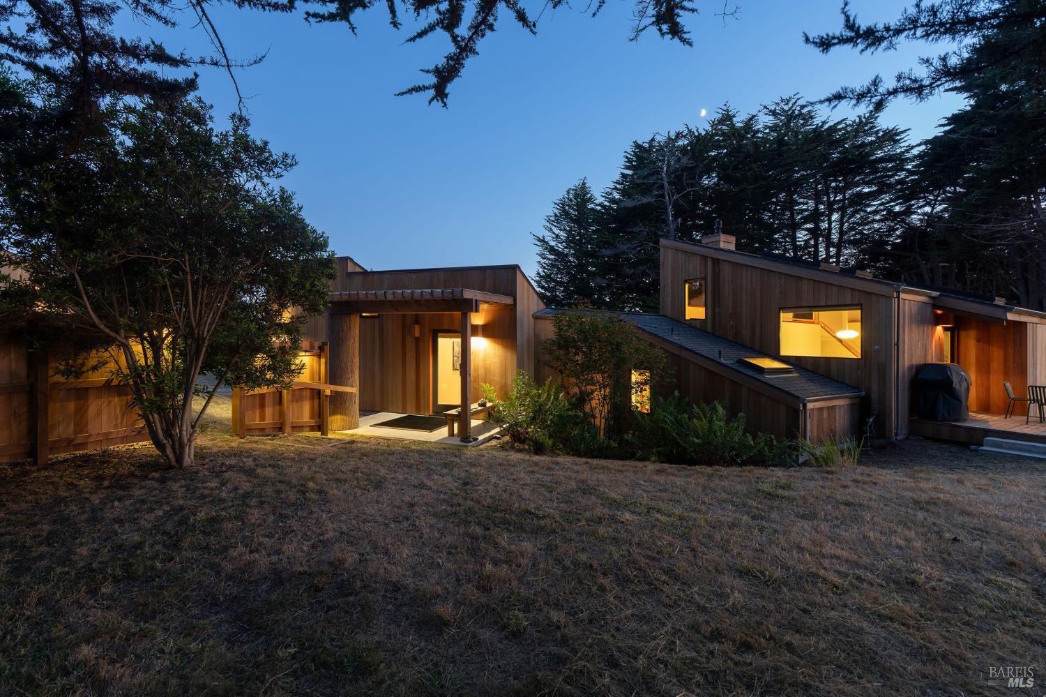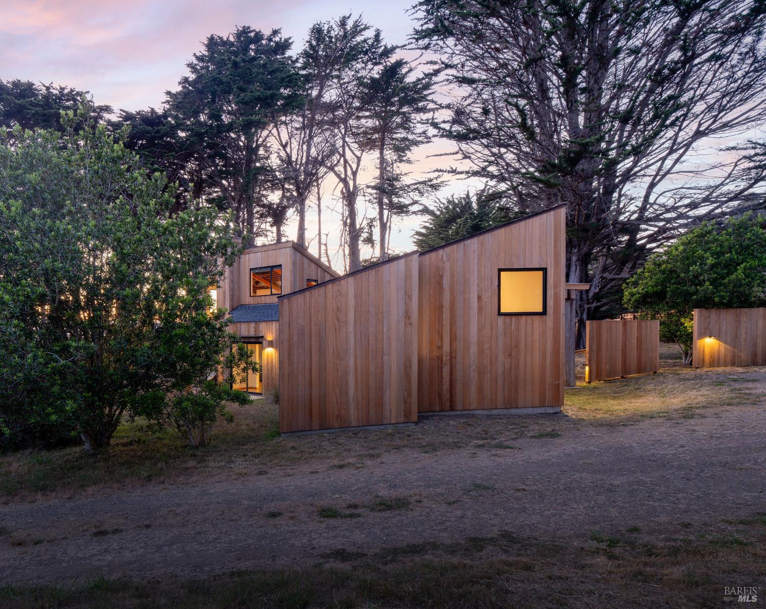 This stunning home was designed by iconic architect Joseph Esherick in the late 60s as one of the original Sea Ranch demonstration homes. Donlyn Lyndon, another member of the stellar group of original architects, designed an 805sf addition in 2014 and a detached workshop/studio which is the perfect sanctuary. The private site is surrounded by nature, just steps from the ocean and protected by a magnificent cypress hedgerow that allows filtered sunset views. A large bedroom with window seat is to the left of the entrance and to the right is the bathroom and living room with deck and hot tub. Concrete and bamboo floors with radiant heat and a fireplace provide pleasant temperatures and large glass doors and windows bring the outside in. The kitchen and dining nook have their own little deck, and the spacious loft provides extra sleeping space. The placement of the windows and the view of the ever-changing meadow, sky and ocean are fascinating. The Moonraker Rec Center is nearby, and amenities are endless incl. 55+ miles of trails along the bluff and into the redwoods, tennis, pickle ball, pools, sauna, and more. Whether you enjoy the spectacular sunsets from one of the decks or hike the nearby trails, you will be captivated by the peace and quiet of this magical place.Interested in this Listing?