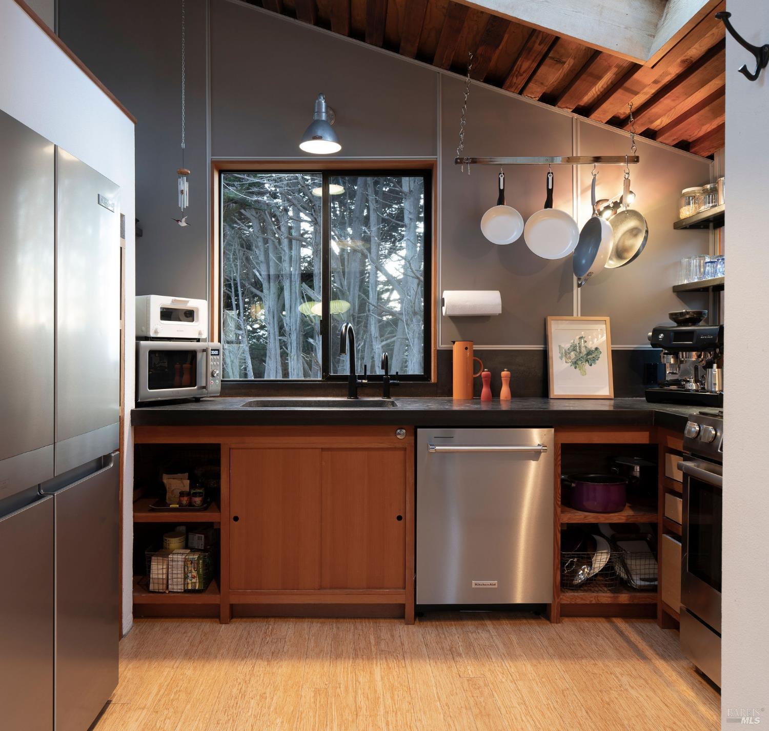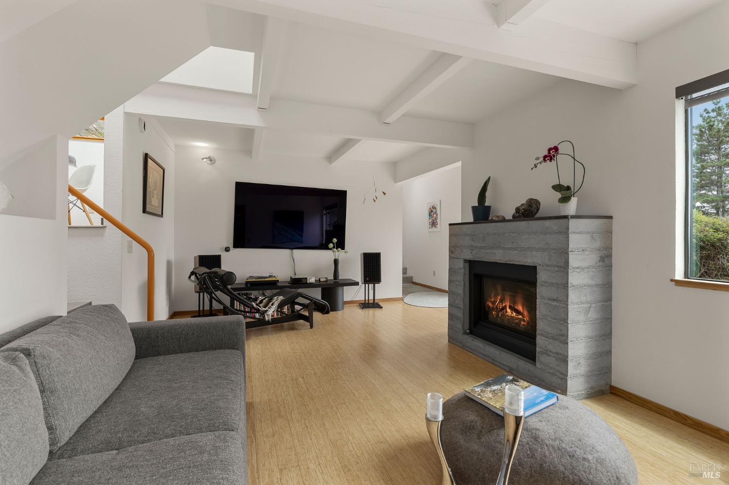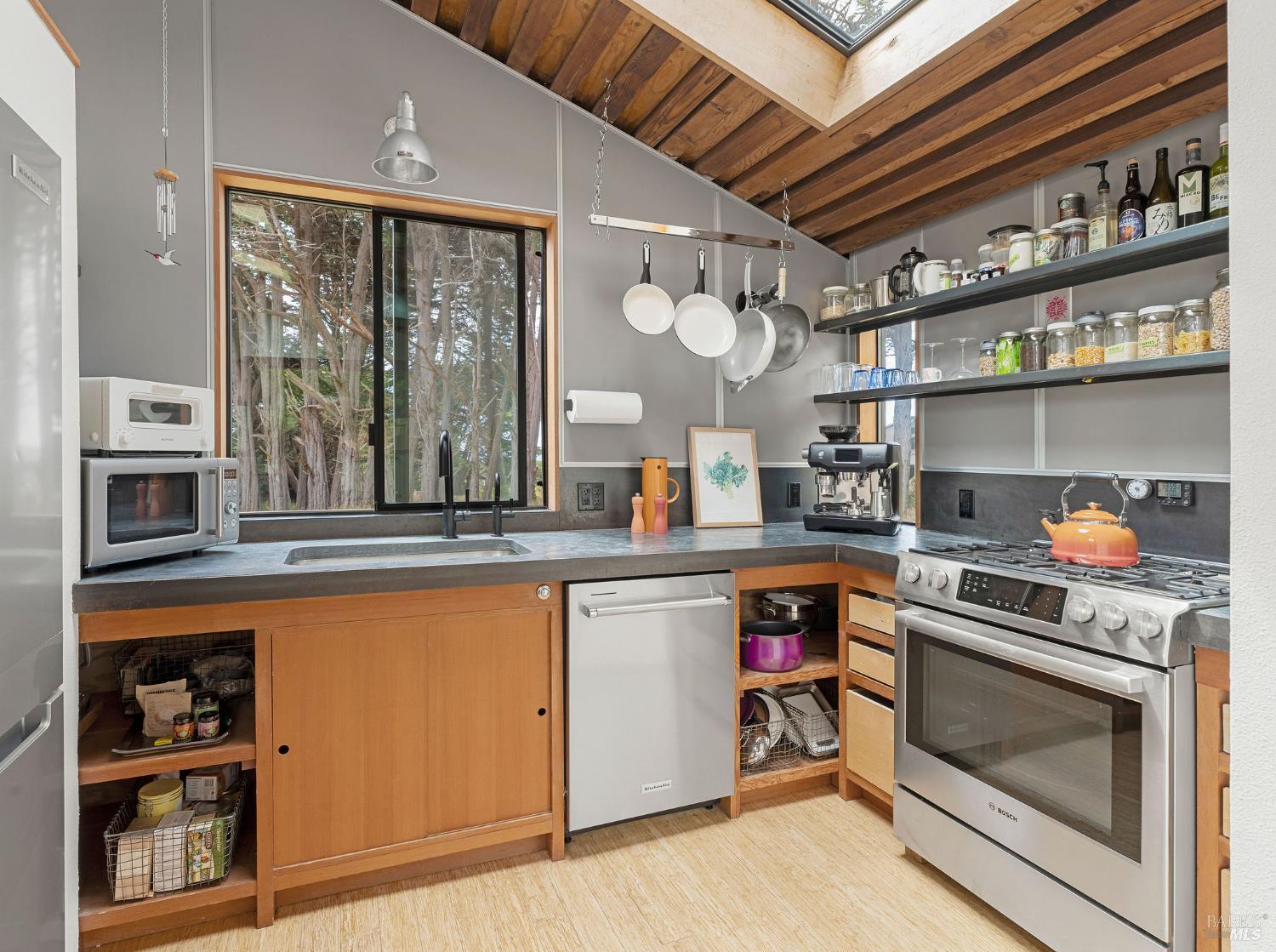 This stunning home was designed by iconic architect Joseph Esherick in the late 60s as one of the original Sea Ranch demonstration homes. Donlyn Lyndon, another member of the stellar group of original architects, designed an 805sf addition in 2014 and a detached workshop/studio which is the perfect sanctuary. The private site is surrounded by nature, just steps from the ocean and protected by a magnificent cypress hedgerow that allows filtered sunset views. A large bedroom with window seat is to the left of the entrance and to the right is the bathroom and living room with deck and hot tub. Concrete and bamboo floors with radiant heat and a fireplace provide pleasant temperatures and large glass doors and windows bring the outside in. The kitchen and dining nook have their own little deck, and the spacious loft provides extra sleeping space. The placement of the windows and the view of the ever-changing meadow, sky and ocean are fascinating. The Moonraker Rec Center is nearby, and amenities are endless incl. 55+ miles of trails along the bluff and into the redwoods, tennis, pickle ball, pools, sauna, and more. Whether you enjoy the spectacular sunsets from one of the decks or hike the nearby trails, you will be captivated by the peace and quiet of this magical place.Interested in this Listing?