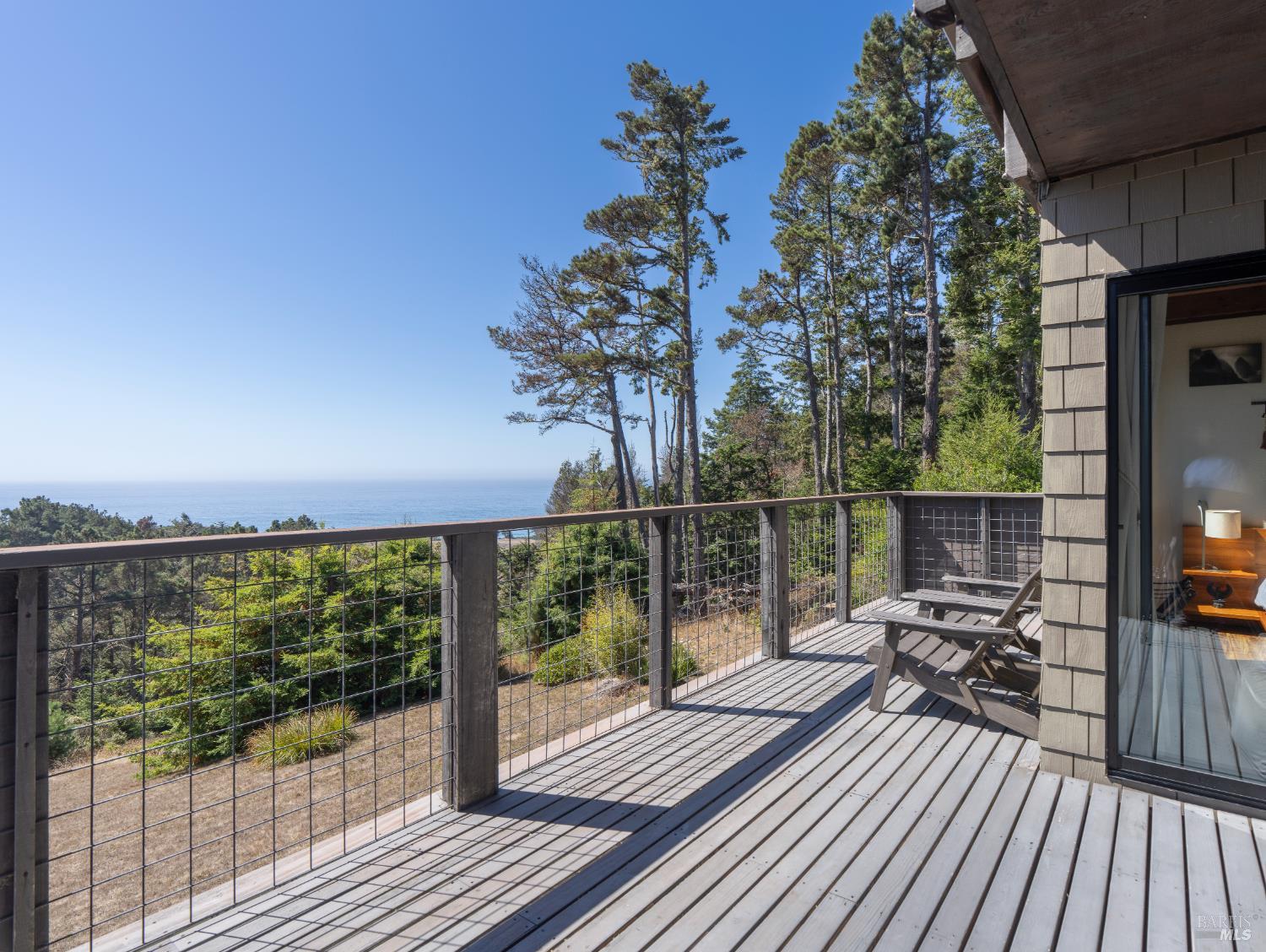 Hillside elegance in The Sea Ranch, this private contemporary residence is elevated on a sun-drenched knoll with sweeping ocean and coastal landscape views located at the end of a quiet cul de sac. Offering a rare sense of seclusion and serenity, the property spans approximately 2,230 square feet on a generous 0.65-acre parcel, thoughtfully designed to harmonize refined architecture with its natural surroundings. The home's light-filled great room serves as the centerpiece of daily living and entertaining, featuring soaring ceilings, refined finishes, gas fireplace, and a modernized kitchen that opens seamlessly to an expansive deck running the full width of the residence. This exceptional indoor-outdoor flow invites relaxed gatherings, sunset dining, and year-round enjoyment of the coastal environment. Adjacent to the great room, a tranquil sunroom provides a deeply immersive connection to nature and has long been a favorite retreat for both owners and rental guests alike. The upper-level primary suite offers privacy and comfort, enhanced by banks of windows that capture abundant natural light and frame dramatic ocean vistas. A private deck extends the experience outdoors, creating an ideal setting to take in the expansive views of sea and surrounding open space. Designed for durability and ease of ownership, the home is equipped with solar and battery backup and is clad in resilient Hardie siding, well suited to withstand coastal conditions. Residents enjoy access to The Sea Ranch's renowned amenities, including three recreation centers, an airstrip, equestrian facilities, over 50 miles of scenic trails, and multiple pristine beaches. This exceptional offering presents a rare opportunity to own a sophisticated coastal sanctuary on Seaward Reach where privacy, design, and lifestyle converge in one of Northern California's most iconic communities.Interested in this Listing?