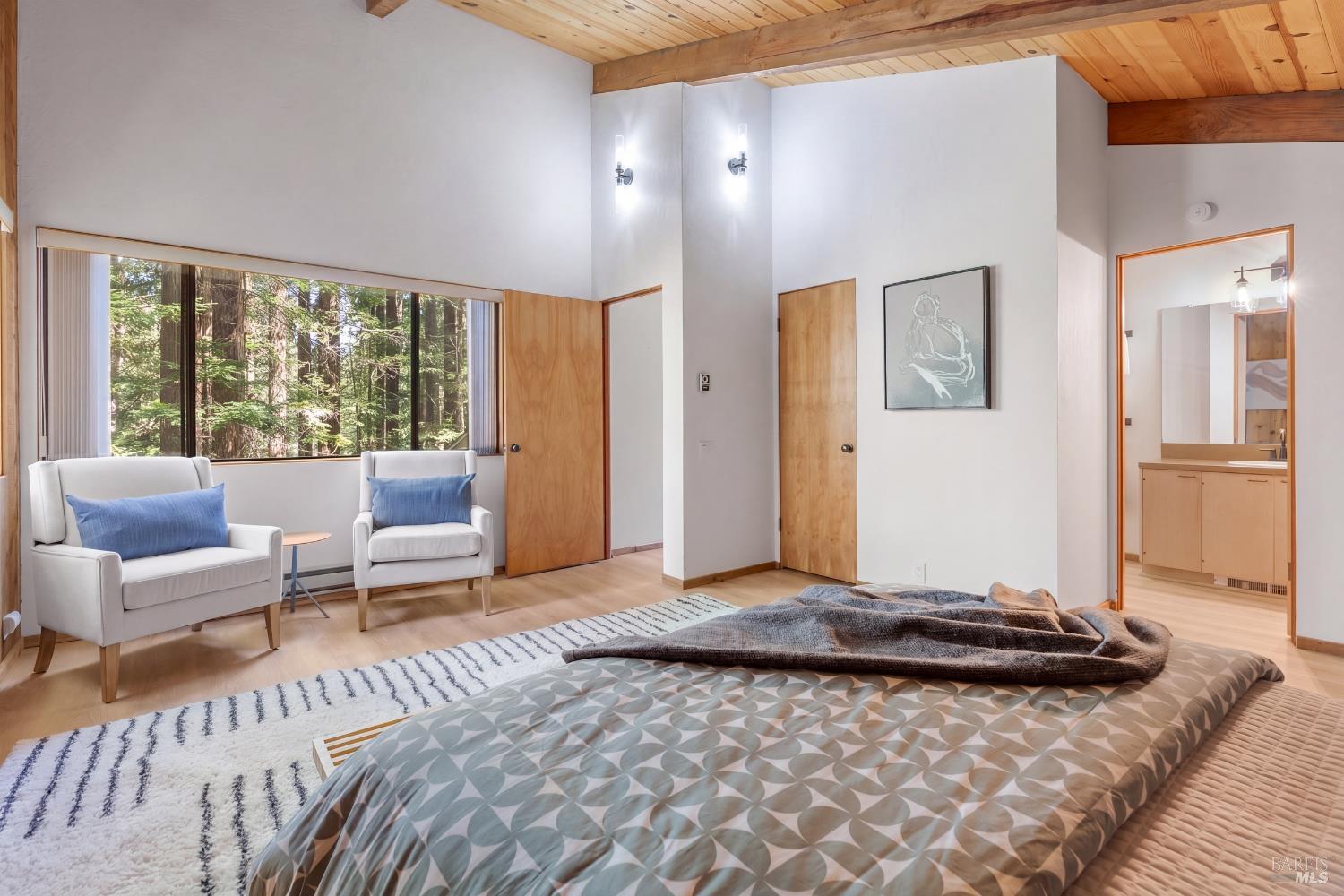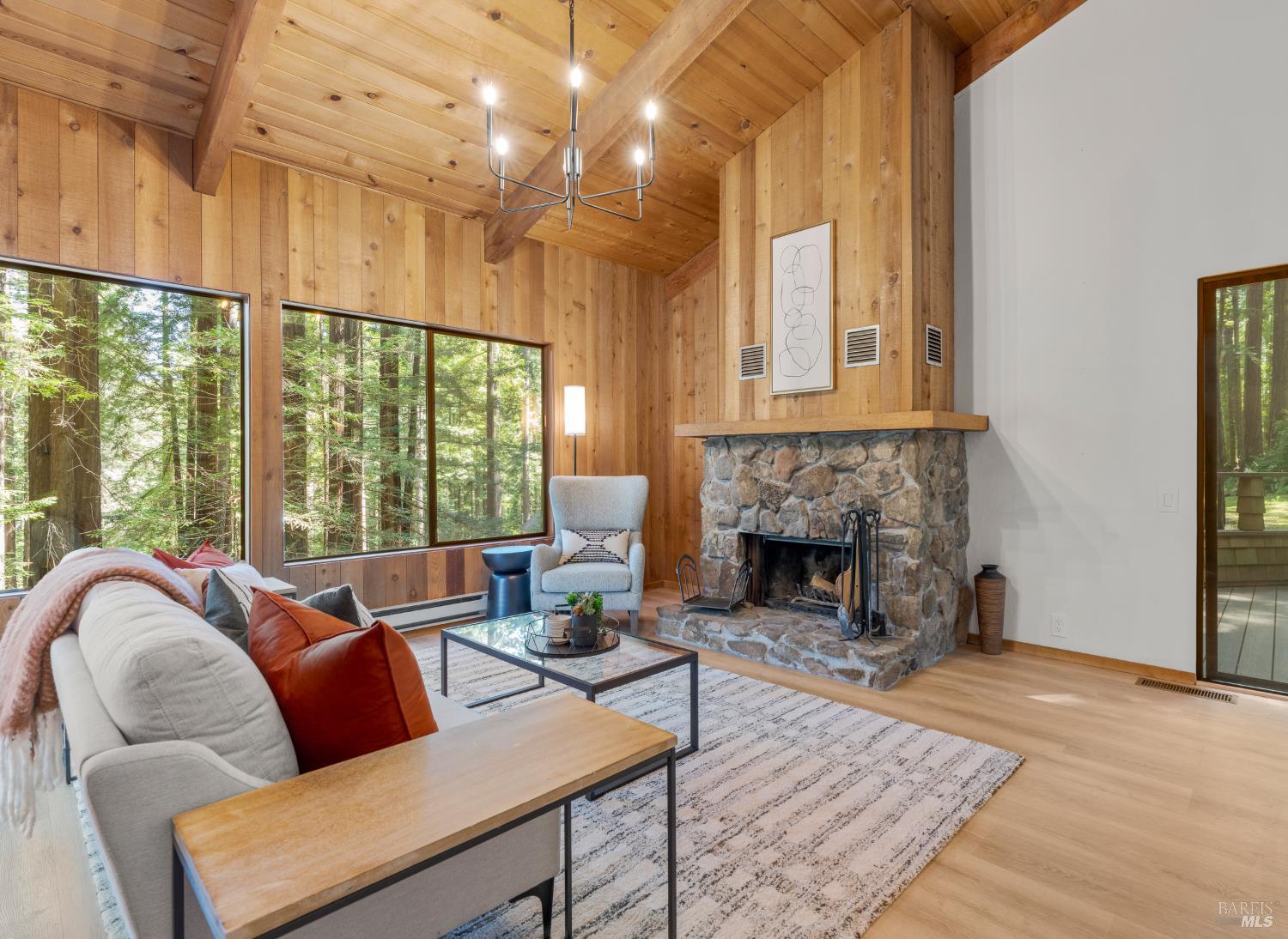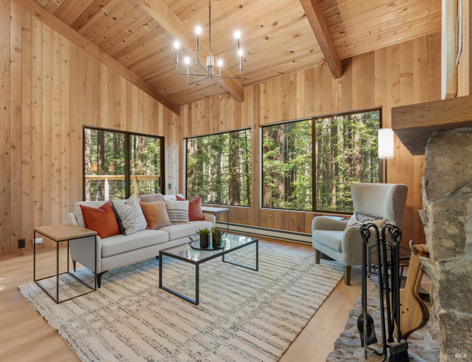 Tucked among the redwoods and ferns this timeless Sea Ranch home beckons to become your private get-a-way. It's yours to imagine sitting next to the stone fireplace enjoying a glass of wine, great conversation or simply to escape between the pages of a good book in your favorite chair. Enjoy the mornings with a cup of coffee while admiring the natural setting on one of two newly rebuilt decks. One of which shares an old growth redwood stump that has become this properties signature. Your choice of forced air or baseboard heat suggests easy cozy living. Ensuite bedrooms on different levels ensure privacy and convenience. In addition to the newly rebuilt decks new flooring and energy efficient LED lighting has been added. Nearby trails take you deeper into the woods or along the Gualala river and Hot Spot for picnicking. The Sea Ranch also offers many more miles of trails in the open meadows or along the bluff top leading to several beaches for more discoveries. The Sea Ranch includes three recreation centers, each with a pool and sauna with tennis and/or pickleball courts.Interested in this Listing?