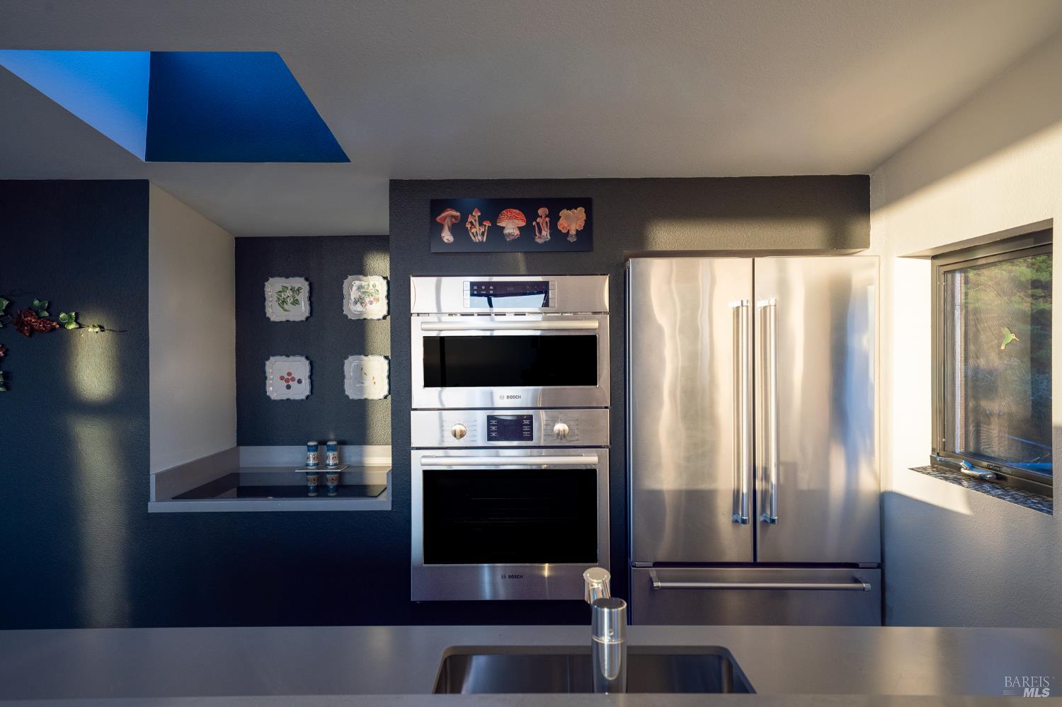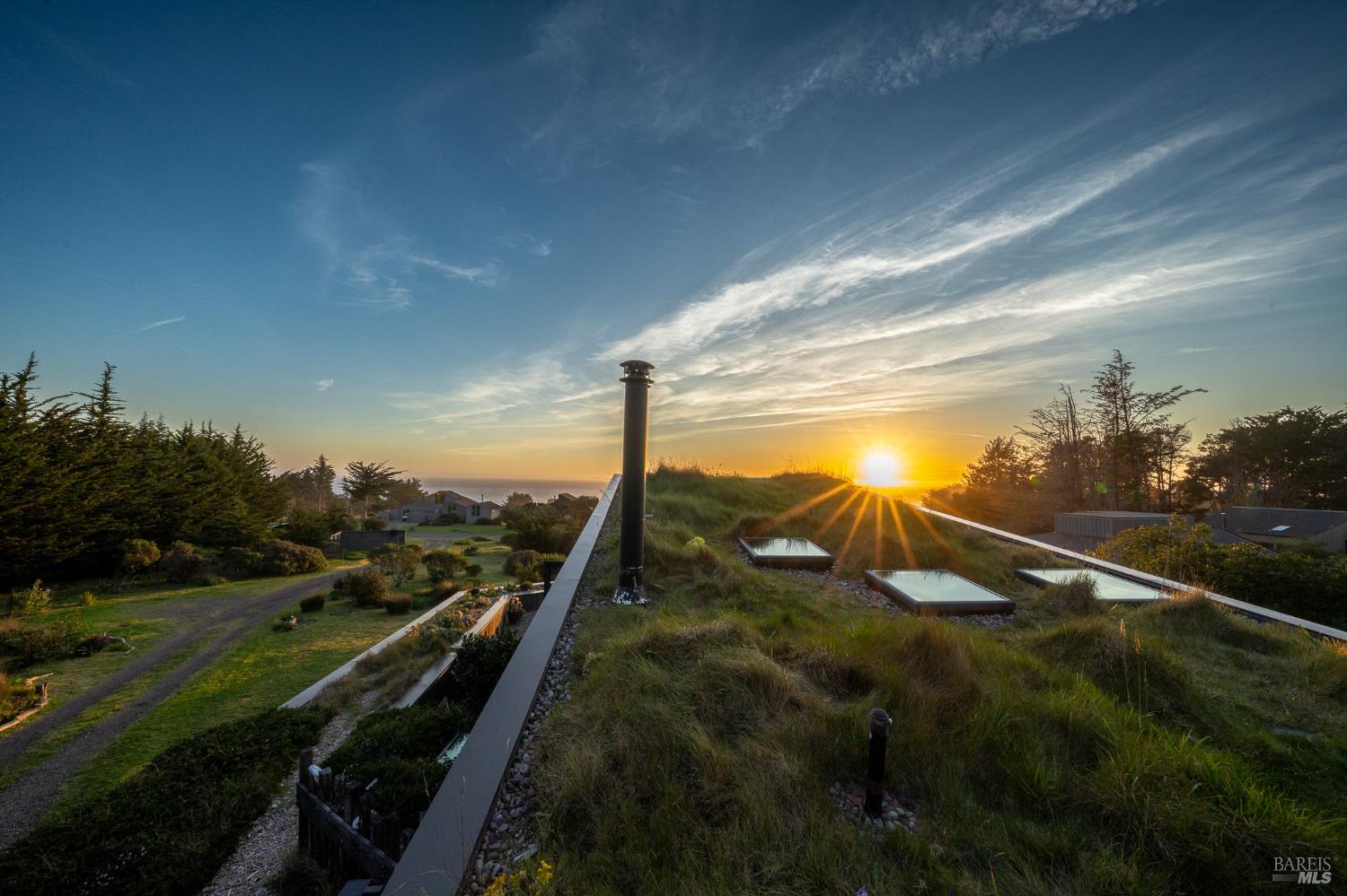 Modern green home with expansive ocean views on a meadow lot west of Hwy 1. Shaped by the natural beauty of the Sonoma Coast, this residence reflects the founding principles of The Sea Ranch where structure, landscape and horizon exist in balance. Cedar and concrete define the architectural composition while expansive windows frame the meadows, skyline, and the vast blue Pacific Ocean. A living roof and green wall blur the boundary between architecture and landscape, lifting the native flora onto the structure itself, grounding the residence within the surrounding coastal ecology. This exquisite home leans into efficiency with owned ground-level solar, high speed internet, and the warm embrace of clean radiant floor heating, Nest, built-in Bose speakers, induction cooktop, EV charging, and many comfort features that can be controlled through your smart devices. The result is modern luxury, site-specific architecture deeply connected to the land - a modernist expression of Sea Ranch living. Mornings begin with sunrise cresting over the cypress canopy, catching the golden tips of meadow grass and the fragrant blooms of California lilac against an endless blue horizon. As the coffee brews in the open concept kitchen, the indoor and outdoor space becomes seamless as you move out onto the large wrap-around upper veranda. The sights and sounds of The Sea Ranch fauna waking up provides endless delight. By evening, this veranda becomes a front row seat for some of the most striking sunsets on the Sonoma Coast. It's a setting where beauty and nature are constant companions. The property sits west of Hwy 1 providing easy access to the Bluff Trail and its beaches, the redwood forest trails on the coastal ridge above, and the Ohlson and Del Mar Recreation Centers - placing the full breadth of Sea Ranch living within easy reach. Miles of trails wind through meadows, forests and blufftop landscapes, connecting residents to beaches, dramatic overlooks, and sheltered coves. Recreation centers offer outdoor heated pools, tennis, pickleball and sauna, while nearby Gualala provides restaurants, markets and everyday conveniences along the coast. This home represents a rare opportunity to experience a truly remarkable work of coastal architecture, within the magic of The Sea Ranch community and its environs.Interested in this Listing?