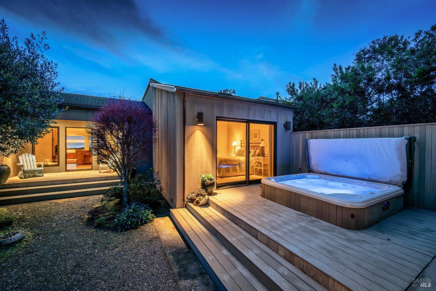 Welcome to your coastal haven on the coveted Sea Ranch coastline with captivating ocean views. This masterfully designed 3 bed/3 bath West Meadow Ocean View home allows for ease of living on one-level with ample opportunities to gaze into the ocean blue, enjoy colorful sunsets and starry night skies. Living spaces glow with an abundance of natural light and warmth from multi-zoned radiant heat. Spacious living room with gas fireplace, stone surround and raised hearth anchors the space and inspires gathering and conversation. A built-in window seat aligned with the horizon invites contemplation or a spot to read or relax. Step outside from the living room onto an outdoor deck, perfect for morning coffee or cocktails at twilight surrounded by coastal beauty. Amble over to the dedicated dining area surrounded by windows with ocean view for memorable meals or casual bites adjacent to the chef's kitchen with six-burner cooktop, built-in oven, granite countertops, stainless steel appliances, island with seating and convenient coffee bar. Admire the sea from your en-suite primary bedroom offering two walk-in-closets, primary bathroom with two sink vanities, granite countertops and walk-in shower. Two inspiring guest bedrooms and two full guest bathrooms with excellent lighting and honed marble countertops will impress your guests. Washer and dryer inside laundry closet off hallway. Soak in the hot tub, by day or by night, inside the enclosed landscaped courtyard adjacent to the two-car garage zoned with radiant floor heat, TV, refrigerator, built-in storage, utility sink and workshop nook. Enjoy close proximity to the ocean bluff trail, nearby Del Mar Recreation Center, access to all Sea Ranch beaches, miles of trails, and many other Sea Ranch amenities. Whether you are looking for a part-time coastal retreat or full-time residence, this home is perfect for your lifestyle and memories!Interested in this Listing?