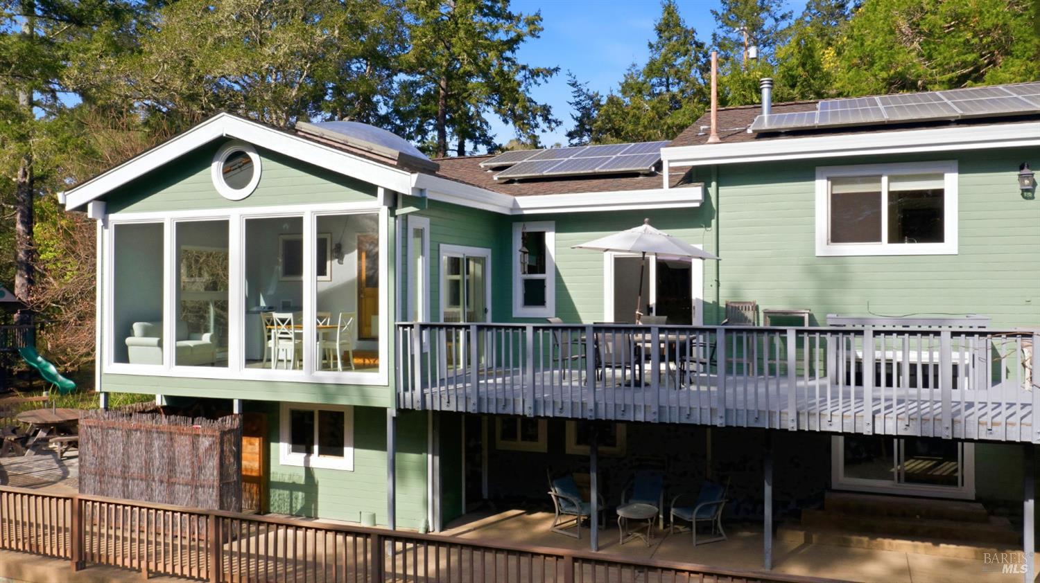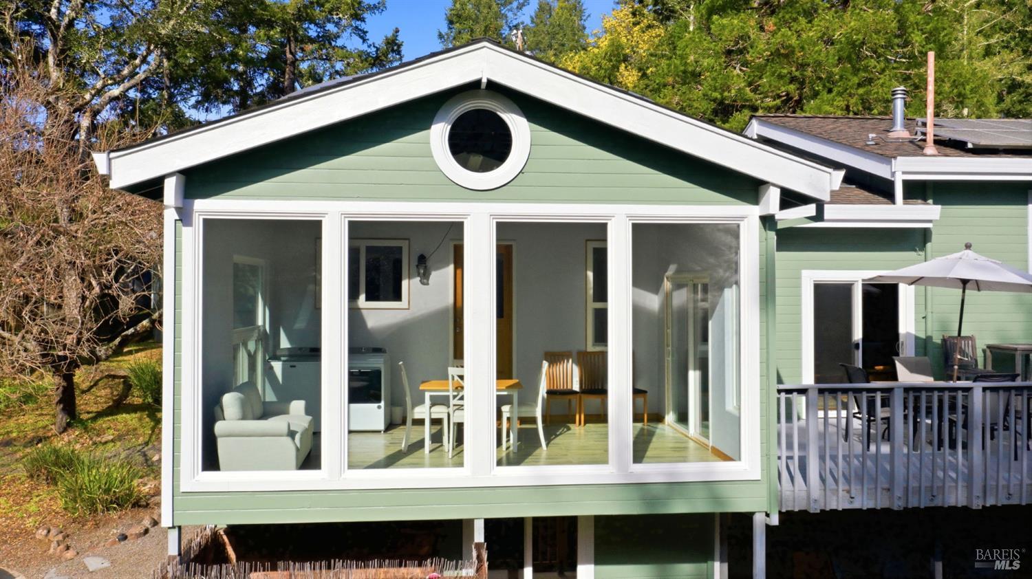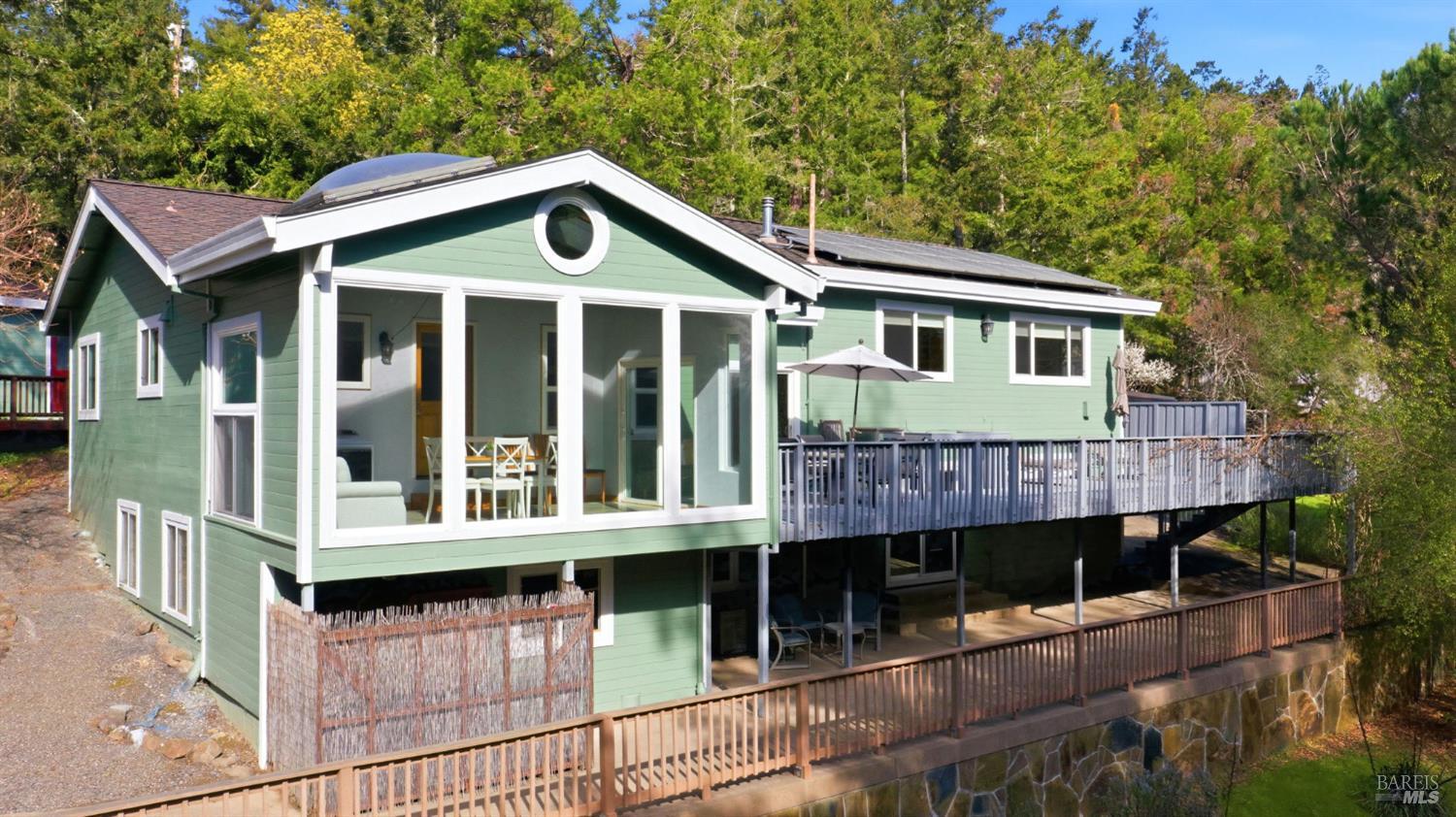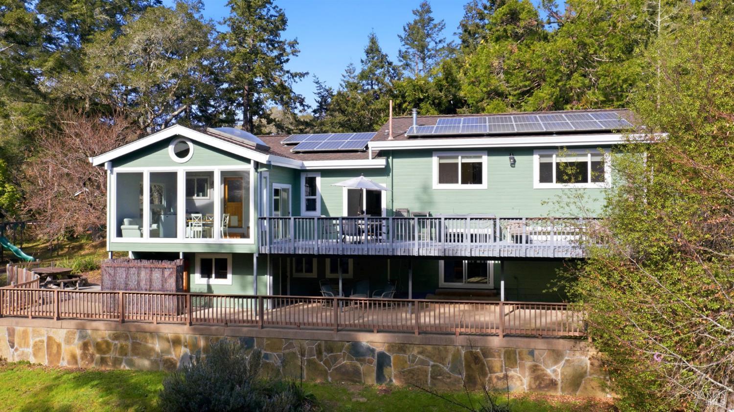 This Sebastopol country property presents an exceptional blend of open meadow, ideally suited for fruit trees and gardens, and serene walking trails through a redwood forest, all encompassed within 4+ acres. The light-filled 3-bedroom home features Craftsman details and is designed for seamless indoor/outdoor living. The kitchen includes substantial cabinetry and adjoins a sunroom, while the inviting living room is equipped with a stand-alone gas fireplace and flows to a spacious deck with scenic views. The spacious primary suite accommodates a separate office area and a cedar-lined walk-in closet. The primary bathroom is notable for its extensive glass-block and tile shower. The family/game room, equipped with a wet bar, offers opportunities for fun and recreation. In the multi-room basement there's a wine cellar and room for hobbies. There's a two-car detached garage. Outdoor amenities feature an amphitheater and stage for gatherings and activities. There's a separate fully fenced area for pets, mature fruit trees and raised garden beds. Experience the restorative benefits of nature along the property's forested trails. This distinctive property is located within desirable West Sonoma County, less than 12 miles to the beach and under 7 miles to Sebastopol.Interested in this Listing?