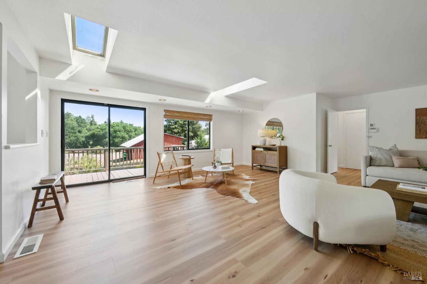 Tucked away on a quiet country lane just minutes from coveted downtown Sebastopol, this rare hideaway offers 1.8 acres of level, usable landan ideal setting for homesteading, equestrian pursuits, or simply enjoying serene privacy. At its heart is a beautifully maintained 3-bedroom, 2.5-bath single-level ranch home with a bonus office/studio and a spacious 900 square foot detached barn/workshop. Nearly every detail has been thoughtfully updated, from freshly painted interiors and new flooring to a cozy EPA-rated woodstove. The open-concept living room is filled with gleaming natural light from multiple skylights and frames peaceful views of the sprawling backyard. Upgrades abound, including three stylishly renovated bathrooms, updated eat-in kitchen with new counters and stove top, a large solar array with EV charging, electrical enhancements on home and barn, and a high-yield well supported by new ozone and UV water treatment systems. The grounds are equally impressive, featuring an expansive deck, enchanting oak grove, seasonal creek, horse corral, chicken coop, gardens, and barn with concrete floors and new 220 power. Carefully tended landscaping includes an orchard with plum, pluerry, apple, and nectarine trees, offering both beauty and abundance. Truly a dream property.Interested in this Listing?
