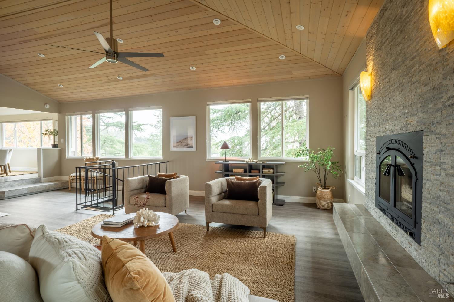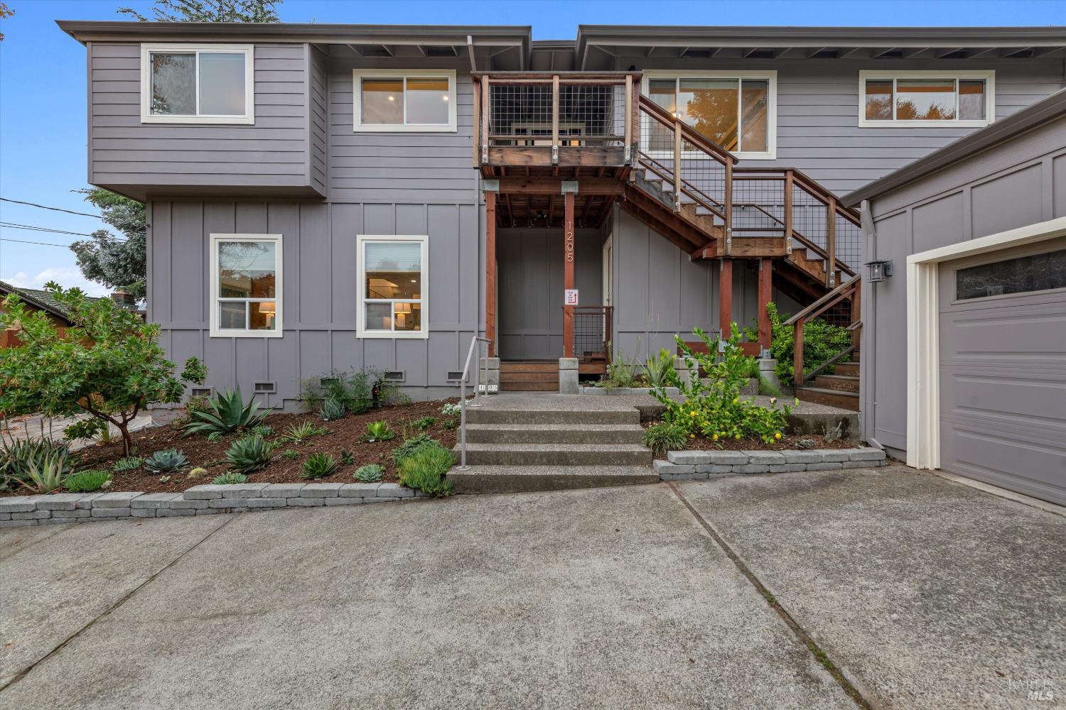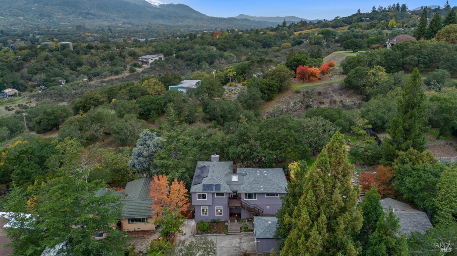 Harmoniously set on .26 acres in Sonoma Valley's oak-studded hills, this meticulously updated 2,930 sq ft retreat offers privacy with sweeping Sonoma Mountain views. The reverse floor plan maximizes vistas from main living spaces, featuring a remodeled kitchen with granite counters, wood cabinetry, travertine flooring, and stainless steel appliances. Step outside to expansive hardwood decking amongst the treetopsan elevated stage for memorable gatherings. Four bedrooms and four baths provide spacious accommodations, each with unique views. The lower level features an additional living area and bar, creating a speakeasy-style entertaining area, plus a separate cedar sauna. Recent updates include newer roof, solar panels, HVAC, marble fireplace, custom kitchen and baths, ipe decking, and tongue-and-groove wood ceilings. The thoughtful layout offers potential for a private lower-level suite. A detached two-car garage with space for storage. Located in a walkable area close to renowned restaurants, wineries, farmers market, and wonderful neighbors.Interested in this Listing?