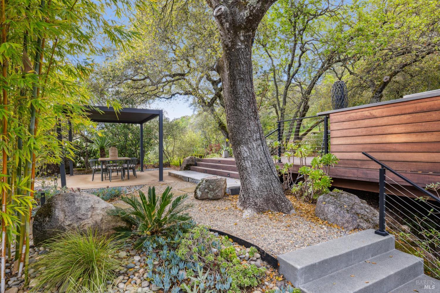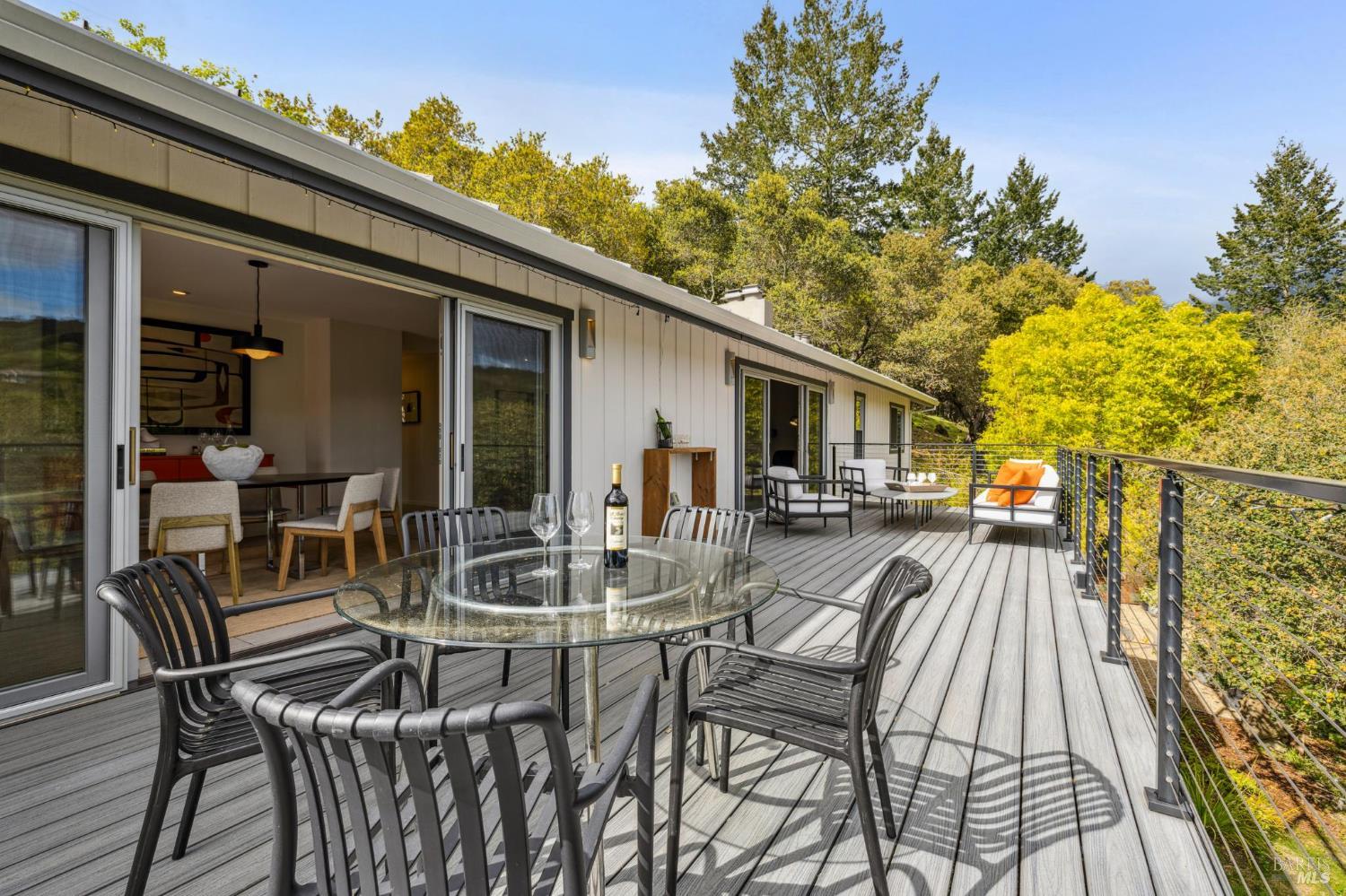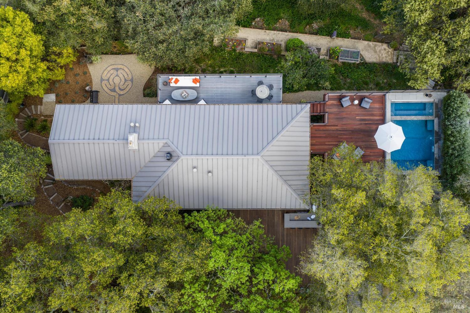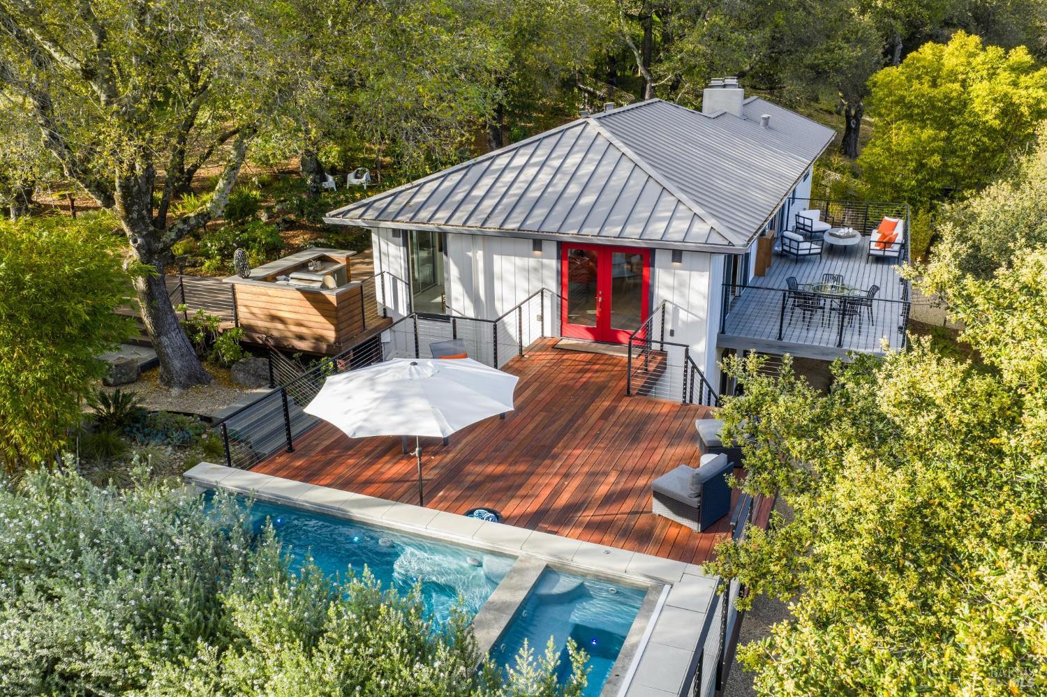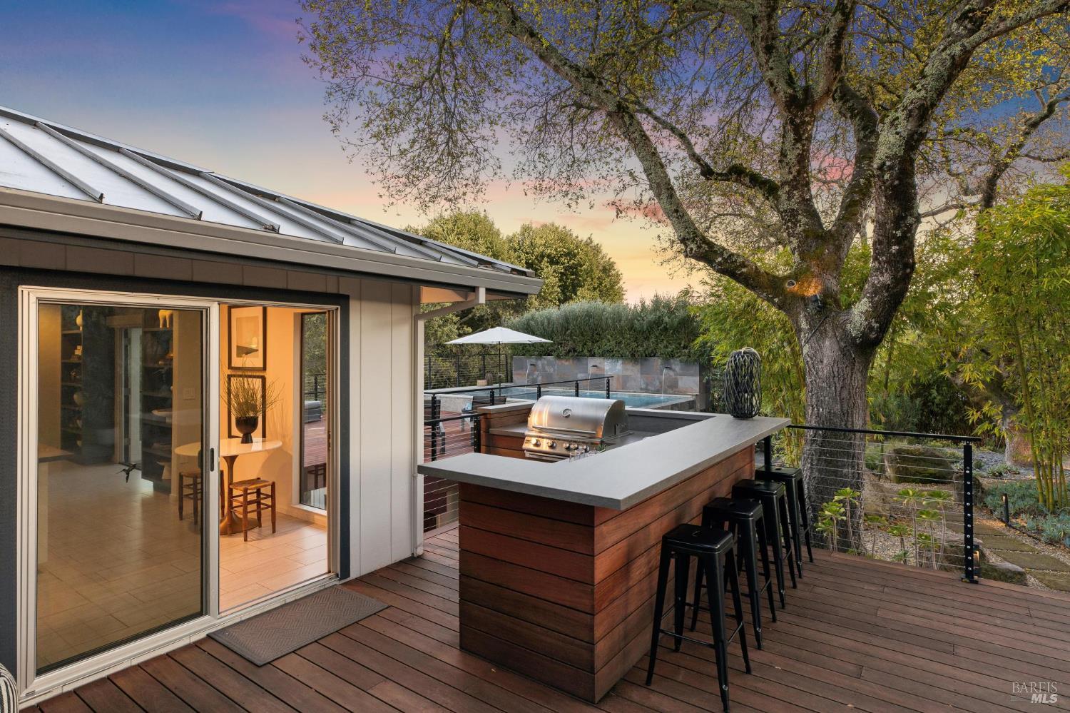 Flor d'Luna | Sonoma Valley. Private Oasis. 5-Star Resort Inspired. Stunning Views. Fabulous for Entertaining. Gracefully set on approximately 0.65 acres above Agua Caliente, Flor d'Luna is a serene Sonoma Valley retreat that balances architectural intention, natural beauty, and refined indoor-outdoor living just minutes from Glen Ellen, Kenwood, and Sonoma Plaza. Thoughtfully designed with a reverse floor plan, the home captures sweeping views and abundant natural light, with the great room positioned on the upper level and opening to two expansive view balconies, Light-filled and expansive, this space is ideally suited for both intimate gatherings and elegant entertaining, with sweeping outlooks that draw the surrounding landscape inward. The European-inspired kitchen is both sculptural and functional, appointed with quartz countertops, a designer tile backsplash, display shelving, and stainless steel appliances. A breakfast area flows naturally into the living space, reinforcing the home's effortless sense of connection and ease. The upper-level primary suite is privately positioned adjacent to the great room, while the home offers a total of four bedrooms and four and one-half baths, including two distinct primary suites - providing exceptional flexibility for guests or multigenerational living. The lower level reveals a private apartment-style suite complete with kitchenette, den, and fireplace - an inviting retreat ideal for extended stays, work-from-home needs, or hosting with discretion. Throughout the home, thoughtfully designated spaces encourage wellness, reflection, creativity, and quiet productivity. Outdoors, Flor d'Luna unfolds as a layered garden sanctuary. Multiple decks and patios invite seamless indoor-outdoor living, while winding pebble pathways pass beneath mature oaks and through lush, low-maintenance landscaping accented by tranquil sitting areas, and a contemplative labyrinth. A heated saltwater pool and spa with swim-in-place feature anchors the grounds, complemented by an outdoor kitchen and bar, outdoor shower, raised vegetable beds, greenhouse, and enchanting nighttime garden lighting. Private, composed, and richly livable, Flor d'Luna offers a rare opportunity to experience Sonoma living at its most serene, where design, nature, and lifestyle exist in quiet harmony, moments from world-class wineries, dining, and outdoor pursuits.