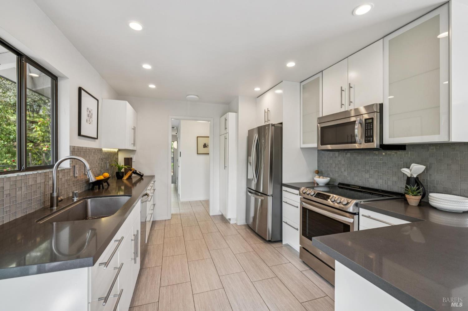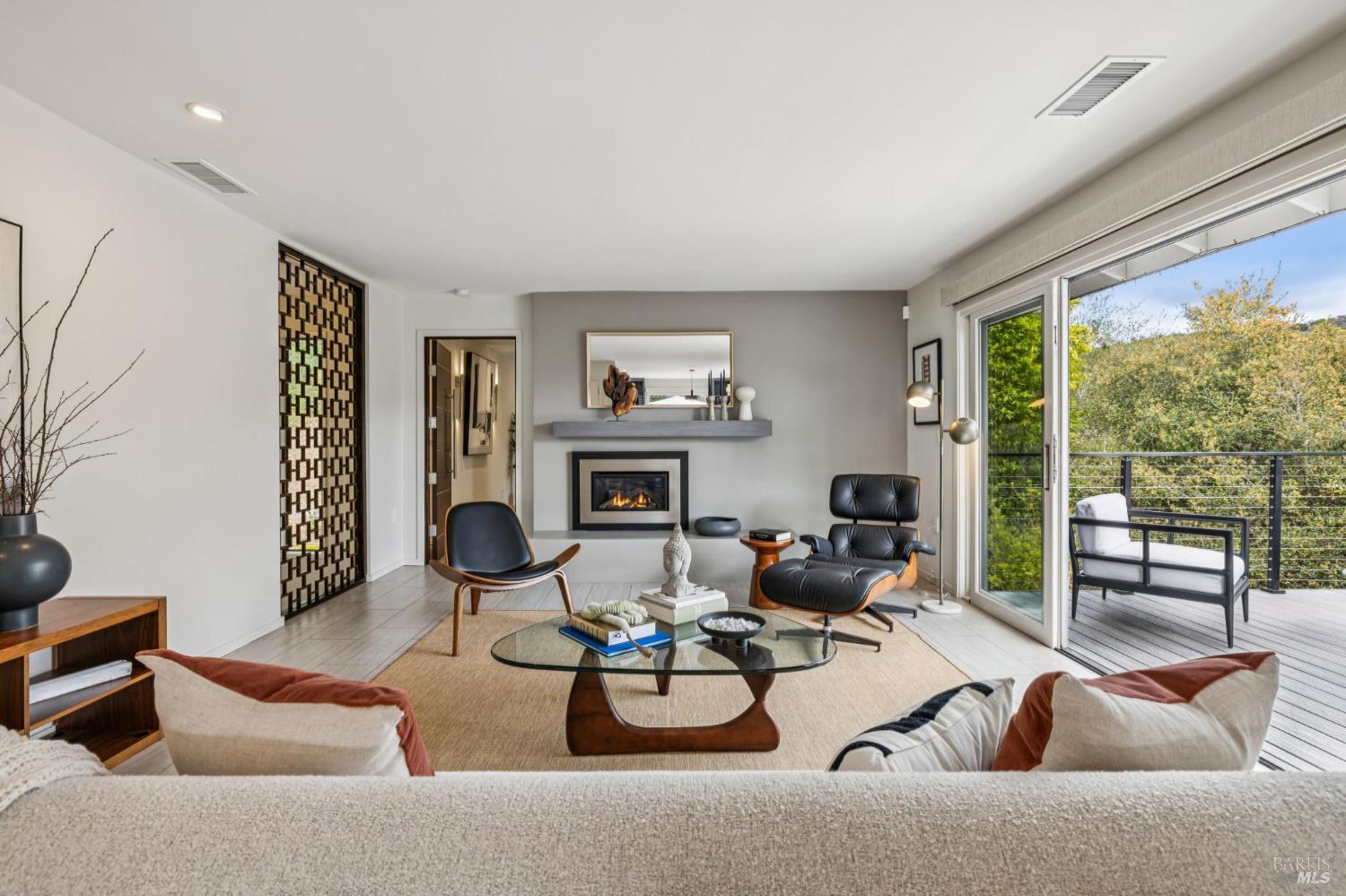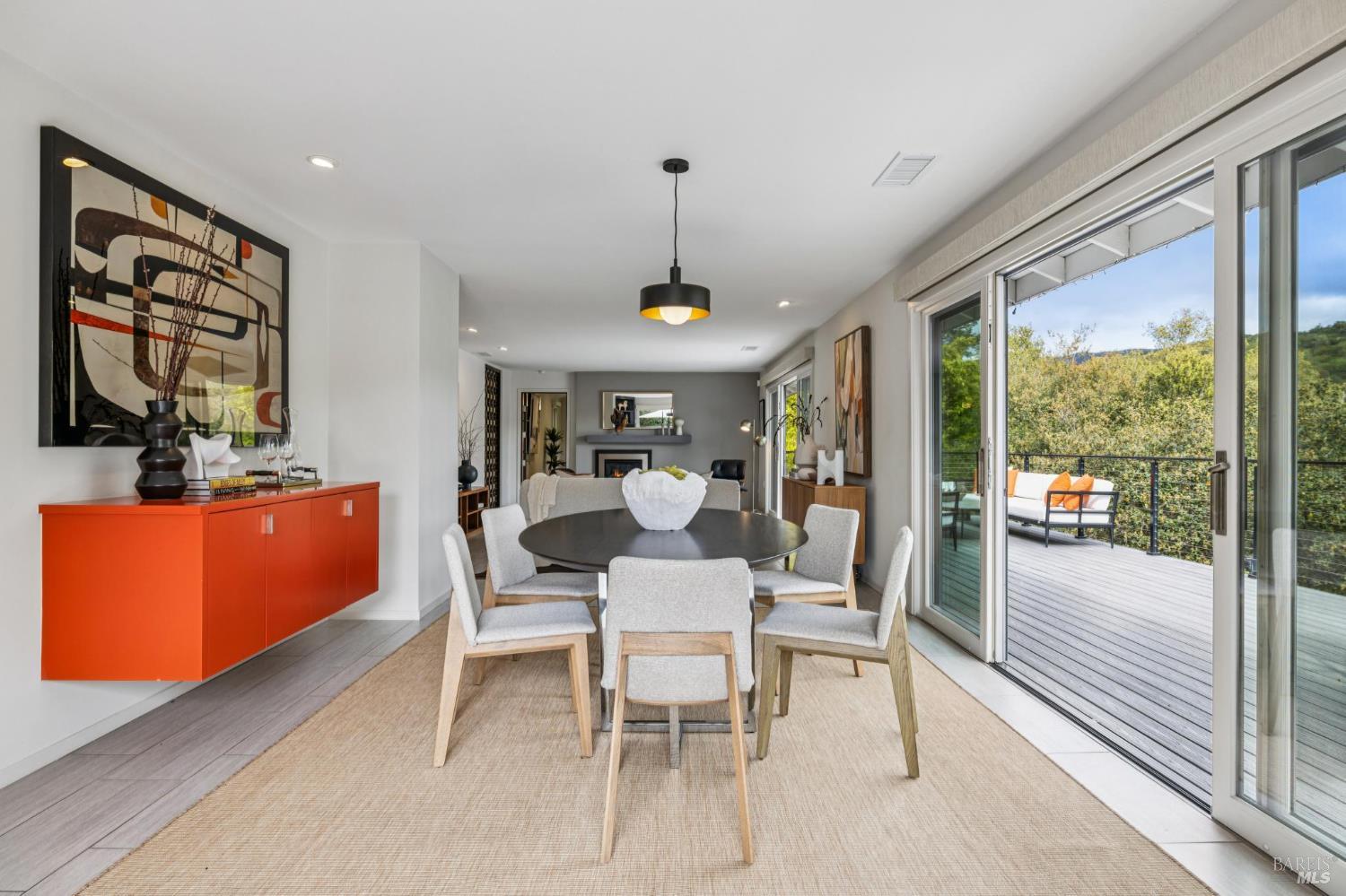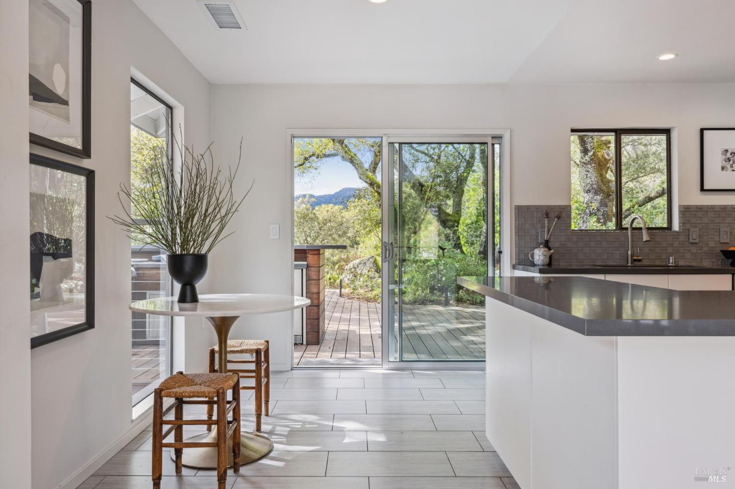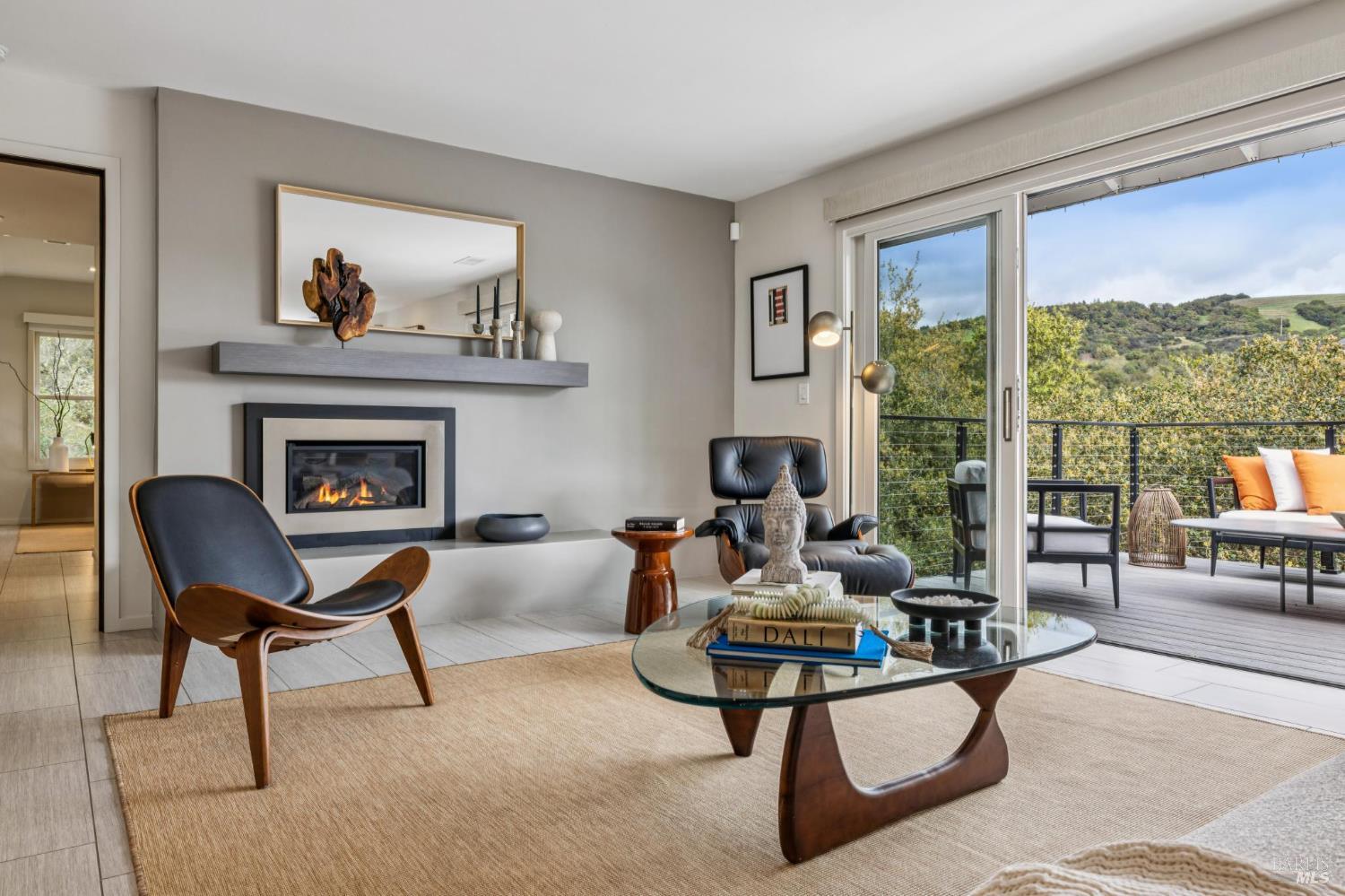 Flor d'Luna | Sonoma Valley. Private Oasis. 5-Star Resort Inspired. Stunning Views. Fabulous for Entertaining. Gracefully set on approximately 0.65 acres above Agua Caliente, Flor d'Luna is a serene Sonoma Valley retreat that balances architectural intention, natural beauty, and refined indoor-outdoor living just minutes from Glen Ellen, Kenwood, and Sonoma Plaza. Thoughtfully designed with a reverse floor plan, the home captures sweeping views and abundant natural light, with the great room positioned on the upper level and opening to two expansive view balconies, Light-filled and expansive, this space is ideally suited for both intimate gatherings and elegant entertaining, with sweeping outlooks that draw the surrounding landscape inward. The European-inspired kitchen is both sculptural and functional, appointed with quartz countertops, a designer tile backsplash, display shelving, and stainless steel appliances. A breakfast area flows naturally into the living space, reinforcing the home's effortless sense of connection and ease. The upper-level primary suite is privately positioned adjacent to the great room, while the home offers a total of four bedrooms and four and one-half baths, including two distinct primary suites - providing exceptional flexibility for guests or multigenerational living. The lower level reveals a private apartment-style suite complete with kitchenette, den, and fireplace - an inviting retreat ideal for extended stays, work-from-home needs, or hosting with discretion. Throughout the home, thoughtfully designated spaces encourage wellness, reflection, creativity, and quiet productivity. Outdoors, Flor d'Luna unfolds as a layered garden sanctuary. Multiple decks and patios invite seamless indoor-outdoor living, while winding pebble pathways pass beneath mature oaks and through lush, low-maintenance landscaping accented by tranquil sitting areas, and a contemplative labyrinth. A heated saltwater pool and spa with swim-in-place feature anchors the grounds, complemented by an outdoor kitchen and bar, outdoor shower, raised vegetable beds, greenhouse, and enchanting nighttime garden lighting. Private, composed, and richly livable, Flor d'Luna offers a rare opportunity to experience Sonoma living at its most serene, where design, nature, and lifestyle exist in quiet harmony, moments from world-class wineries, dining, and outdoor pursuits.