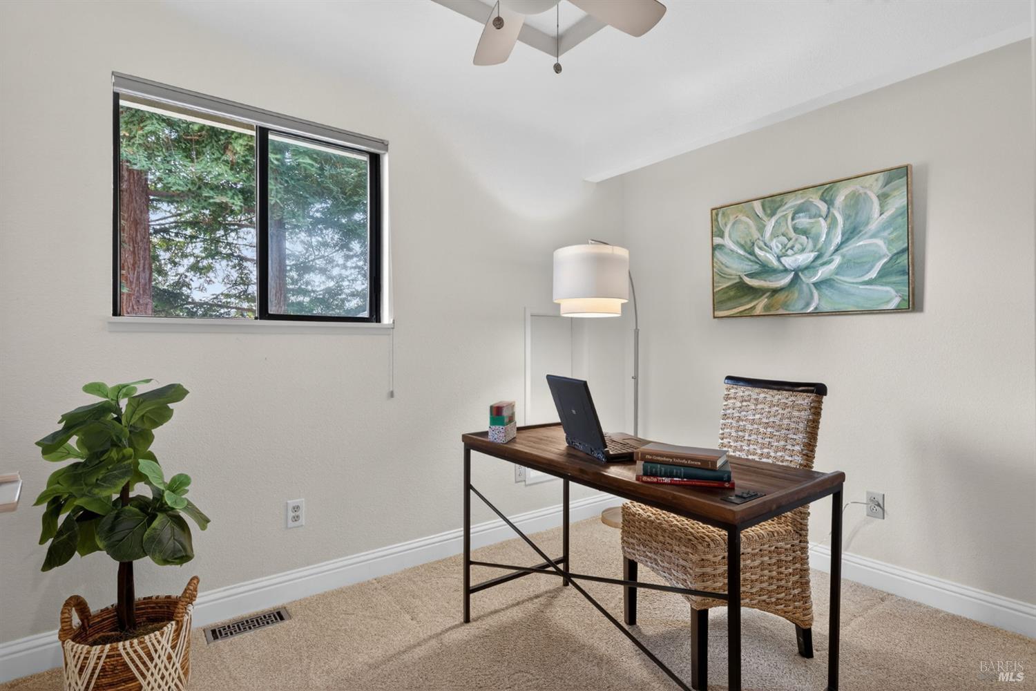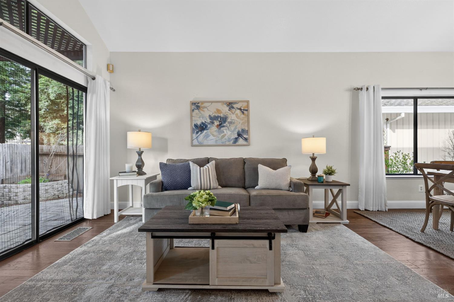 Come home to Chanterelle in Sonoma's coveted 55+ community where Wine Country living meets ease and elegance. This beautifully updated two-story home offers the rare convenience of a main-level primary suite with a remodeled bath, creating the ideal blend of comfort and accessibility. The remodeled kitchen features modern cabinetry, beautiful solid-surface counters and a gorgeous backsplash as well as a cozy breakfast nook, perfect for entertaining or quiet evenings at home. The open living and dining areas are light-filled and inviting, flowing effortlessly to a private patio complete with hot tub that backs to walking trails, the pool, and clubhouse just steps from your door. Upstairs, guest quarters or flex space provide room for visiting family, hobbies, or a home office. Thoughtful upgrades, a peaceful setting, and a move-in-ready condition make this residence a standout in one of Sonoma's most desirable active-adult enclaves. Enjoy low-maintenance living with community amenities, scenic trails, and close proximity to downtown Sonoma's shops, dining, and tasting rooms. Discover the lifestyle you've earned relaxed, refined, and distinctly Wine Country.Interested in this Listing?