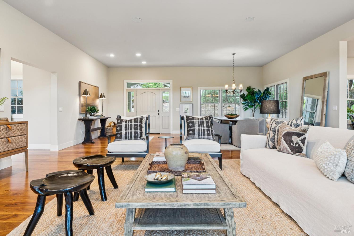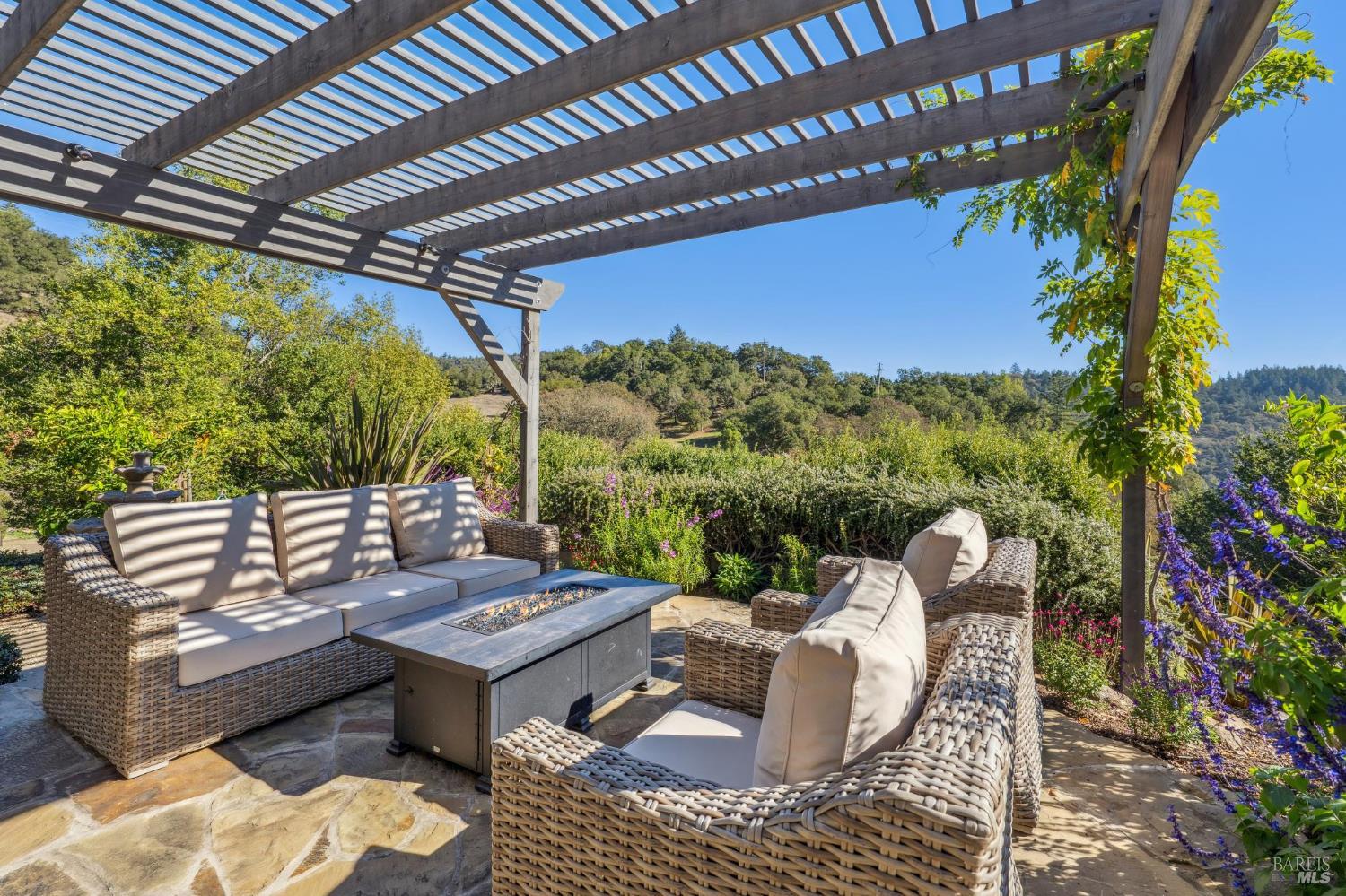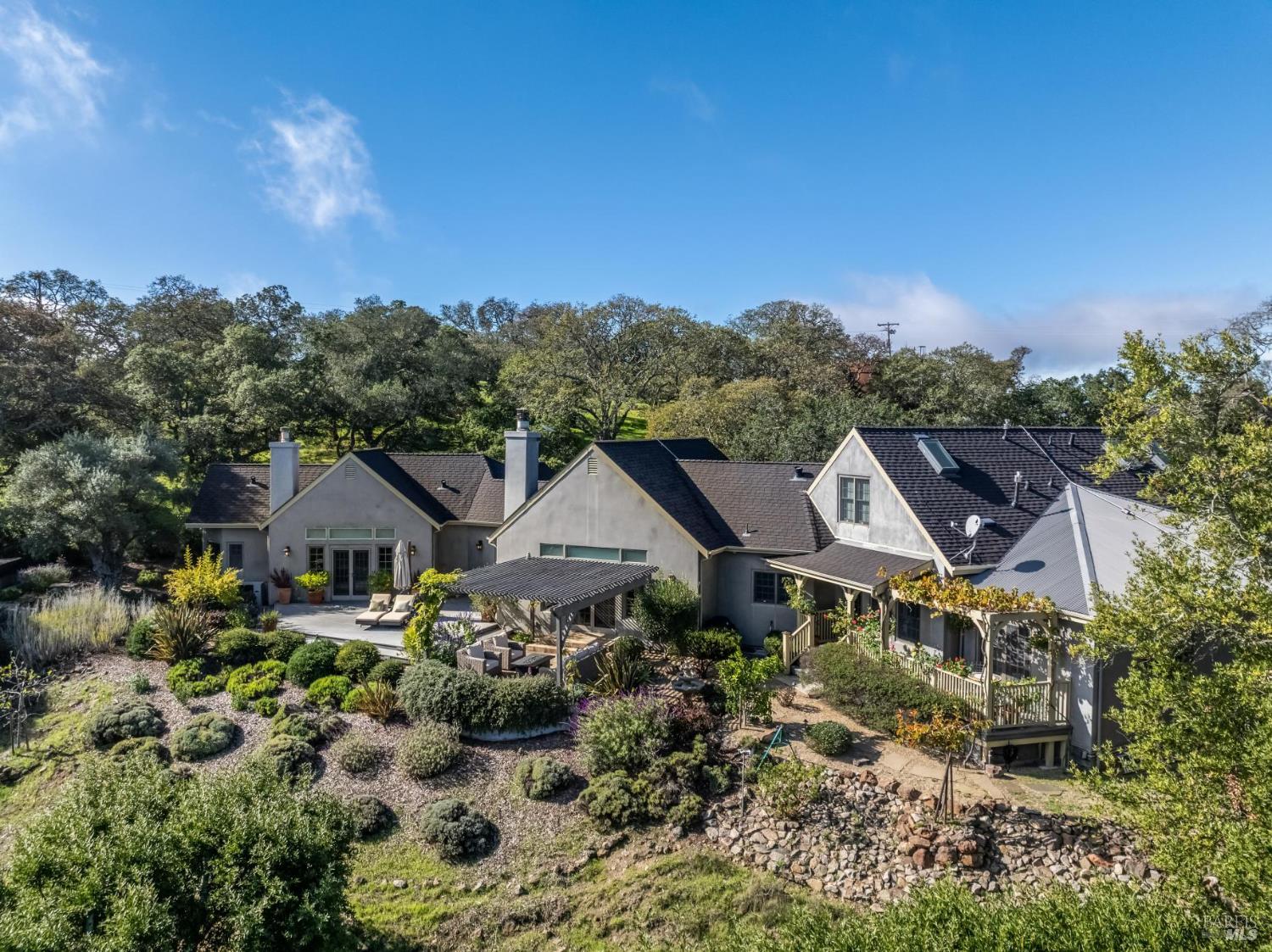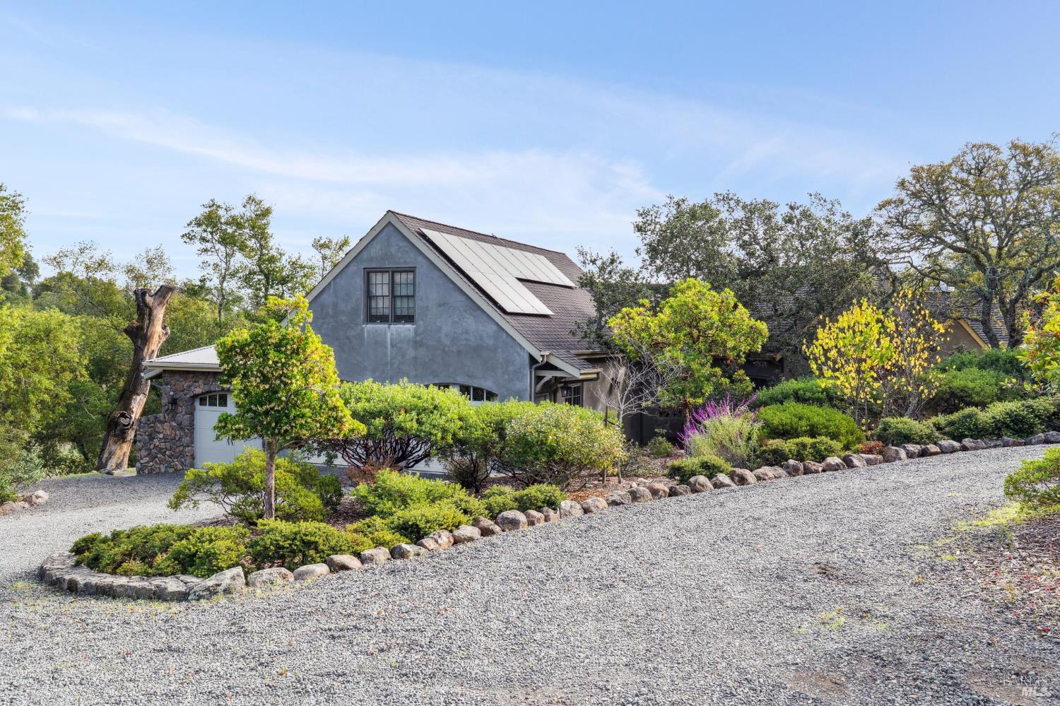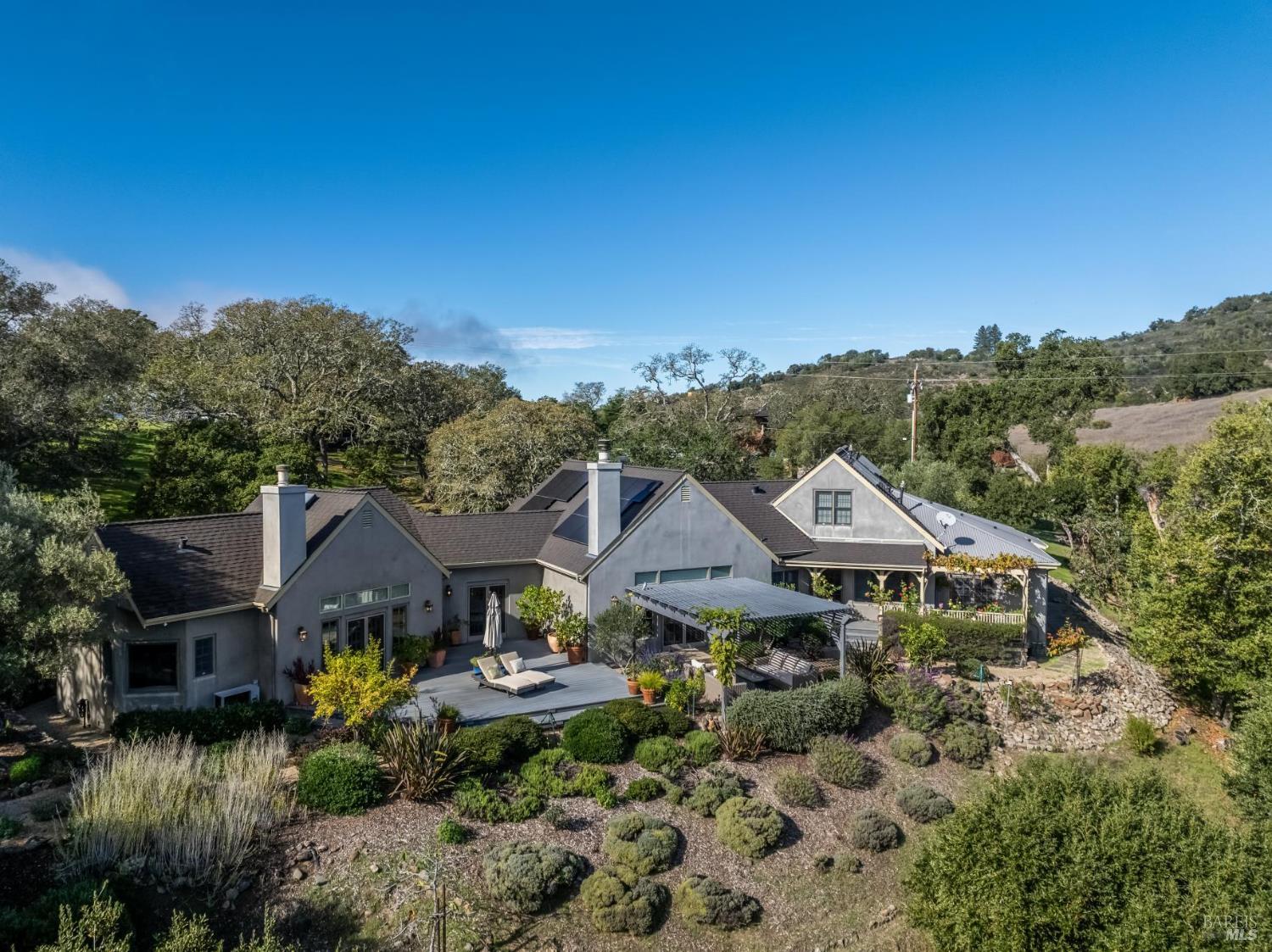 Set behind the gates of The Ranch, one of Sonoma's most coveted hillside enclaves, this single-level residence offers privacy, views, and effortless indoor-outdoor living. Located just five minutes from the gate, the property feels worlds away while remaining moments from the charm and culture of downtown Sonoma. Designed for both everyday comfort and refined entertaining, the home unfolds across a thoughtfully planned single-level layout, framed by expansive windows that capture serene vistas and natural light. The home's public and private spaces flow seamlessly to the outdoors, where gardens, terraces, and gently sloped topography provide room for a future pool or expanded outdoor amenities. Above the three-car garage, versatile finished space offers exceptional flexibility - ideal for a guest retreat, private office, studio, or fitness space - enhancing the home's livability without compromising the main residence's single-level ease. Adding to that ease and livability are a newer roof (2023), solar panels, a Tesla Powerwall, and an EV charger. Mature landscaping, rolling acreage, and thoughtful siting create a sense of seclusion, while the elevated setting delivers the quietude and exclusivity The Ranch is known for. A rare opportunity to enjoy gated hillside living just minutes from Sonoma Plaza.Interested in this Listing?