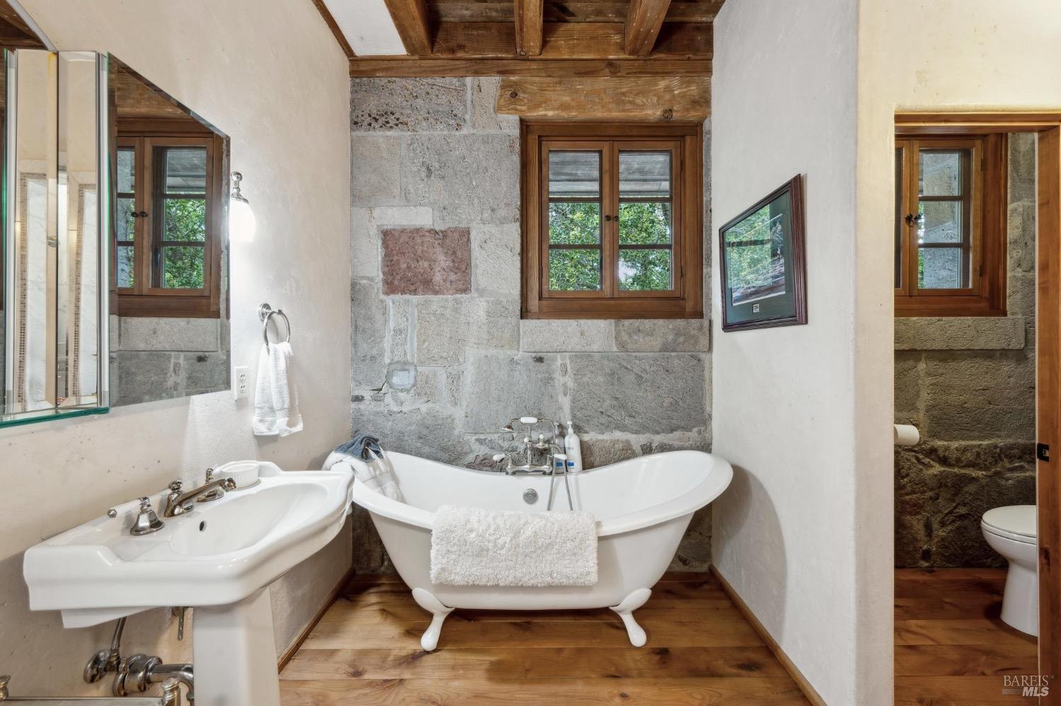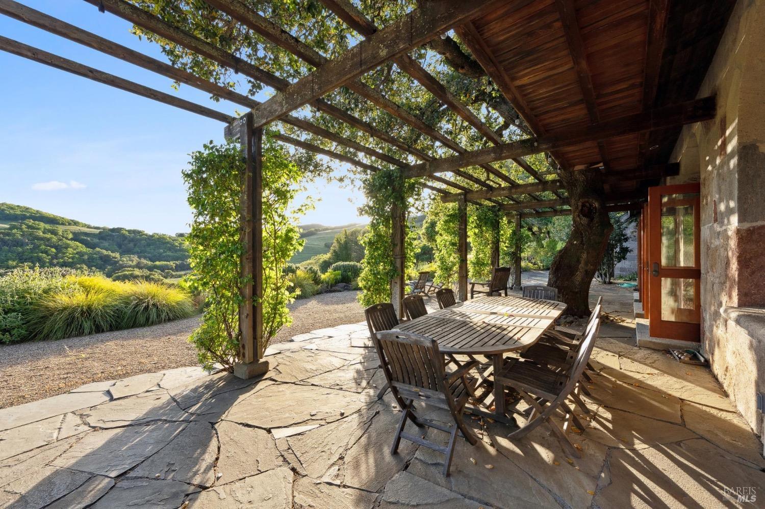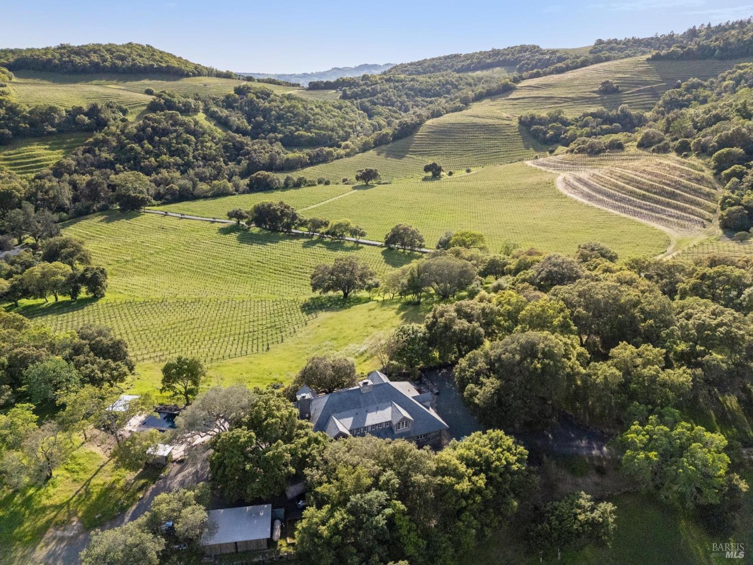 Once in a lifetime opportunity to be the next steward of one of Wine Country's finest estates. Complete privacy on nearly 200 acres of gently rolling hills w/award winning vines yet in a location that is just a bicycle ride to the historic Plaza. Picture perfect views in all directions w/rolling hillsides of terraced vines, towering Redwoods & majestic Oaks, and the SF skyline in the distance. The main residence, known as The Stone House, was handbuilt over a period of 3 decades by artisans from around the world & crafted w/hand chiseled stone sourced from the vineyards it overlooks. 4 en suite bedrooms, 22 foot high greatroom w/a series of French doors opening onto a wisteria graced trellis for dining al fresco. Enjoy sunshine by the oversized swimming pool & spa. Hike your own private wonderland & visit the multiple lakes & reservoirs. Invite the friends for a barn party or keep busy w/projects if you love to tinker. Bring your classic car or bike collection & enjoy a relaxing drive through the vines & out to the Coast. Your own resort is just 45 minutes north of the Golden Gate. Become a wine connoisseur & gift your friends some of your own wine or let a wine maker deal with it & just work on relaxing. Additional charming cottage overlooking lake for even more guests.Interested in this Listing?