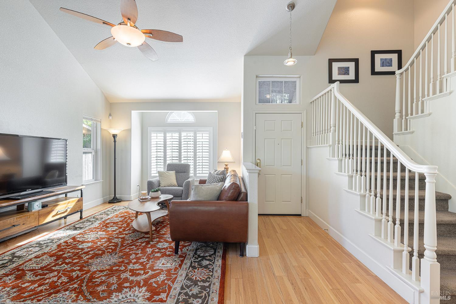 Be home for the Holidays! Beautifully and lovingly maintained 4 bedroom, 2.5 bath, two story home nestled in a desirable tree lined street in Sonoma. Step inside to find an open living space, featuring hardwood floors downstairs, cathedral ceilings, recessed lighting, a cozy fireplace, chef's kitchen, living and gathering rooms, a formal dining room, eat-in bar area and breakfast nook. Four bedrooms upstairs including the spacious primary suite with custom window shutters, ceiling fan, walk-in closet and a tiled shower. The other three bedrooms face east and have ceiling fans (there is AC), carpet and include custom shades. Laundry is located downstairs near the half bath powder room, next to the two car attached garage. Off the family room is a wonderful deck area to entertain and enjoy year round Sonoma living with room for tables, lounge chairs, umbrellas, and bbq. Green thumbs will love the garden areas (irrigated system) with low maintenance landscaping and trees that include Japanese Maples, a Redwood tree, Crepe Myrtles, Dogwoods and a Chinese Pistache. Room for a little dipping pool and or hot tub in this peaceful backyard sanctuary. Outdoor lighting lights up the front and back yards, making this home shine and stand out from the rest. (Home is not in a high fire zone.Interested in this Listing?