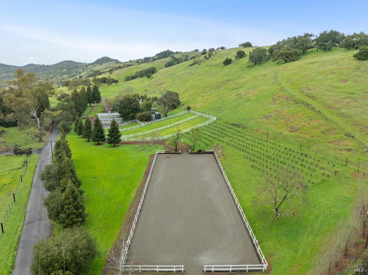 Stunning wine country estate proudly positioned on over 25 prime acres with gorgeous views. Main house features vaulted ceilings, rich hardwood flooring, an expansive living room with stone surround fireplace, chef's kitchen with high-end appliances and double French doors that lead to a wrap-around deck overlooking the swimming pool, spa and lovely pastoral grounds. The adjacent pool house offers additional living space, a kitchenette and bathroom. Interested in horses? This property offers a six-stall barn, paddocks and an outdoor arena. Hobby vineyard and owned solar.Interested in this Listing?