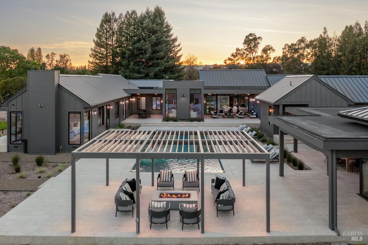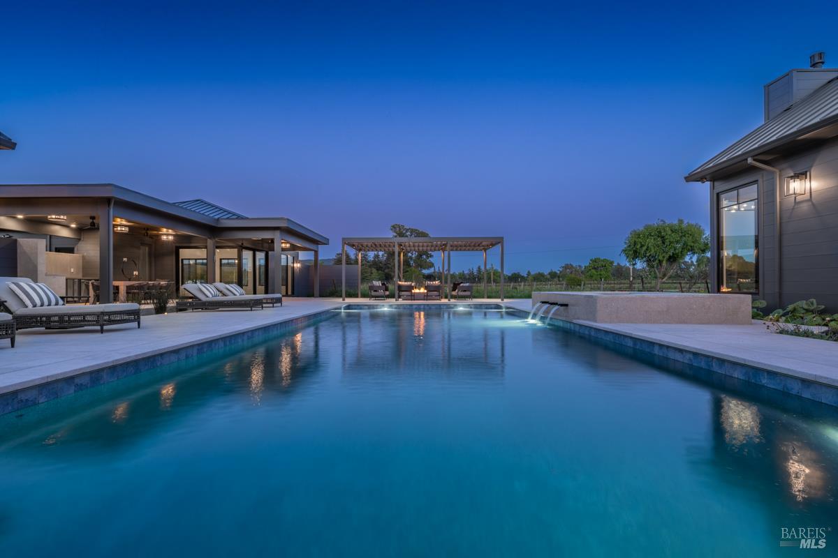 In the heart of Sonoma Valley, just minutes from the historic plaza and world-renowned vineyards, this exceptional 3.39-acre estate offers a rare blend of proximity, scale, and resort-caliber living. Framed by approximately 1.5 acres of vineyard, the property unfolds as a private sanctuarydesigned for both relaxed everyday living and sophisticated entertaining. The five-bedroom residence is thoughtfully curated with refined materials and modern comforts, including a grand living room anchored by a DaVinci Maestro fireplace, a media lounge with wet bar, dedicated office, and an impressive 860-bottle, temperature-controlled wine room. At the center of the home, a chef's kitchen features Calacatta marble countertops, white oak cabinetry, a butler's pantry, and top-tier appliancesseamlessly connecting to light-filled living spaces where floor-to-ceiling glass captures sweeping vineyard views. The primary suite opens to a private patio overlooking the vines, offering a quiet retreat immersed in the landscape. Designed for effortless indoor-outdoor living, the grounds rival a boutique resortcomplete with a pool and spa, pool house, outdoor kitchen with Hestan appliances, and a pergola-covered terrace with fire pit for evening gatherings under the Sonoma sky. Modern infrastructure complements the estate, including Tesla solar roof tiles with Powerwalls, a private well, reverse-osmosis filtration system, and integrated smart home and audio technology. With a seven-bedroom septic system and plans in place for a guesthouse, ADU, and sport court, the property offers a clear path to creating a true multi-structure Wine Country compoundjust moments from the best of Sonoma.Interested in this Listing?