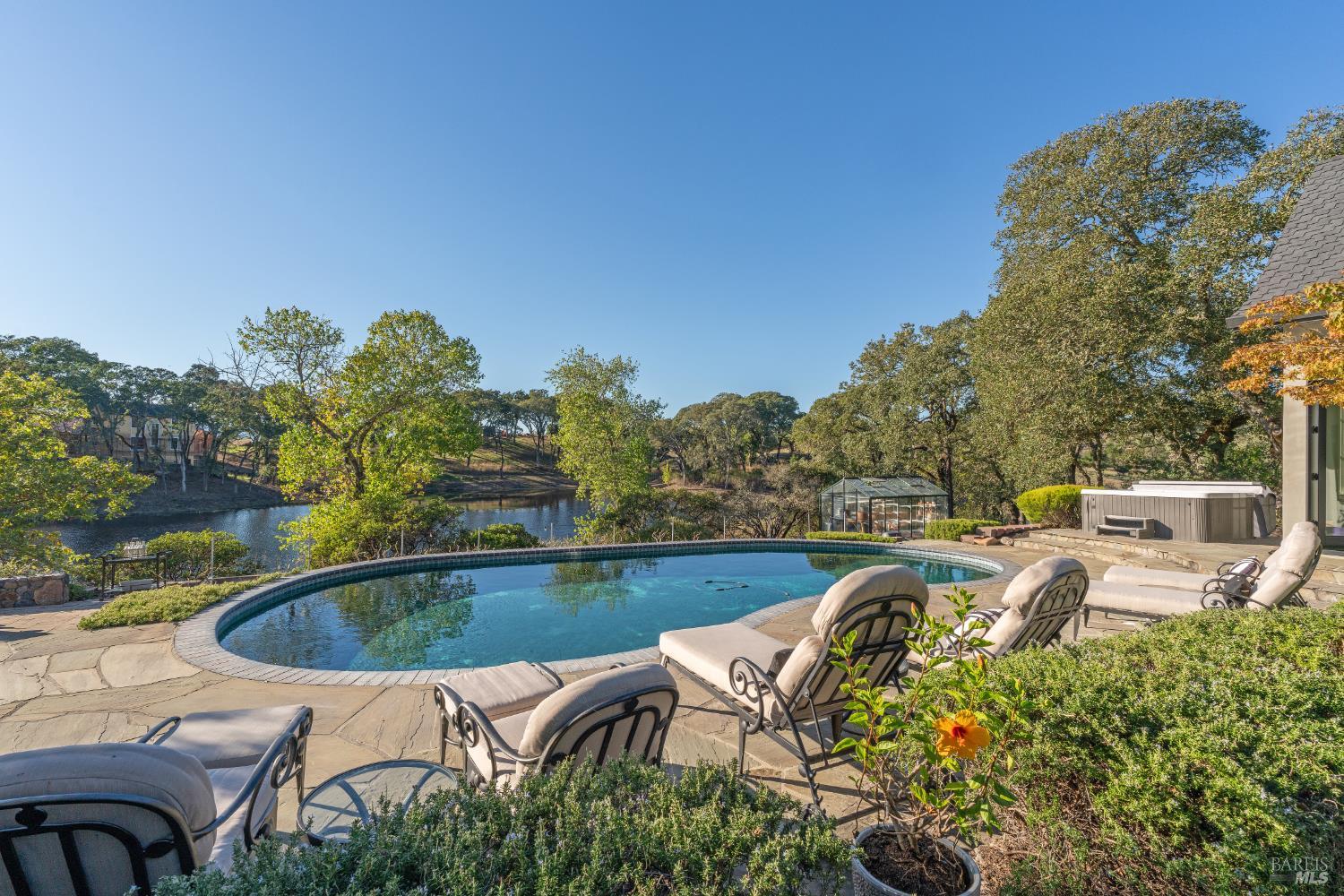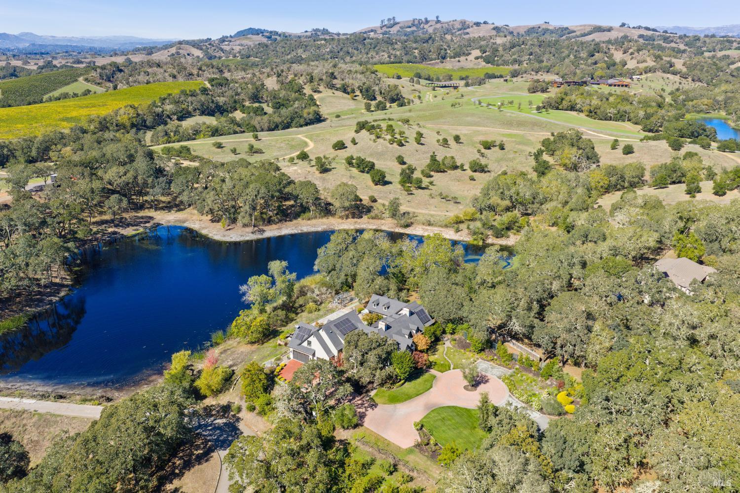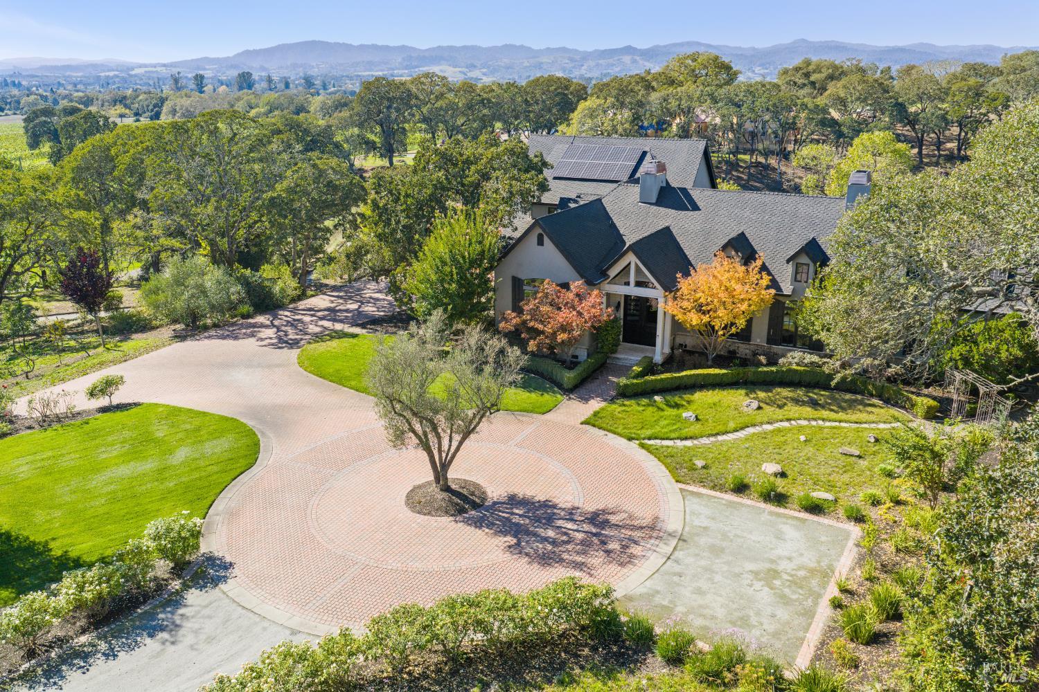 Behind gates and oriented to lake and vineyard vistas, this elegant estate pairs resort-style amenities with space to cultivate your own Wine Country lifestyle - think gardens, orchard, and room for animals - minutes from acclaimed wineries, dining, and luxury amenities. Inside, a chef's kitchen with large island and dual pantries opens to a vaulted dining room with fireplace. The living room's open-beam ceilings and dramatic fireplace frame wall - length accordion doors that blend indoors and out. Down a spiral stair, a wine cellar adds true Wine Country character. On the main floor, the primary wing offers a suite with fireplace, walk-in closet room, steam shower, soaking tub, plus a sunroom ideal as a gym or studio stepping out to the pool and hot tub. A main-floor office with full bath adds flexibility. Upstairs, two ensuite bedrooms take in hillside and vineyard views. Outdoors, enjoy a built-in BBQ kitchen, covered dining patio, bocce court, pool, hot tub, raised garden beds, and substantial orchard. Equestrian amenities include run-in shed, pasture, tack room with electricity and water, and access to nearby riding trails. Roughly 1hr from the Golden Gate, & 10min to Healdsburg square & the airport, your private Wine Country retreat offers every comfort close at hand.Interested in this Listing?