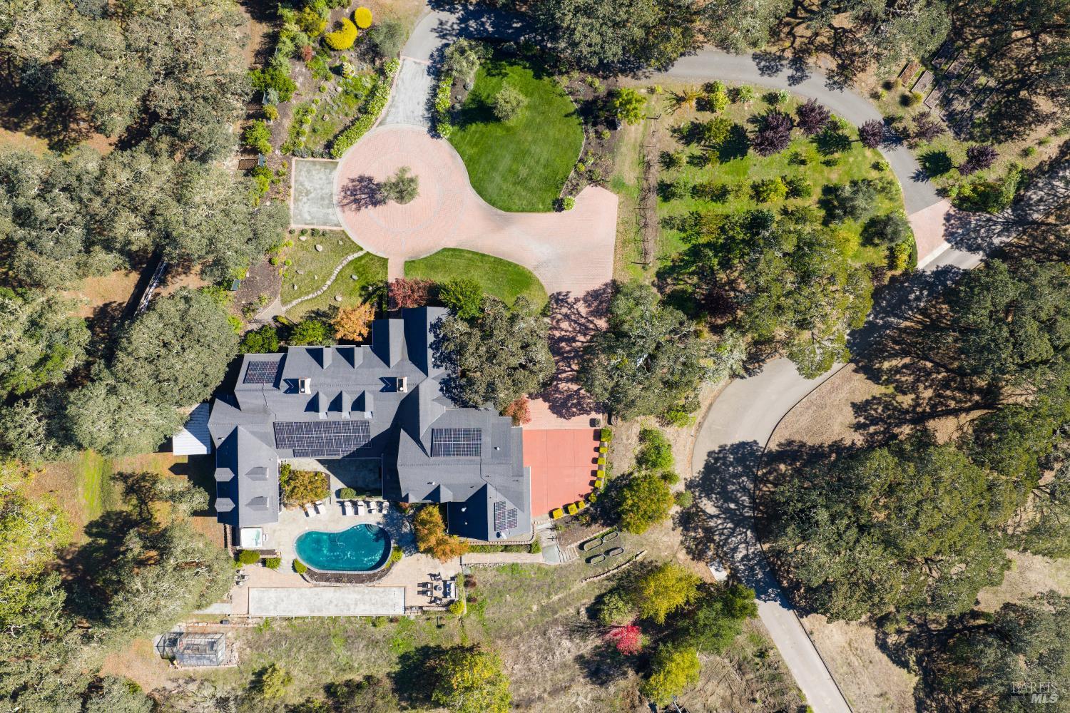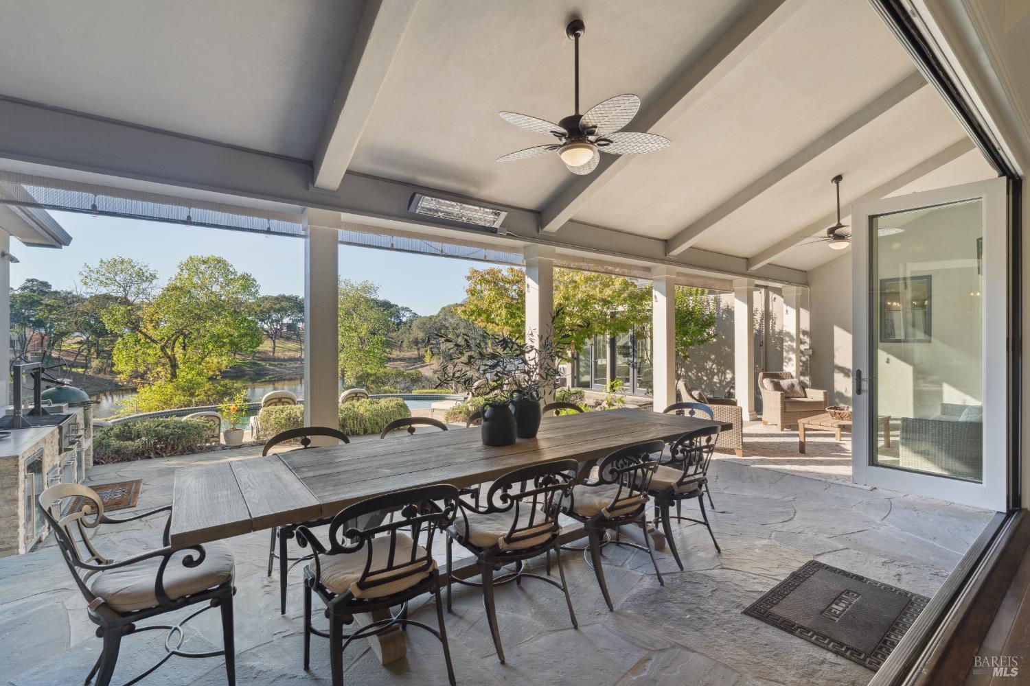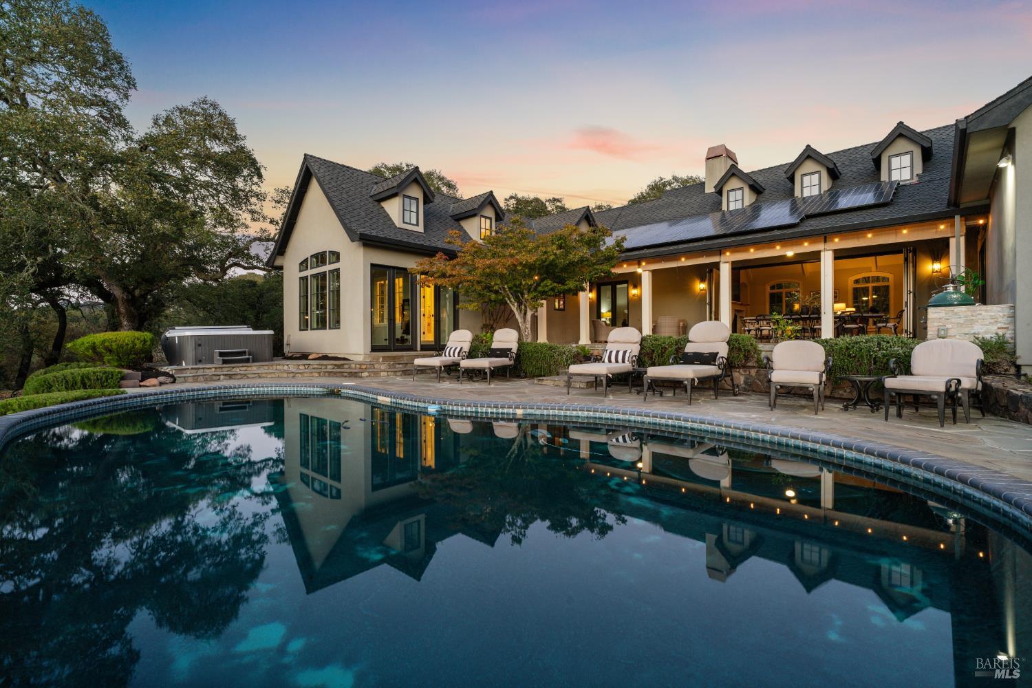 Behind gates and oriented to lake and vineyard vistas, this elegant estate pairs resort-style amenities with space to cultivate your own Wine Country lifestyle - think gardens, orchard, and room for animals - minutes from acclaimed wineries, dining, and luxury amenities. Inside, a chef's kitchen with large island and dual pantries opens to a vaulted dining room with fireplace. The living room's open-beam ceilings and dramatic fireplace frame wall - length accordion doors that blend indoors and out. Down a spiral stair, a wine cellar adds true Wine Country character. On the main floor, the primary wing offers a suite with fireplace, walk-in closet room, steam shower, soaking tub, plus a sunroom ideal as a gym or studio stepping out to the pool and hot tub. A main-floor office with full bath adds flexibility. Upstairs, two ensuite bedrooms take in hillside and vineyard views. Outdoors, enjoy a built-in BBQ kitchen, covered dining patio, bocce court, pool, hot tub, raised garden beds, and substantial orchard. Equestrian amenities include run-in shed, pasture, tack room with electricity and water, and access to nearby riding trails. Roughly 1hr from the Golden Gate, & 10min to Healdsburg square & the airport, your private Wine Country retreat offers every comfort close at hand.Interested in this Listing?