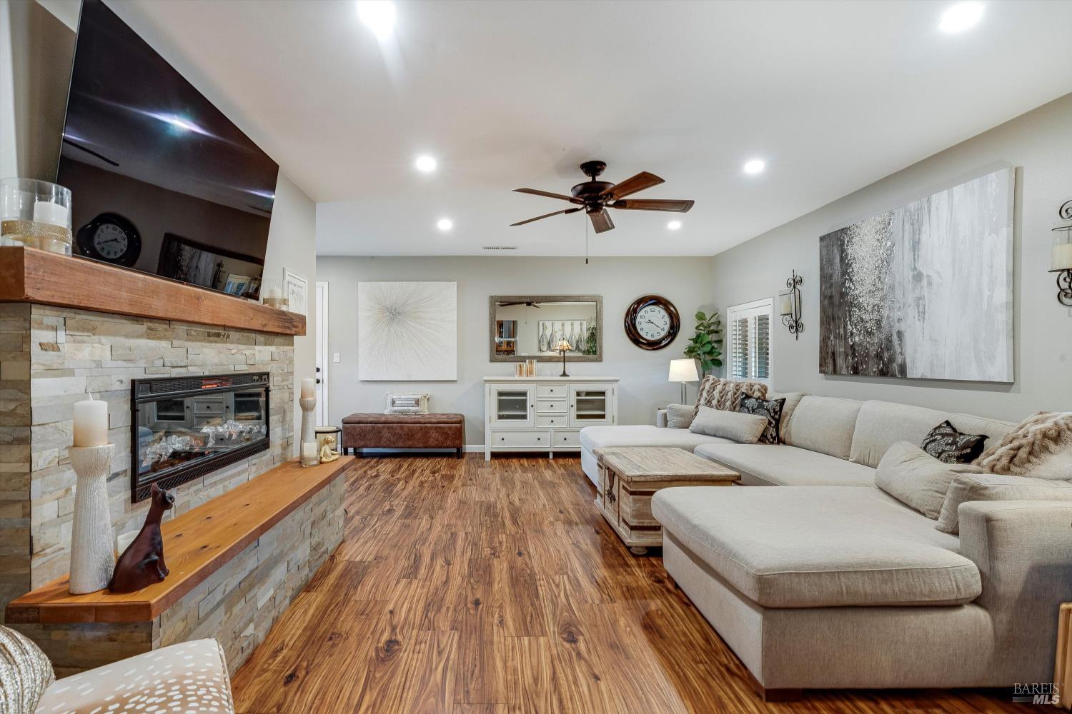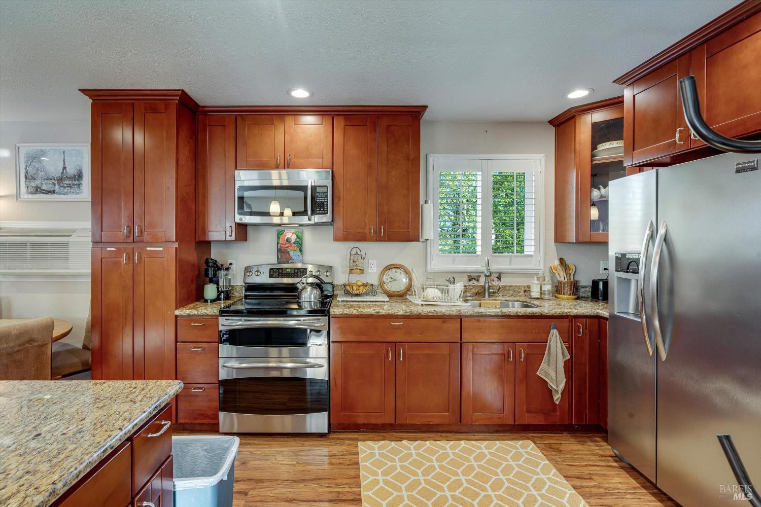 Beautifully remodeled 3 bedroom 2 bath home at end of private lane in Windsor. 1 bedroom ADU above garage with private entrance and views. 2 bedroom detached unit at back of property. Total 6 bedrooms 4 baths on .65 acres. Above ground pool with deck and play yard for the little ones, chicken coup, fenced doggie play yard, outdoor fire pit, raised garden beds and covered patio with outdoor kitchen and lighting. Family compound or income potential. Walk to downtown Windsor and take the smart train to the city. Olive, fig, lemons, oranges and plum trees produce wonderful fruit. Welcome Home!Interested in this Listing?