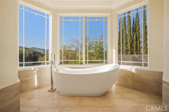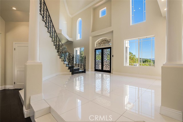Discover this exquisite 5-bedroom, 4-bath home nestled on a private acre within the prestigious guard-gated community of Bell Canyon. Designed for luxury and comfort, this residence offers a bright, airy atmosphere with walls of glass that showcase breathtaking views of Bell Canyon and the San Fernando Valley. Step through the dramatic double iron doors into a striking two-story foyer. The elegant living room features stunning white porcelain floors, a cozy fireplace, and a stylish bar perfect for entertaining. The state-of-the-art kitchen is a chef s dream, equipped with Viking appliances including a six-burner oven, a center island with a prep sink, and a spacious breakfast area. It seamlessly opens to a generous family room with dark wood floors, soaring ceilings, and walls of glass that lead to a balcony, creating an ideal space for family gatherings and entertaining. A downstairs bedroom ensuite offers convenience and privacy Upstairs, the enormous primary suite offers a private retreat with a sitting area, fireplace, private viewing veranda, and a luxurious bathroom featuring a soaking tub, double sinks, and a rain shower. The generous sized Secondary bedrooms are adorned with crown molding, rich wood floors, and mirrored wardrobes. You will also find a second family/Bonus room with vaulted ceilings, a fireplace, and sliding glass doors opens to another balcony, providing additional space for relaxation. Outside, you ll find the privately gated grounds offer a large grassy yard with endless possibilities perfect for a pool, ADU, horses, sports court, or other outdoor amenities. Entertain guests on the partially covered stone patio which opens directly off the kitchen family room area providing the perfect place to entertain and enjoy the serene views found throughout. Community amenities enhance the lifestyle, featuring 24-hour security, a residents-only park, a gym, miles of trails for hiking and horseback riding, an equestrian center, tennis courts, organized children s events, a clubhouse, and access to the highly acclaimed Las Virgenes school district.Interested in this Listing?