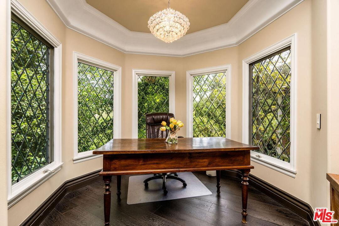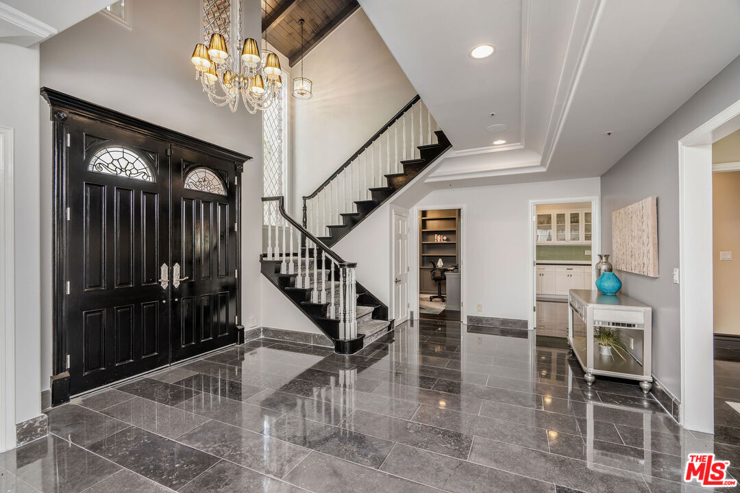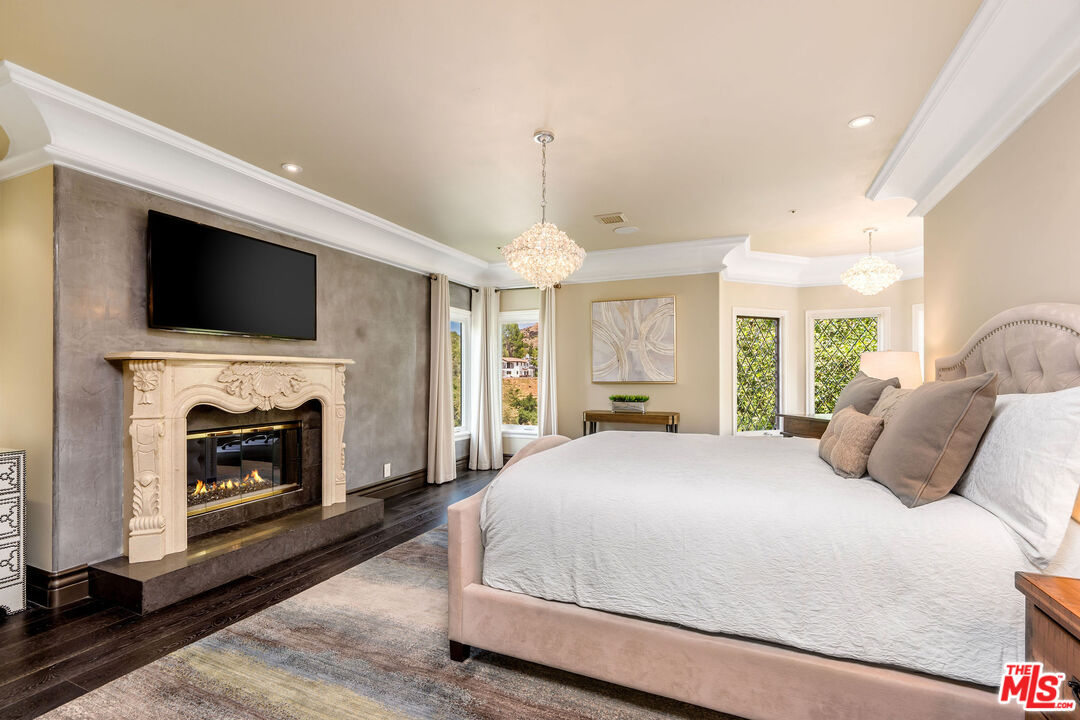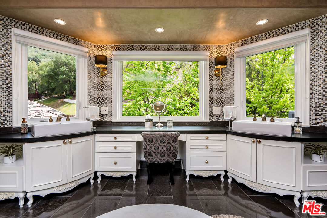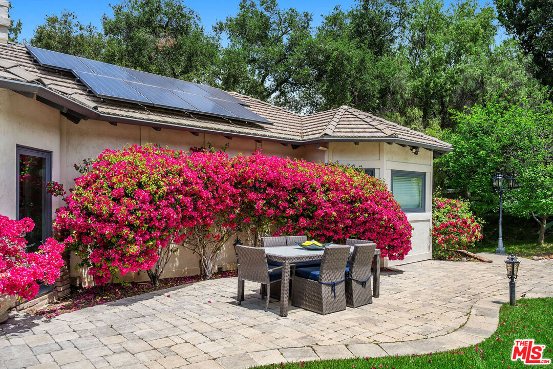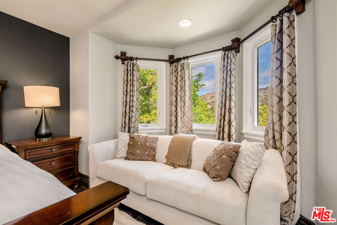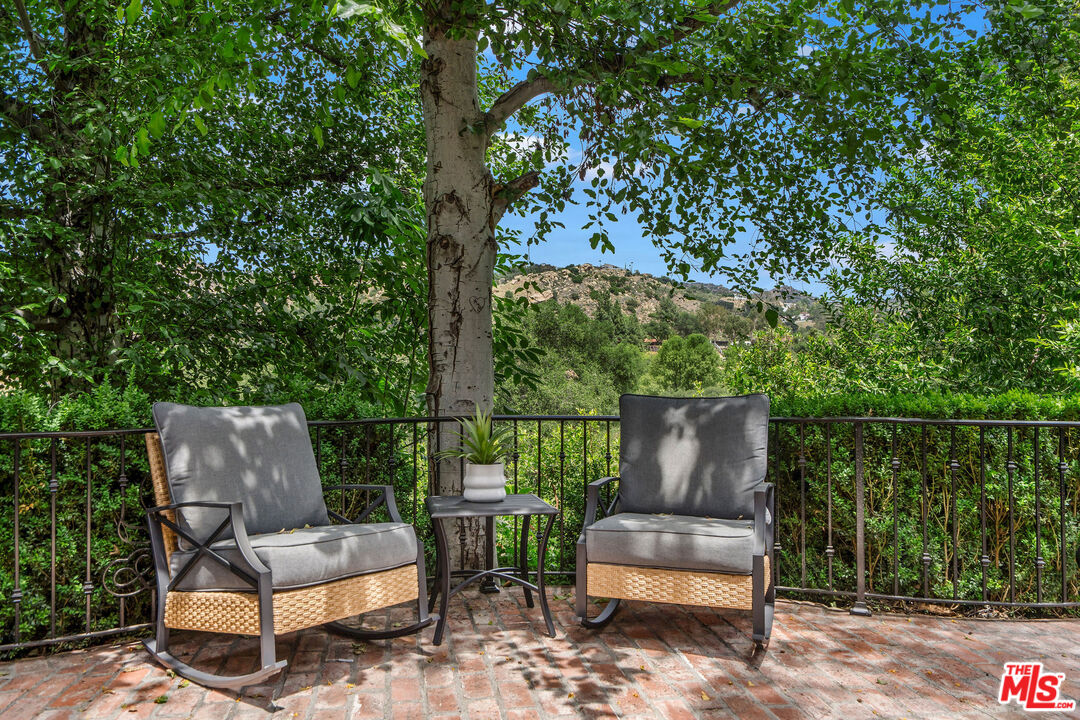 Step into storybook elegance at this one-of-a-kind estate where natural beauty, privacy, and thoughtful design create a magical living experience. Surrounded by rolling hills and filled with natural light, this home offers refined living spaces, luxurious details, and unforgettable outdoor amenities. Up a privately gated drive, a cobbled walkway leads to the grand brick faade and formal double-door entry, opening to limestone floors, soaring ceilings, and elegant architectural details throughout. The spacious living room features a fireplace and charming seating nook with lattice glass windows, while the formal dining room is flanked by floor-to-ceiling windows and connected to a butler's pantry for seamless entertaining. The chef's kitchen is a true centerpiece, with views of the beautiful backyard, a large honed black granite island, top-of-the-line appliances, built-in breakfast banquette and ample storage. It flows effortlessly into the family room with custom built-ins, fireplace, and sliding doors to the patio for alfresco dining. The main level also includes an elegant private office with decorative ceiling accents and built-ins, a guest room adjacent to a bathroom and laundry room, a powder room and a full game room with built-in bar, wine coolers, and entertainment center that opens to the yard. Upstairs, the luxurious primary retreat is a sanctuary all its ownfeaturing panoramic views, a fireplace, dual custom walk-in closets. and a light filled turret. The primary bath boasts a balcony, large soaking tub surrounded by views, a separate shower and dual vanities as well as a makeup counter. Two additional spacious en-suite bedrooms with large closets complete the second floor. Step outside to a private resort setting: an infinity-edge saltwater pool with waterfall and custom-built slide and spa, a full outdoor kitchen with BBQ and pizza oven, and a covered pavilion for year-round entertaining. A charming, custom-built treehouse adds whimsy, while an upper-level pad offers potential for future development. The detached guest house with bi-fold doors faces out over the stunning pool and includes a full kitchen with high-end appliances, living/work/dining area, bedroom, bath, laundry room, and private sitting areaideal for guests, extended family, or creative use. Additional highlights: oversized 3-car garage with storage room, solar panels, multiple-zone HVAC, exquisite lighting fixtures throughout, and Bell Canyon's renowned community amenitiesan equestrian center, clubhouse, gym, tennis/pickleball courts, and numerous annual events for all ages. The property is also situated within the award-winning Las Virgenes School District.Interested in this Listing?