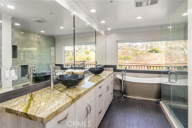 PRICE improvement WOW!***Breathtaking SINGLE story with Mountain Views*** Nestled within the exclusive equestrian gated community of Bell Canyon, this exquisite single-story view home offers four bedrooms and four bathrooms. Newly renovated, it showcases stunning craftsmanship and a timeless, warm elegance. With 4,178 sq ft of living space, the home features soaring ceilings, crystal chandeliers, expansive windows in the private living room, a formal dining room, and a chef s kitchen with Bosch appliances and an in-kitchen dining area. The family room boasts a fossil granite fireplace and an entertainer s bar, complete with a built-in wine refrigerator that holds over 200 bottles. Additional highlights include a newer roof, LED lighting, two A/C units, a 400-amp electric panel, a whole-house air filter, a water purification system, interior sprinkler system w/alarm, night owl camera system, hardwood flooring, pella sliding doors, and fully updated bathrooms with new cabinets, counters, baths, and showers too many upgrades to mention, (agent has a list) The approximately 3,000 sq ft deck and patio area offers complete privacy, providing the perfect space to embrace the quintessential California lifestyle and outdoor entertainment. The property also features a spacious three-car garage, over 10 fruit trees, a chicken coop, a kennel with a predator-proof enclosure, newer backyard fencing, and breathtaking mountain views.Interested in this Listing?