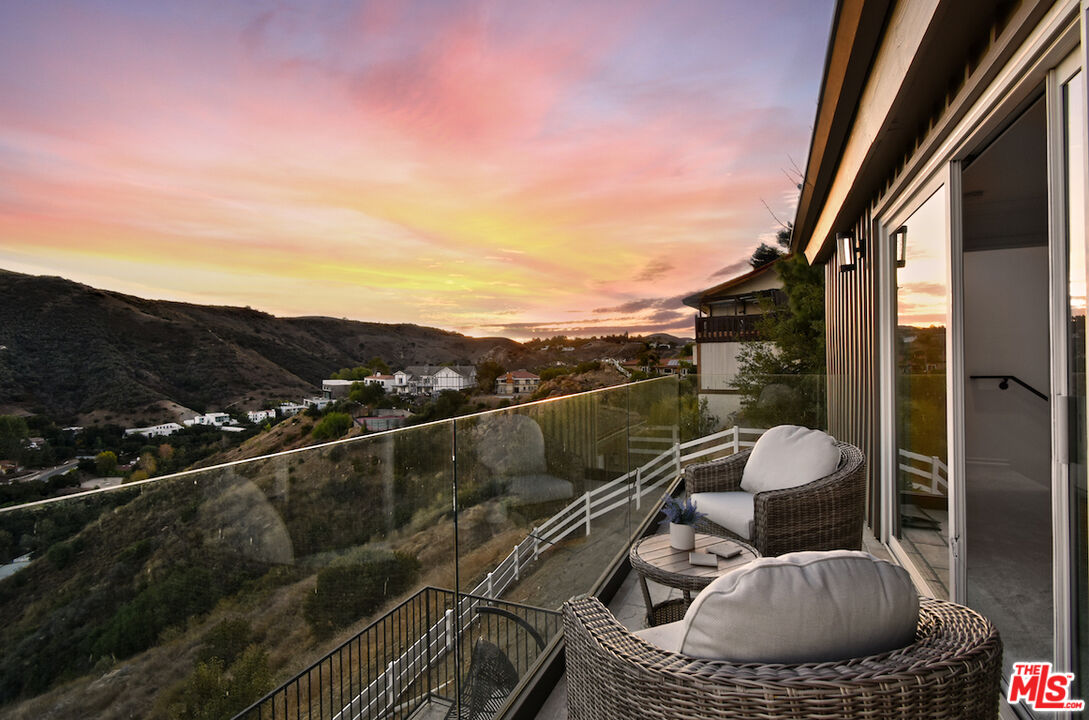 VIEW VIEW VIEW! SELLER MAY CONSIDER A CREDIT TO BUYER TO USE ON MORTGAGE RATE BUY DOWN. Set in the prestigious gated community of Bell Canyon is this fully remodeled Traditional home is perched atop a 1.38-acre promontory, offering stunning canyon views from nearly every room. Every detail of this residence has been thoughtfully remodeled, blending timeless charm with modern luxury for a truly turnkey living experience. The open floor plan is perfect for both entertaining and everyday living. The expansive living room, with glass walls, opens to a private terrace where you can take in Bell Canyon's tranquil evenings. Adjacent is the family room, complete with a wet bar, flowing into a chef's kitchen. This fully remodeled space includes custom new cabinets, a water filtration system, and an expansive breakfast nook. The formal dining room, framed by sunset views, offers a versatile setting for casual or formal gatherings. Key Upgrades Include: * New Roof, Gas Line, Plumbing, & Electrical Systems (new electric panel). * New Garage Doors, epoxied floors & approved plans for a 768 Sq.Ft. ADU above the garage * Converted one garage space into a fully functional office. * New Glass Railing on the primary bedroom balcony and a remodeled primary bath with steam shower, custom tiles, heated marble floors, heated towel bar, Toto toilets, Rohl plumbing fixtures, and luxurious finishes. * Completely remodeled Guest bedroom bath and powder room. * New Paint, Drywall, and Exterior Wood/Stonework, along with freshly laid turf, slabs, and rock detailing for a polished exterior. * Renovated saltwater Pool & spa w/new equipment offers a serene outdoor escape. * 5 to 6 parking spaces in the driveway. The home's layout includes three downstairs bedrooms, two with direct patio access, and an upstairs primary suite with private viewing deck, custom-built closets, and a spa-like bathroom. Custom cabinetry throughout enhances functionality. Outdoor living includes covered patio & multiple terraces, surrounded by lush landscaping. The home also features a tankless water heater & whole-house water system for efficiency This property is a rare opportunity to own a meticulously updated home with modern amenities in a secure, private setting. Bell Canyon offers 24-hour gated entry, equestrian center, tennis courts, a fitness center, and year-round community events. Served by the award-winning Las Virgenes School District.Interested in this Listing?