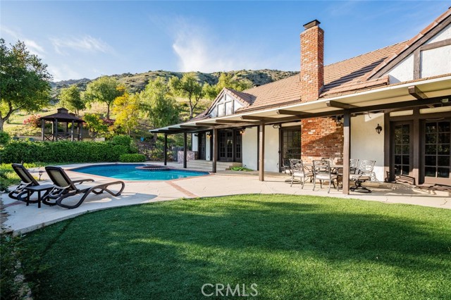 Welcome to 47 Coolwater Road, an exquisite estate nestled in the prestigious guard-gated community of Bell Canyon. This stately traditional home seamlessly blends timeless design with modern updates, offering a luxurious lifestyle on a sprawling 1.88-acre lot. Boasting 4 spacious bedrooms and 4 bathrooms within approximately 3,747 square feet, this residence is perfect for both entertaining and relaxing. The grand formal living and dining areas feature vaulted beamed ceilings, leaded glass windows, and a stunning brick fireplace, creating an inviting ambiance. The updated granite kitchen with stainless appliances serves as the heart of the home, while the paneled family room, complete with vaulted ceilings, parquet flooring, and a full-size sit-down bar, is ideal for gatherings. A private guest suite with its own entry provides additional space ~527 square feet including two rooms and a bathroom, perfect for visitors or a home office. Upstairs, you'll find generous secondary bedrooms and a luxurious master suite with serene views and an updated bathroom retreat. Step outside to enjoy beautifully mature landscaping, a sparkling pool and spa, and a spacious patio area perfect for outdoor entertaining. The grounds also include a charming fruit orchard and a 2-stall barn with a horse area, making it ideal for equestrian enthusiasts. Community amenities enhance the lifestyle, featuring 24-hour security, a residents-only park, a gym, miles of trails for hiking and horseback riding, an equestrian center, tennis courts, organized children s events, a clubhouse, and access to the highly acclaimed Las Virgenes school district. Experience the perfect blend of timeless elegance and modern comfort at this exceptional Bell Canyon estate. Assessor square footage is listed at 3,747sf, but is not believed to include the guest suite which has a 3rd party measured square footage of 527sf.Interested in this Listing?