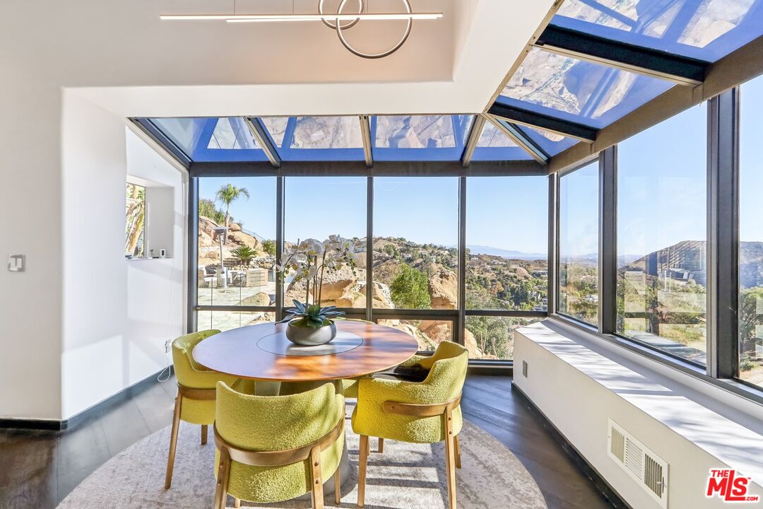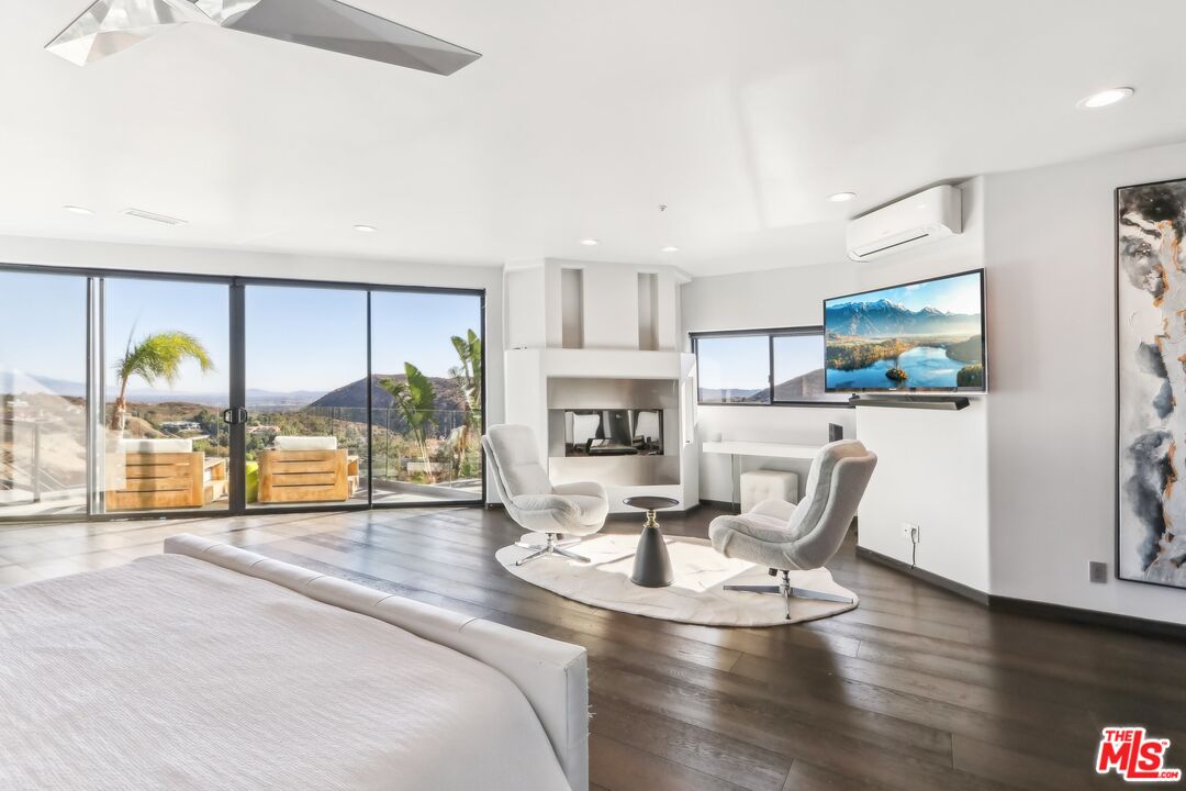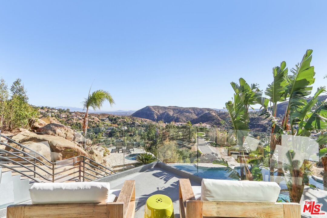 This rare, custom-designed modern 5-bedroom estate in prestigious Bell Canyon offers unmatched luxury, privacy, and breathtaking views of city lights, sunsets, and panoramic mountains. Perched high above a cul-de-sac street and remodeled in 2020, the home is accessed via a discreet private driveway. It features a seamless open floor plan, a state-of-the-art custom Italian kitchen with Miele appliances, and an expansive great room with vanishing glass doors that open to an infinity pool and stunning vistas.The grand primary suite occupies its own wing. Beyond the double doors, you'll find a fireplace, interior and exterior sitting areas, and dual walk-in closets. The spa-like bathroom is a highlight, featuring a luxurious steam shower, a Toto toilet, a striking oval freestanding tub surrounded by mirrored tiles, and a double sink vanity with discreetly hidden cabinetry for storage.On the opposite side of the home, two guest bedrooms share a large balcony with spectacular views. The second floor also includes a spacious bathroom and a convenient laundry room. The lowest level features a guest bedroom and bathroom adjacent to a three-car garage, which offers abundant storage and an EV charger.The home boasts smart features, including a Lutron lighting system, automated window treatments, a unique heat extraction system, gas-lined outdoor heaters and fire pit, and remote controls for the pool and spa. The expansive grounds provide space for an ADU, sports court, vegetable garden, and numerous fruit trees, making this property as functional as it is enchanting.Wake up to stunning sunrises over your infinity pool and relax each evening with sunsets and panoramic views, all while enjoying a cocktail al fresco from the comfort of your home. Situated uniquely within the community, this property offers exceptional seclusion and limitless possibilities.Bell Canyon amenities include a guard gated entry, fitness center, equestrian facilities, tennis courts, hiking trails and a PRIVATE FIRE DEPARTMENT EXCLUSIVELY FOR THE COMMUNITY. Offered furnished, this once-in-a-lifetime opportunity to own a true California dream home has no substitute.Interested in this Listing?