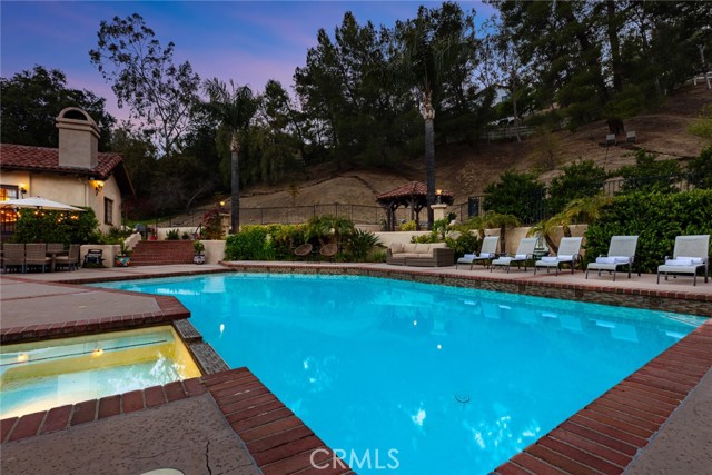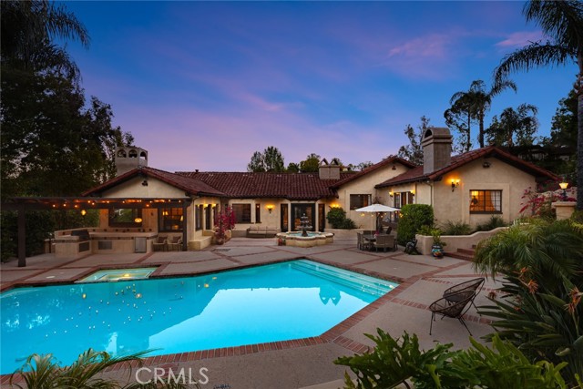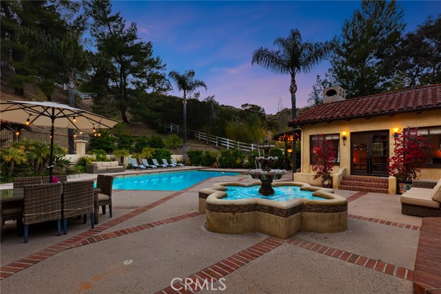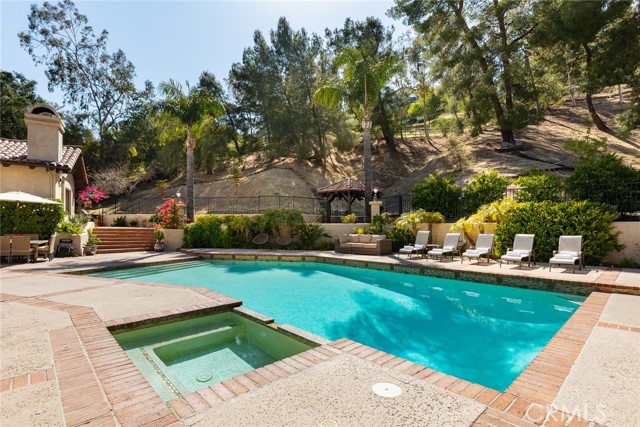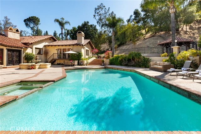 Magnificent Modern Spanish Estate with Santa Barbra resort vibes. Owner spent hundreds of thousands in upgrades and renovations on this architectural gem. Stunning curb appeal with Spanish tiles, large private front yard, mature trees, double-iron glass doors large entry, smooth stucco, beautiful potted plants and attention to detail. Located on a quiet and private cul-de-sac in prestigious guard gated Bell Canyon. This 4300 sq ft resort offers four bedrooms, four bathrooms, Executive office, game room/gym/ bar/laundry room /art room and wine cellar. This home features custom doors and windows, hardwood floors, four fireplaces and truly feels like you are on vacation in a 5 star hotel. Upon entry you will be blown away as you have open views from living room, to courtyard with an oversized fountain and planters. Primary suit includes remodeled shower, walk-in closet, fireplace, seating area, private patio that overlooks the backyard, additional 3 bedrooms and 3 baths all large in size with amazing views. Large kitchen with center island, top of the line Viking appliances, large walk in pantry, eat in kitchen with French doors that open up to patio with beautiful views. Living room open concept to backyard and dining room. Huge laundry room/art room. One of a kind executive office with built ins and fireplace that can be used as a fifth bedroom. Family room has additional fireplace and French doors with outdoor pool and fountain views. Downstairs you will find additional space that serves as a gym/game room with another bathroom/bar/and walk in wine cellar. This amazing property sits on over an acre, perfect for grand scale parties, and entertainment. Newly remodeled outdoor kitchen with covered pergola, oversized pool and spa, herb garden, new gazebo, and a huge yard. Upmost privacy and luxury. Bell Canyon offers equestrian center, gym, park, tennis courts, miles of hiking and biking trails. In close proximity to new Rams training facility, malls ,THE VILLAGE, Calabasas Commons, all the latest new restaurants. Award winning school district. Community events, parties ,and so much more .A truly special property.Interested in this Listing?