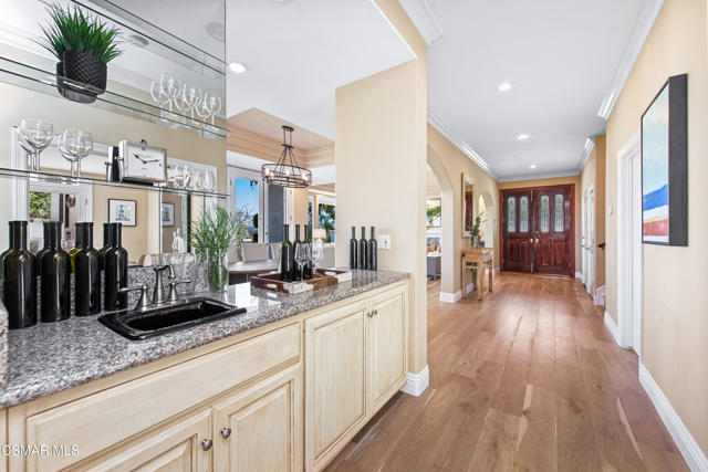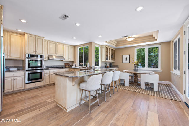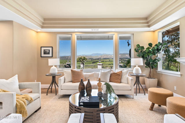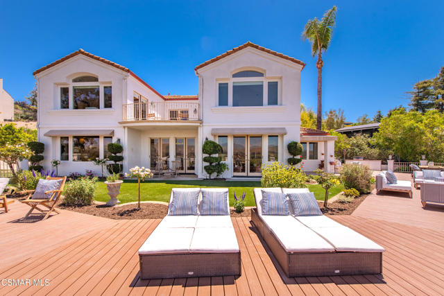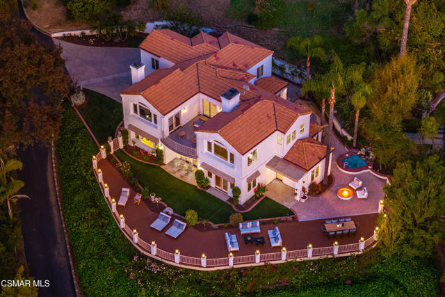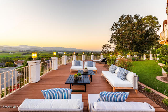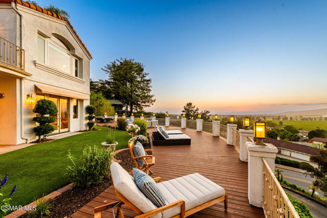 Welcome to 1074 Deseo Avenue, a stunning residence perched in the prestigious and highly sought-after Las Posas Estates in Camarillo. Situated on a prime hilltop lot, this home boasts breathtaking panoramic views that span across the valley to the majestic Topa Topa Mountains. Step through the foyer into an expansive open floor plan featuring soaring ceilings and wide-plank oak hardwood flooring throughout. At approximately 3,700 square feet, this home offers 4 spacious bedrooms, 3 full bathrooms, and a versatile office/bonus room that could easily serve as a 5th bedroom. A convenient downstairs bedroom with ensuite bath is perfect for guests or family members. The chef's kitchen is beautifully appointed with granite countertops, stainless steel appliances, and a built-in wine fridge, seamlessly opening to the family room-- where you can really enjoy your family and friends while cooking. Enjoy cozy evenings by one of the home's three fireplaces, one nestled in the primary bedroom. Outside, the extremely private backyard is an entertainer's dream. A recently updated 1,600 sq.ft. wraparound Trex deck provides the perfect setting to soak in the views. Relax in the spa with cascading waterfall, gather around the large fire pit, or cook outdoors at the built-in BBQ area--all while enjoying the serene mountain and valley vistas. The property has been freshly landscaped and includes an oversized gated side yard ideal for RV parking. Additional upgrades include new recessed lighting, newer A/C system, designer carpeting, newer water heater, and newer spa equipment. Private, scenic, and exquisitely maintained, this is a truly special property waiting for your arrival.Interested in this Listing?