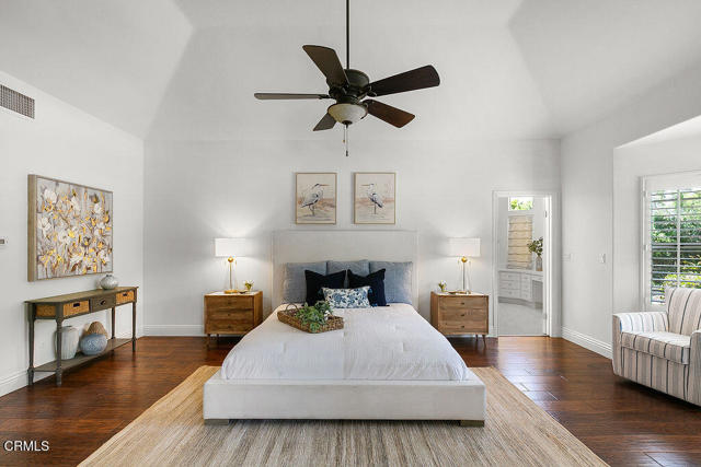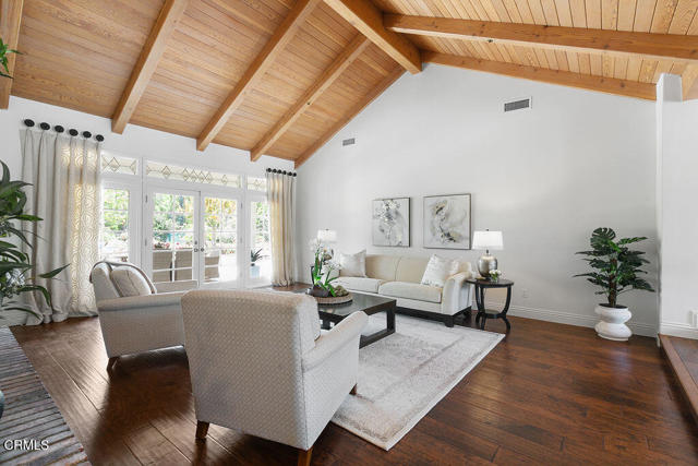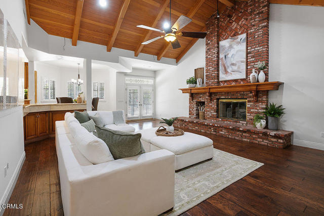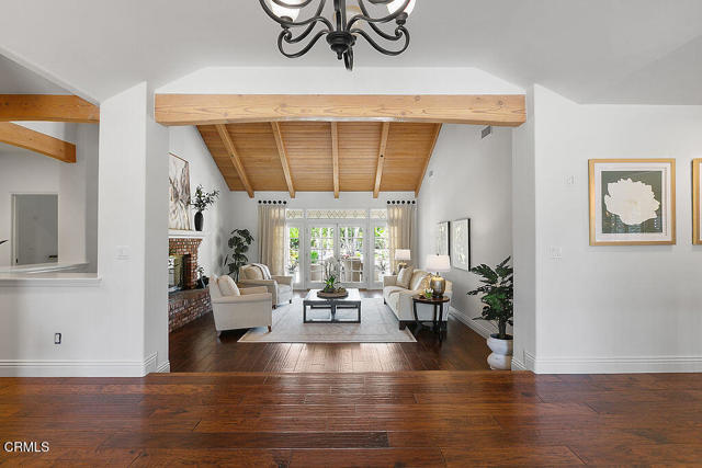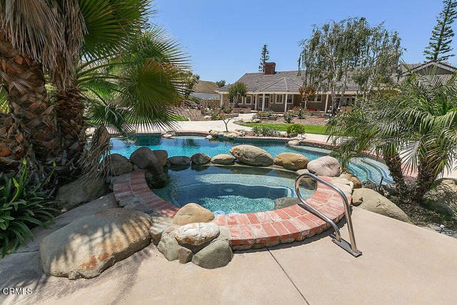A Masterpiece of California Ranch Living in Santa Rosa ValleyEmbodying the romance and drama of an exquisite California Ranch estate, this remarkable single-story home spans over 3,800 square feet and is nestled on more than an acre in the exclusive gated community of Wildwood Ranch in the Santa Rosa Valley.With distinguished architectural design and timeless craftsmanship, this estate showcases gleaming hardwood floors, soaring open-beam ceilings, and custom woodwork throughout. The remodeled gourmet kitchen is a chef's dream, featuring a large center island, stainless steel appliances, granite countertops, and elegant cabinetry.The home offers four bedrooms, one of which is currently converted into a sophisticated office with custom doors. Two of the secondary bedrooms enjoy en-suite baths, while the expansive primary suite provides a private retreat with its own fireplace, sitting area, walk-in closet, and a spa-inspired bathroom complete with a large shower, exquisite cabinetry, and luxurious finishes.Warmth and character define the living spaces, with three beautiful brick fireplaces located in the family room, living room, and primary suite. The spacious family room also includes custom built-ins and a large brick fireplace, making it an ideal gathering place.Step outside to enjoy the resort-style backyard, featuring a sparkling swimming pool and spa, lush landscaping, meandering walkways, vibrant gardens, and a raised garden bed area. This seamless blend of indoor and outdoor living invites both relaxation and entertaining.Additional highlights include:Oversized 3-car garageExpansive parking court accommodating multiple vehiclesPotential RV access with a 50-amp electrical outletExpanded storage space accessible from the rear yardThis is truly one of the most distinctive and enchanting properties to grace the Santa Rosa Valley--a rare opportunity to own a timeless estate that exudes elegance, comfort, and California living at its finest.Interested in this Listing?