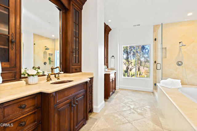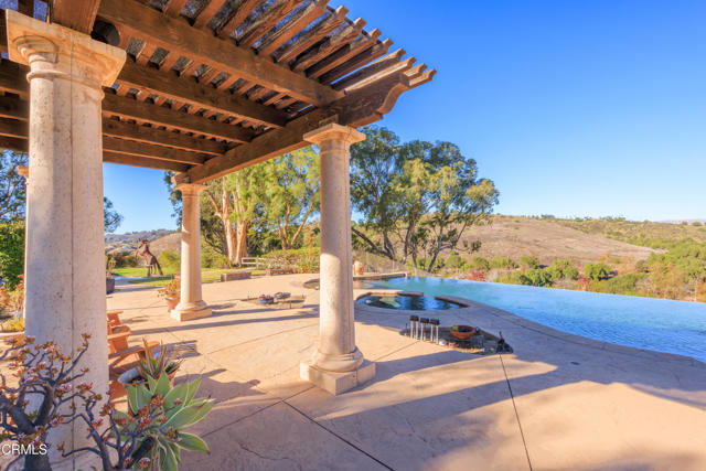 Stunning Mediterranean Estate in Prestigious Equestrian Enclave - Where Style Meets Serenity. Welcome to your dream home--designed for those who appreciate exceptional design, unparalleled views, and a lifestyle of tranquility and elegance. Located in the exclusive, gated equestrian community of Lexington Hills in Santa Rosa Valley, this Mediterranean villa is perched just above Thousand Oaks, offering the perfect blend of privacy, prestige, and proximity to Los Angeles. Panoramic Views & Outdoor BlissSet on 5.43 acres of lush, manicured grounds, this property is a sanctuary of beauty and peace. Enjoy breathtaking vistas from every window, miles of private equestrian and biking trails, and an ideal microclimate that's nearly 10 degrees cooler than Hidden Hills. Ocean breezes flow through the hills, and scenic pastures, rolling vineyards, and mature fruit trees enhance the ambiance. The infinity-edge pool and spa, outdoor bar and BBQ area, and film-worthy pergola with firepit, meditation pond, and meandering stream create the ultimate indoor-outdoor living experience--perfect for entertaining or peaceful solitude.Sophisticated InteriorsSpanning 3,925 sq ft, the home features 5 bedrooms and 4 bathrooms, all thoughtfully designed with high ceilings, natural light, and mesmerizing views.The primary suite is a romantic retreat with a gas fireplace, spa-like bathroom with jetted tub, double vanities, hammered copper sinks, walk-in shower, enclosed water closet, and a large custom walk-in closet. A Chef's Dream KitchenThe heart of the home is the gourmet kitchen, outfitted with a large granite island, built-in butcher block, copper sink, Thermador 6-burner range with double ovens, warming drawer, microwave, and a temperature-controlled wine cabinet. The open-concept design flows seamlessly into the spacious family room and alfresco dining area, ensuring you're always connected with nature and loved ones. Luxury, Convenience & Lifestyle3-car attached garage and circular driveway with ample guest parkingJust 20 minutes to Camarillo private airport, 45 minutes to Malibu or Montecito, and 50 minutes to Beverly HillsMinutes from top-rated schools, fine dining, shopping, and entertainment in Westlake. Ideal for horse lovers, with ample space for stables, riding, and agricultural pursuits Soil ready for a vineyard or thriving vegetable garden Surrounded by celebrity-owned estates in a peaceful, gated enclave. this home offers a lifestyle few can imagine--Interested in this Listing?