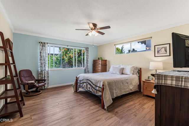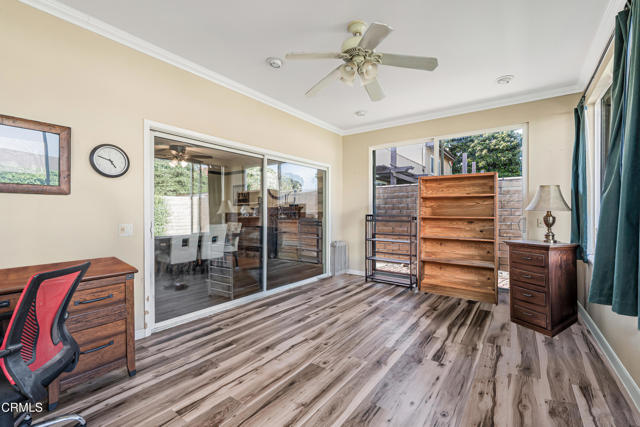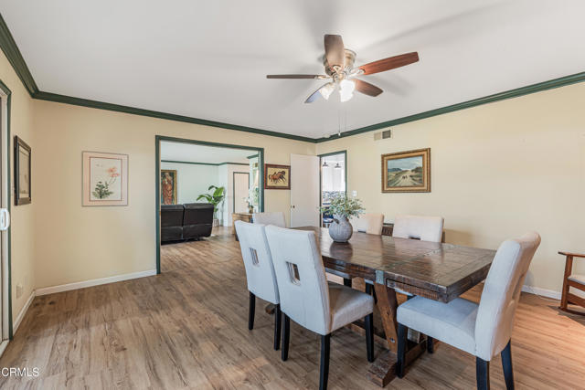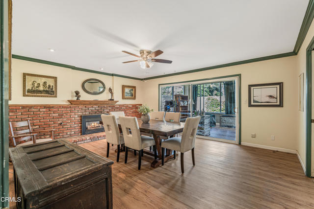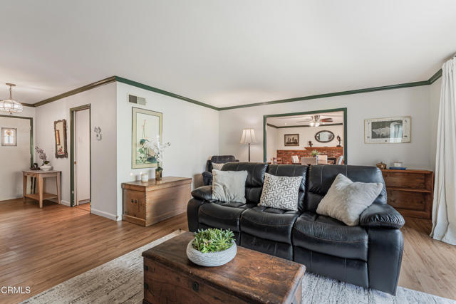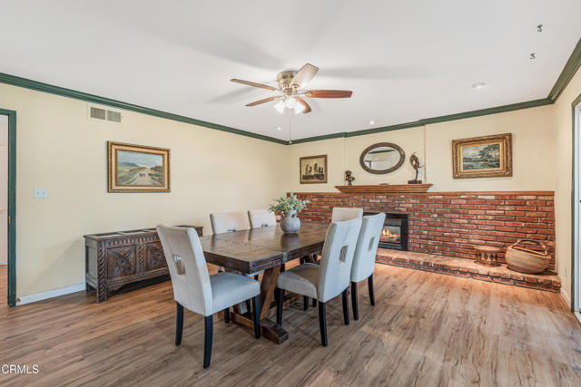Welcome to this beautifully maintained 4-bedroom, 2-bathroom home with a bonus room, located in the highly desirable city of Camarillo. This inviting residence blends comfort, functionality, and character, offering the perfect space for modern living.The heart of the home is the stylishly updated kitchen, featuring a unique two-tone design with blue lower cabinets and crisp white uppers, complemented by a gorgeous backsplash, modern light fixtures, and plenty of cabinet space. Just off the kitchen, you'll find a cozy area perfect for a coffee station or breakfast nook.The dining room is warm and welcoming with a beautiful brick fireplace, ideal for hosting holiday dinners and family gatherings. A sliding glass door leads from the dining room to the bonus room, filled with natural light--a perfect space for a playroom, sunroom, or creative studio.The family room offers direct access to the expansive backyard, where you'll find lemon and orange trees and ample room for entertaining or relaxing.Inside, the home features neutral flooring throughout, creating a cohesive and calming atmosphere. The spacious primary bedroom includes large windows, ceiling fan, private en-suite bathroom, generous closet space with mirrored doors, and a walk-in tiled shower with a modern vanity.The additional bedrooms are generously sized, with one featuring built-in cabinets, ideal for a home office or library. The shared bathroom is beautifully appointed with dual vanities and another walk-in tile shower.Located close to parks, top-rated schools, and shopping centers, this home offers the perfect combination of space, style, and convenience.Interested in this Listing?