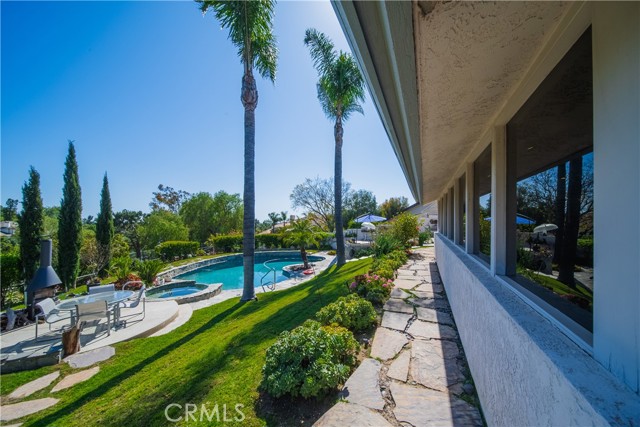 Welcome to your stunning single-story retreat, thoughtfully designed by architect Bob Lee, AIA, and nestled in the highly sought-after neighborhood of Las Posas Hills. Situated on nearly an acre (41,817 sq ft) with fully owned solar, this 3,280 sq ft home offers the perfect blend of privacy, comfort, and California lifestyle. Experience resort-style living right at home with a beautifully landscaped backyard featuring multiple entertaining areas, a sparkling pool and jacuzzi, a variety of fruit and avocado trees, and breathtaking views that stretch to the Pacific Ocean on a clear day. Inside, floor-to-ceiling glass doors in the kitchen, living room, and primary suite create seamless indoor-outdoor living. The spacious and private primary suite occupies its own wing, complete with a grand double-door entry, home office, fireplace, luxurious en suite bath with soaking tub and shower, and an expansive closet with ample room for organization and storage. On the opposite side of the home, you'll find two additional bedrooms, a shared bathroom, and a versatile bonus room with its own bath ideal as a home office, gym, etc. The open-concept layout is perfect for entertaining, featuring a large kitchen, a comfortable den, and a welcoming living room with fireplace. Additional highlights include a dedicated laundry room, a three-car garage with a built-in sauna and EV charger, and an unbeatable location between the newly renovated Las Posas Country Club and the prestigious Spanish Hills Country Club.Interested in this Listing?