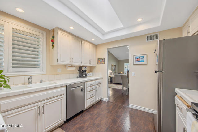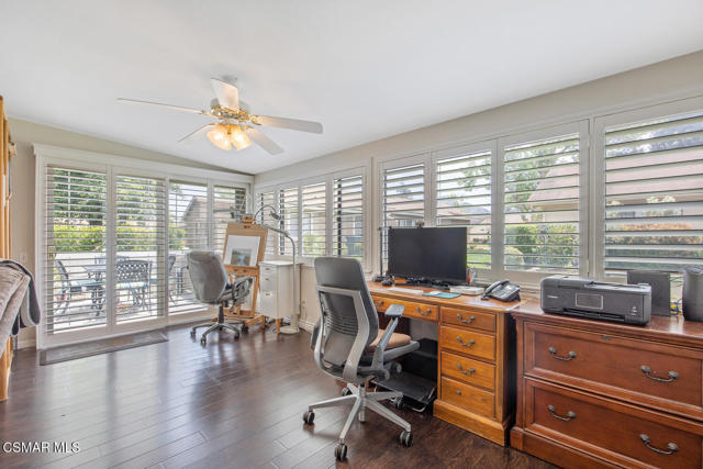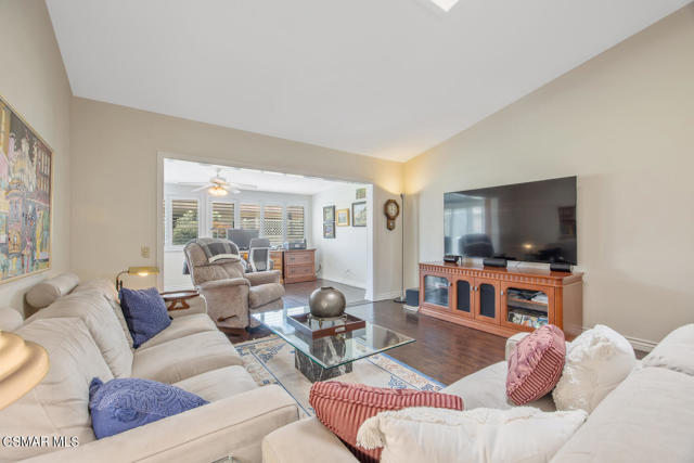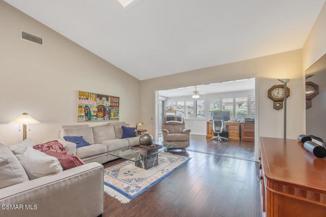 Luxury Living in Leisure Village - Beautifully Upgraded Capri End UnitWelcome to this highly upgraded and sought-after Capri end unit, ideally located along a picturesque, flower-lined pathway leading to your private front porch and sitting area just moments from the Leisure Village Recreation Center. Step through the stylish, upgraded entry door into a light-filled interior that seamlessly blends comfort and elegance. Soaring vaulted ceilings, luxury wood-like flooring, and double-pane windows with classic plantation shutters create an inviting atmosphere, while skylights in the living room and kitchen bathe the space in natural light. Climate comfort is ensured year-round with Nest-controlled central air and heating.The expansive great room offers open-concept dining and living areas--ideal for entertaining or quiet relaxation--and flows effortlessly into a versatile sunroom, perfect for use as a home office, studio, or reading retreat. A beautifully etched sliding glass door opens to a private fenced patio and grassy area--an ideal space for pets, grandkids, or simply enjoying your morning coffee in tranquil seclusion. The spacious primary suite features vaulted ceilings, a large mirrored double closet, and serene views of the greenbelt. Its luxurious en-suite bathroom is a true retreat, showcasing designer slate flooring, a frameless glass shower, and upscale tile finishes. A thoughtfully separated second bedroom enjoys views of the lush front garden and is served by a remodeled guest bathroom with contemporary tilework and a sleek frameless glass shower.The updated kitchen offers bright white cabinetry, stainless steel appliances, a remodeled skylight, and a cozy breakfast nook--providing an additional casual dining space. Direct access to the attached garage adds everyday convenience.Just doors away from the scenic walking path to the Recreation Center, this home offers unparalleled access to Leisure Village's vibrant lifestyle. Enjoy resort-style amenities including a state-of-the-art fitness center, pool and spa, tennis and pickleball courts, an 18-hole par-3 golf course, and lush walking trails. Connect with neighbors through dozens of social clubs, a professional-grade theater, community-run TV station, art studio, library, and even personal garden plots.Leisure Village isn't just a place to live--it's a community where friendships flourish, lifestyles thrive, and every day feels like a retreat.Interested in this Listing?