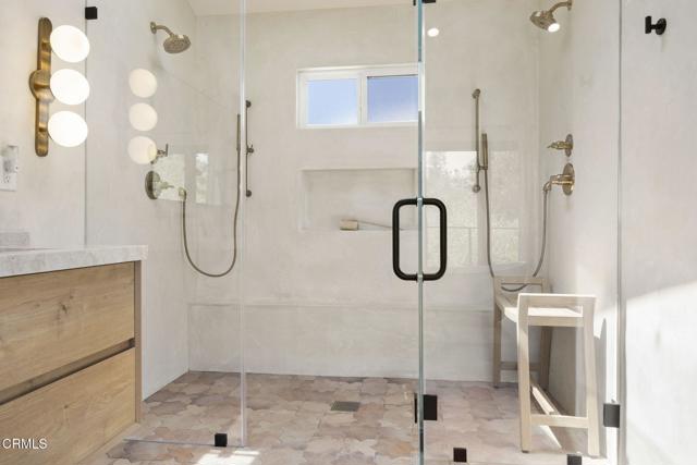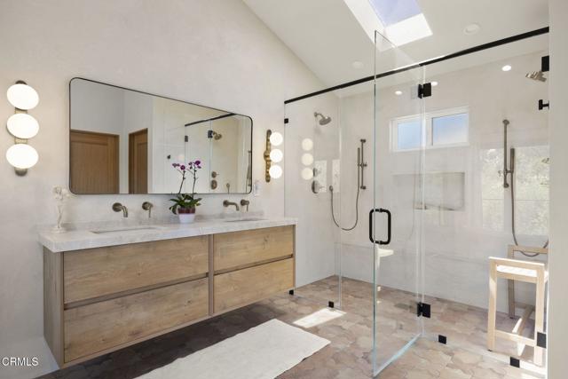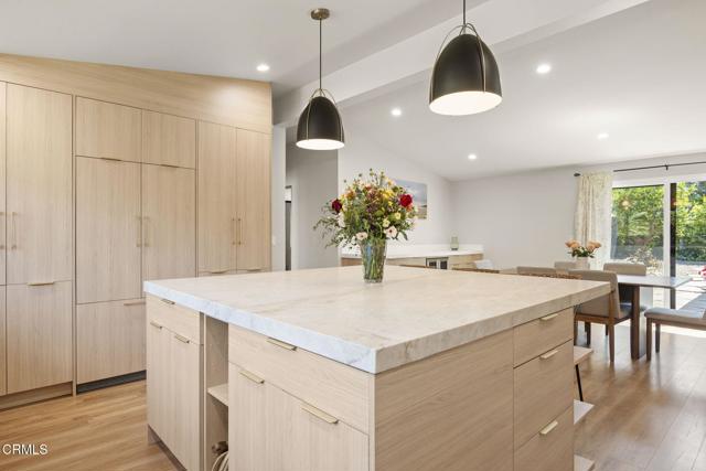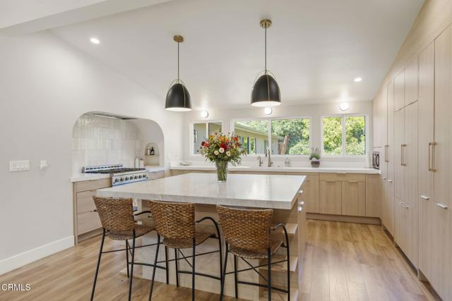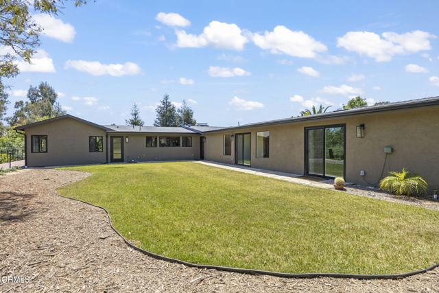 If you're looking for something different and unlike anything you've seen recently on the market, this is your home. Perfect for multi-generational living, with two separate primary suites and plenty of room for entertaining. This absolutely stunning 5-bedroom, 3.5-bath custom home has been completely rebuilt. This sprawling Las Posas ranch sits on approx. 3/4 acre, offering complete privacy and located near three country clubs with great golf just around the corner. It feels like you don't have neighbors, with three distinct outdoor spaces: a huge side yard with new sod, a grove of fruit trees, and a beautiful tree-shaded barranca .Convenient freeway access makes commuting a breeze, with just a 45-minute drive to either Santa Barbara or Los Angeles. Enter through a new steel gridded double front door into a wonderful floorplan with high ceilings. Notable details include long gridded windows, a custom hand-fluted fireplace in the living room, and smooth Venetian stucco throughout. The family room and kitchen feature a huge island, custom white oak cabinetry, Taj Mahal quartzite countertops, custom appliances, wine fridge, and a new slider to the backyard. There's also additional oak cabinetry and overhead LED lighting throughout. The home features two gorgeous primary suites located on opposite sides of the home, each with its own private feel--perfect for separate living quarters, private guest space, or even rental income. Down the right wing, you'll find a bedroom/office, a large half bath, laundry room, and the first primary suite, which is a spa-like retreat with bi-fold doors opening to the outside, deep freestanding tub, Tadelakt-finish dam-less shower, dual floating vanity, and walk-in closet. The left wing offers three additional spacious bedrooms and a second luxurious primary suite with floating dual vanity, walk-in closet, and more custom touches. Additional upgrades include two new HVAC systems, two water heaters (1 tankless, 1 traditional), all new plumbing and electrical, solid-core mahogany doors, and new windows throughout. The home also includes a finished detached 3-car garage, a fenced entry, and plenty of space for kids to play, plus room for a pool or ADU. Schedule your showing today--this is a rare find!Interested in this Listing?
